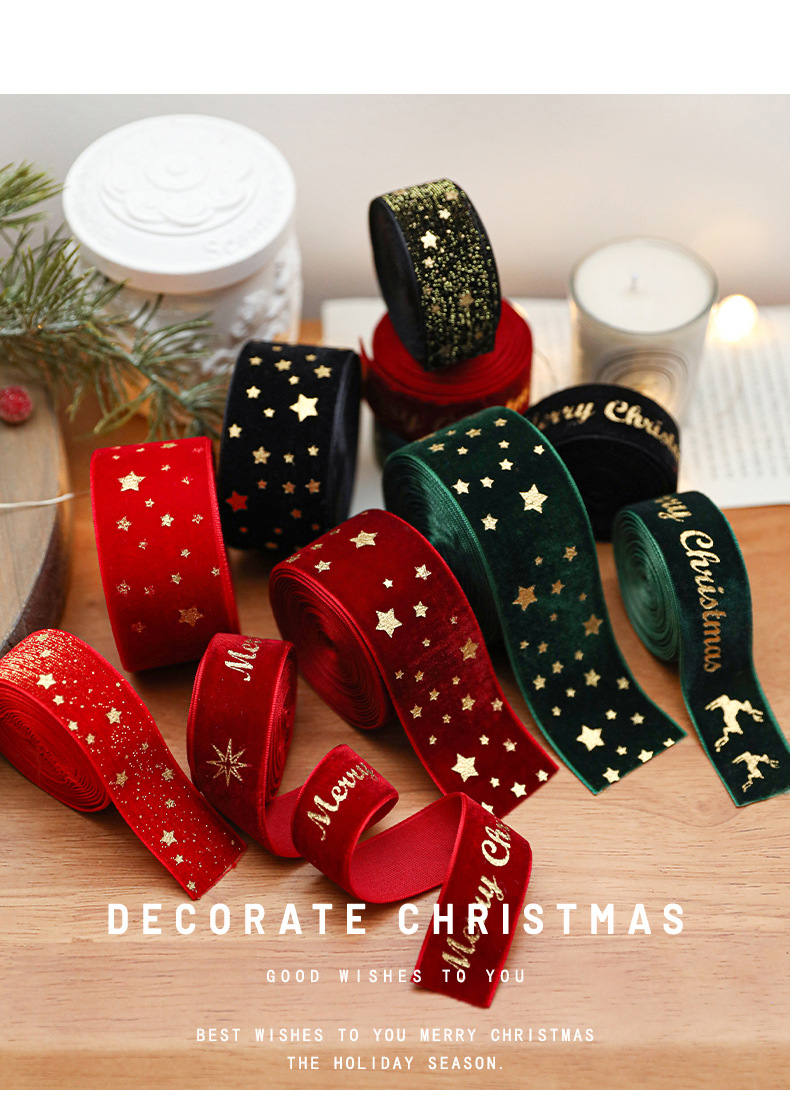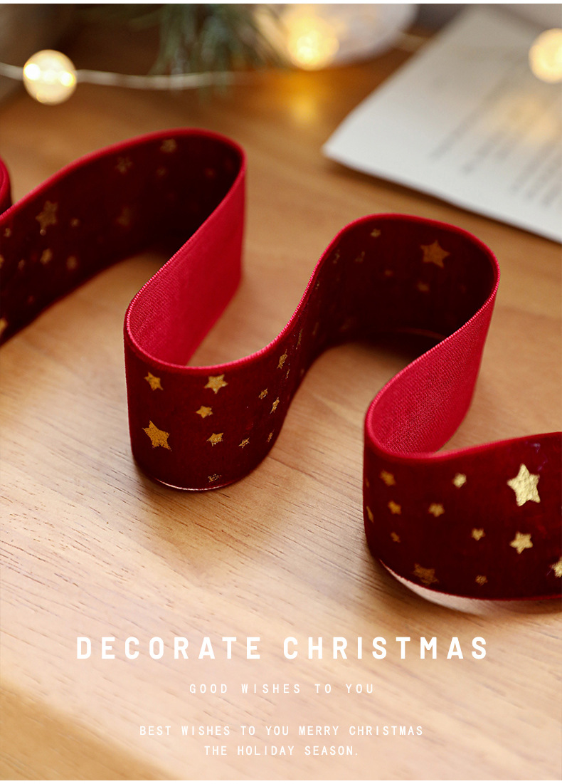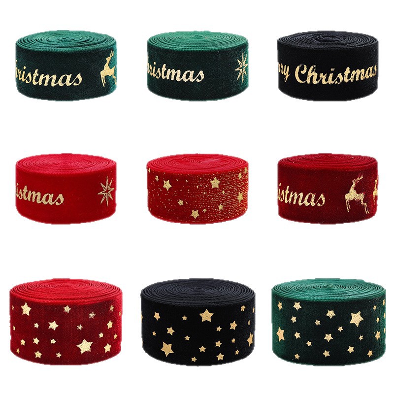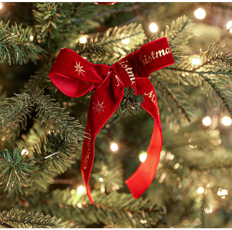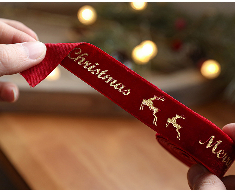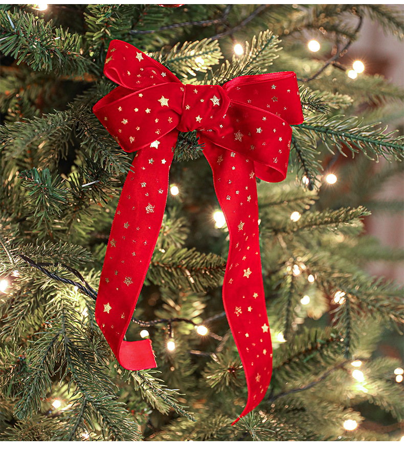 Christmas webbing flannel bronzing bow printed satin ribbon Christmas tree decoration scene arrangement decorative streamer