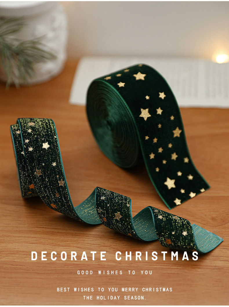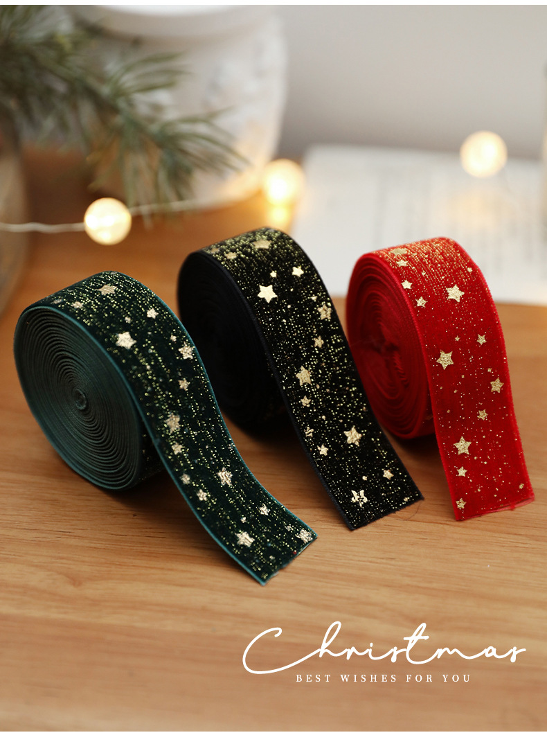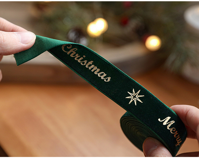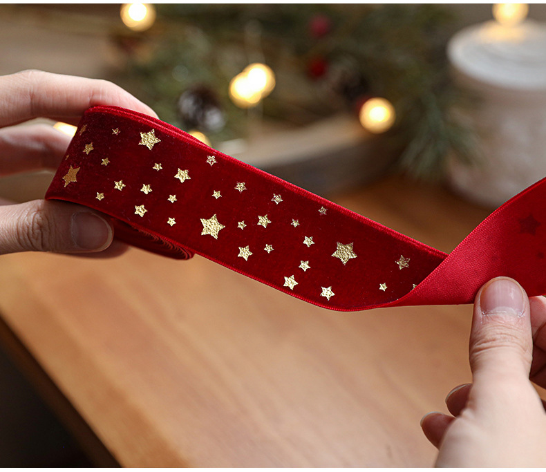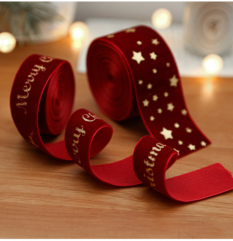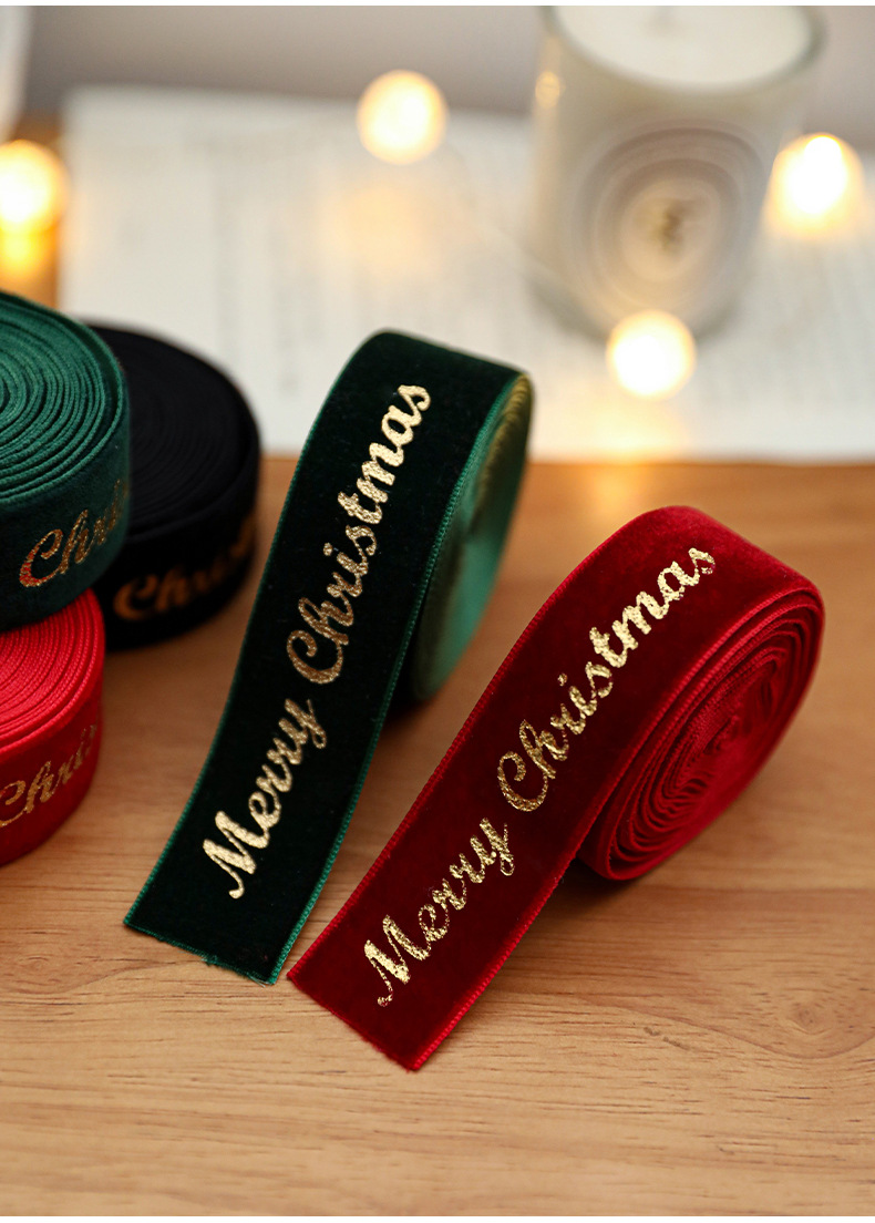 Christmas webbing flannel bronzing bow printed satin ribbon Christmas tree decoration scene arrangement decorative streamer
