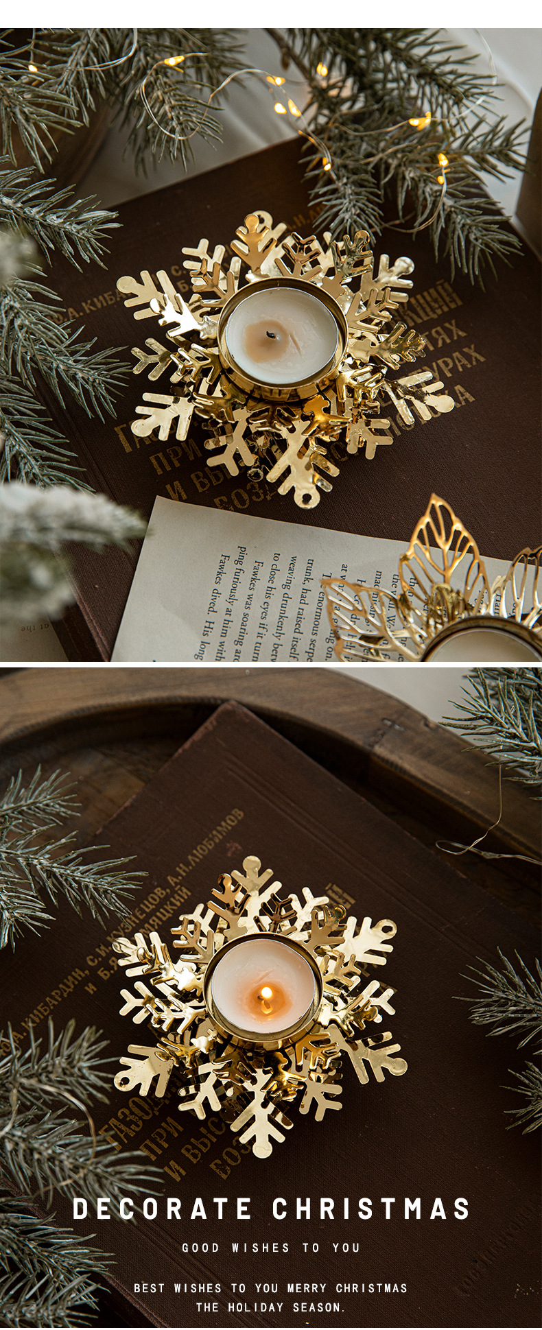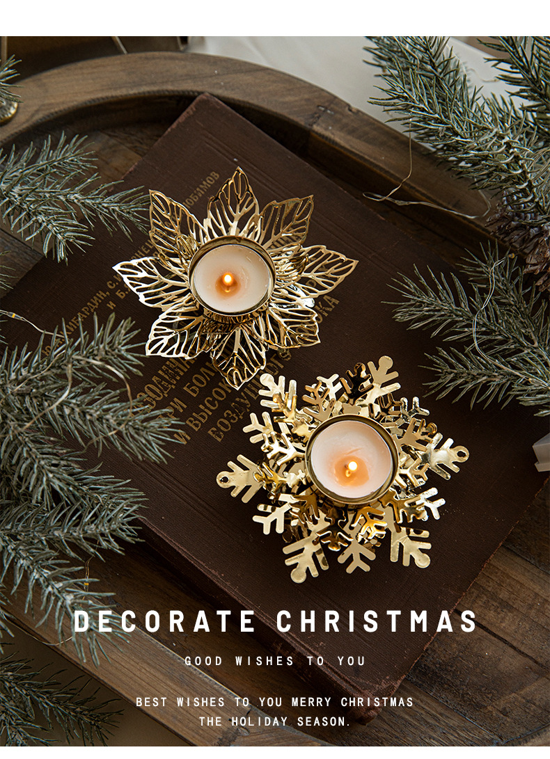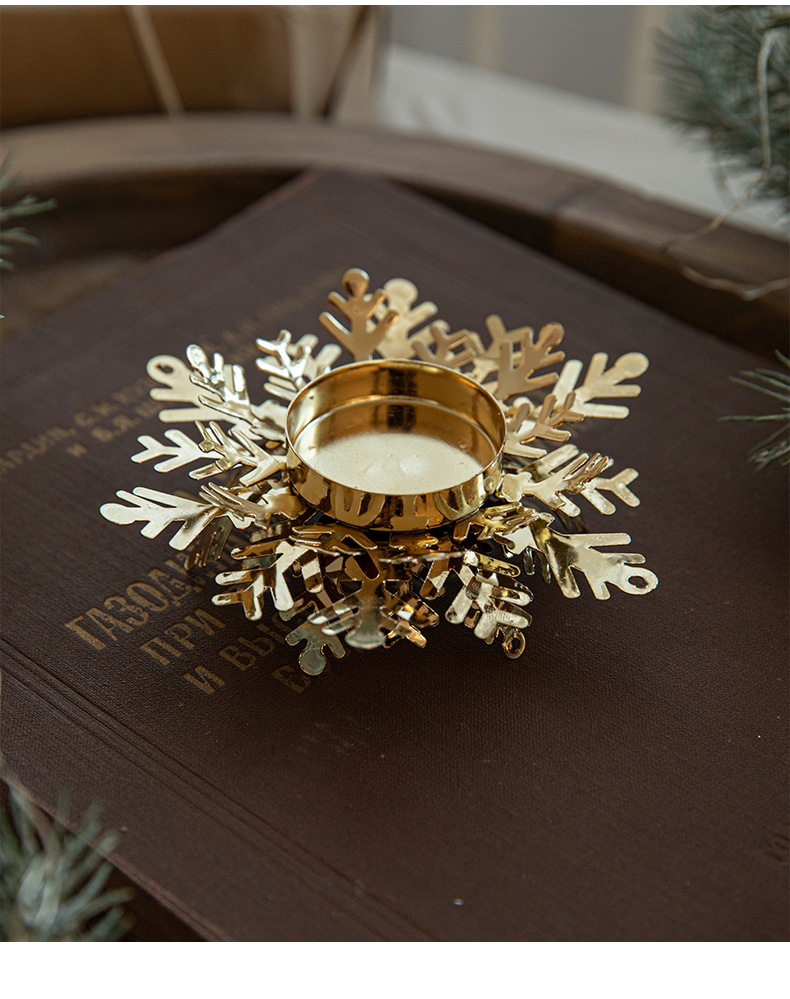 Cross border Christmas gold wrought iron candle holder table ornaments Christmas day decoration snowflake ornaments table setting