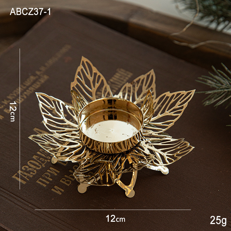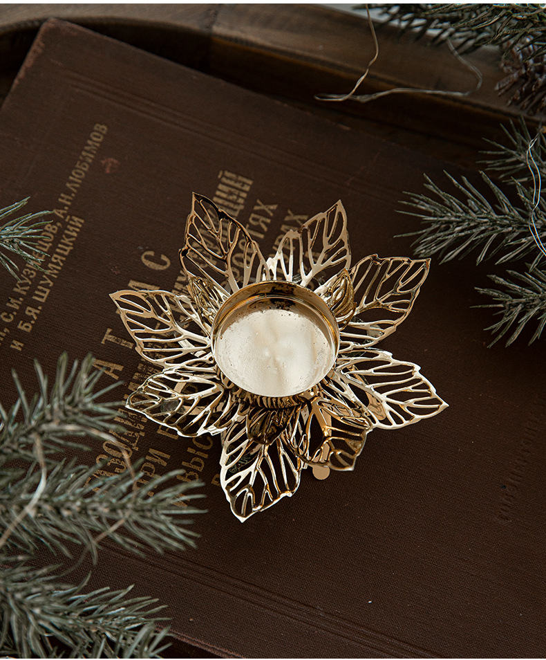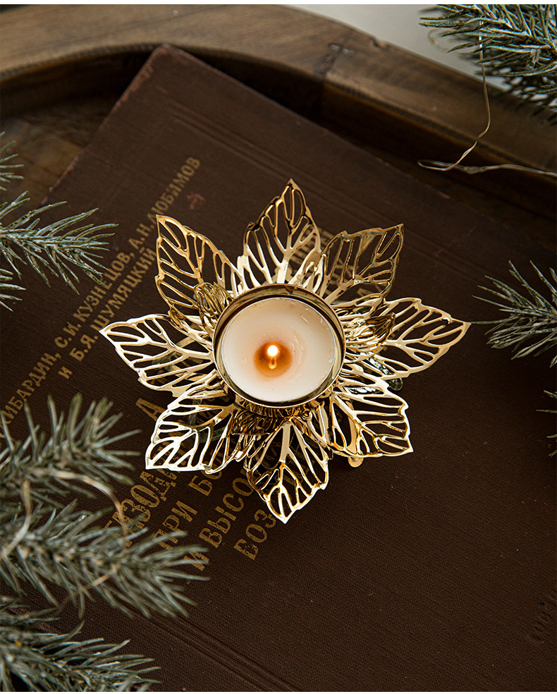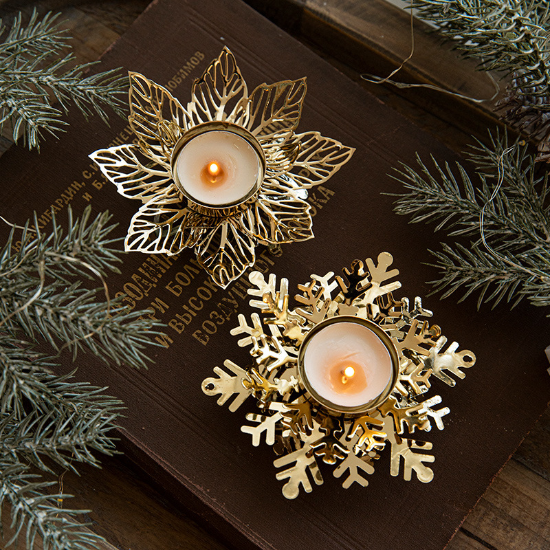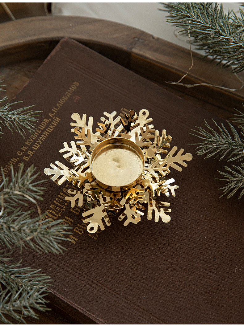 Cross border Christmas gold wrought iron candle holder table ornaments Christmas day decoration snowflake ornaments table setting