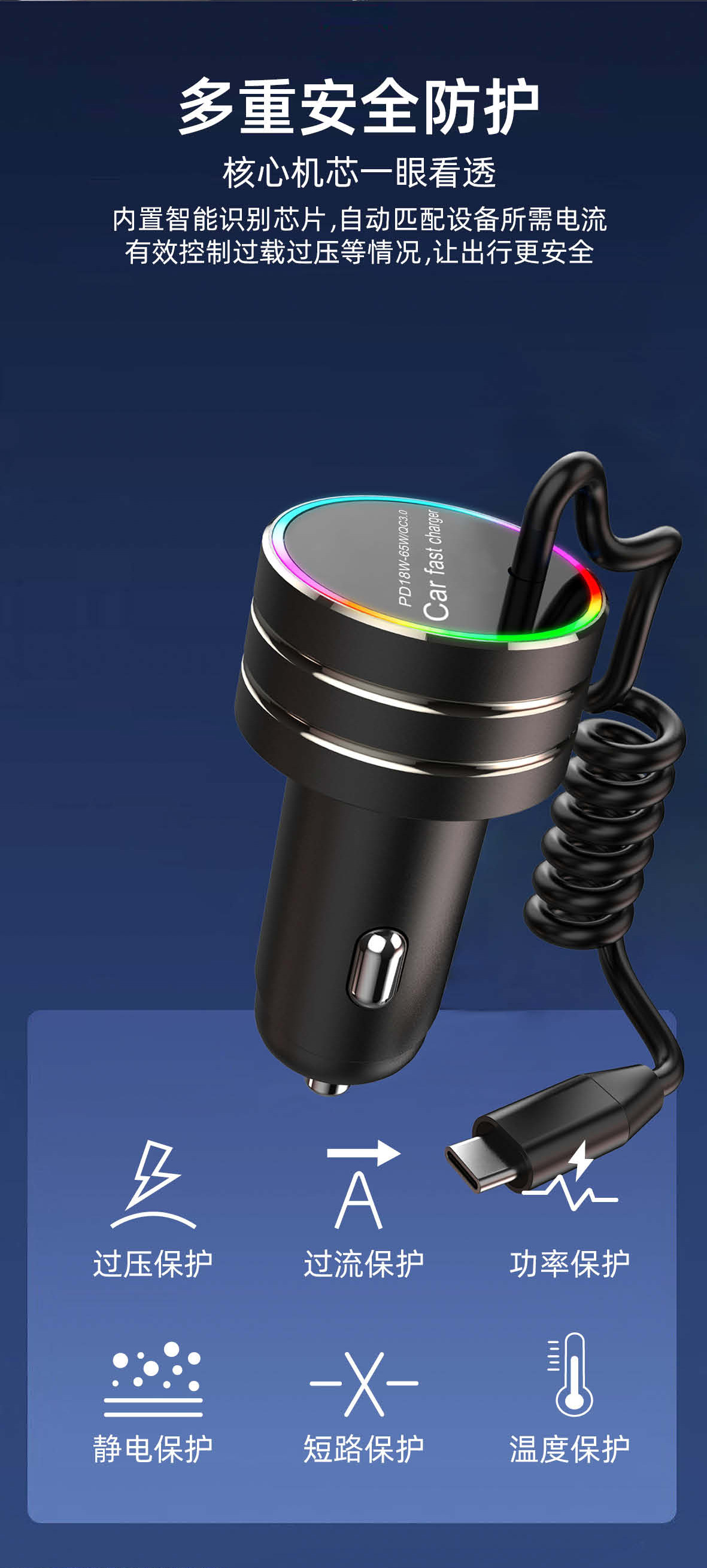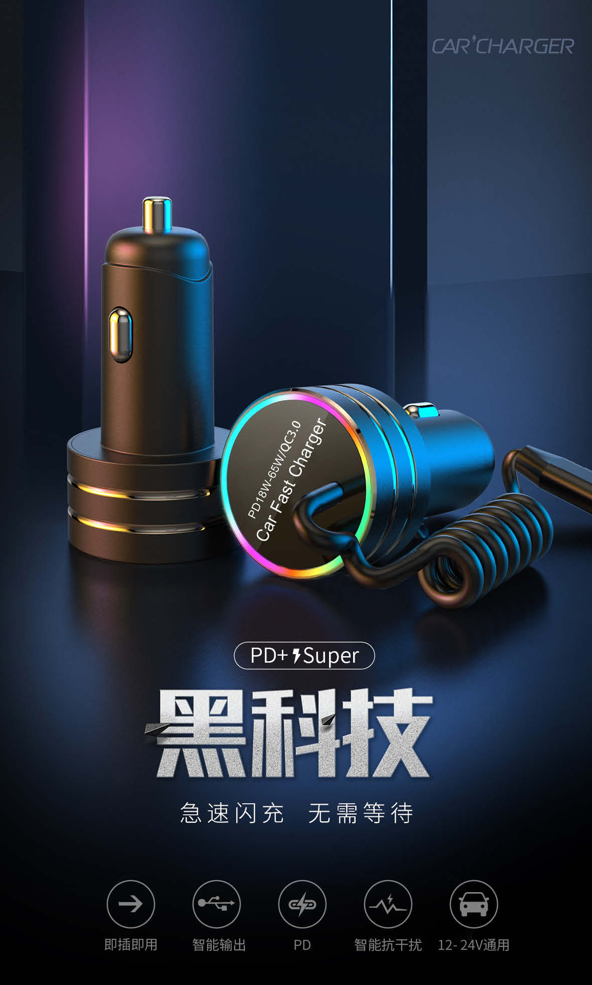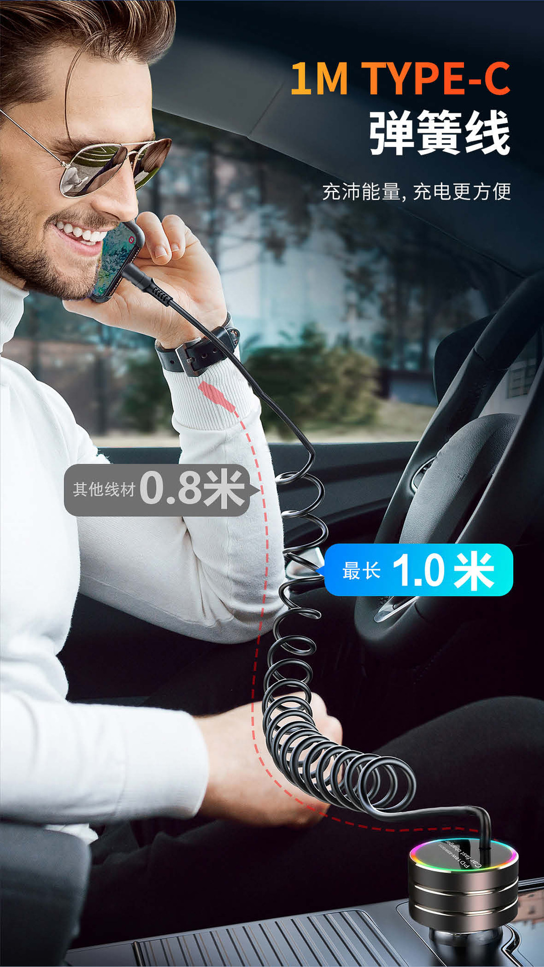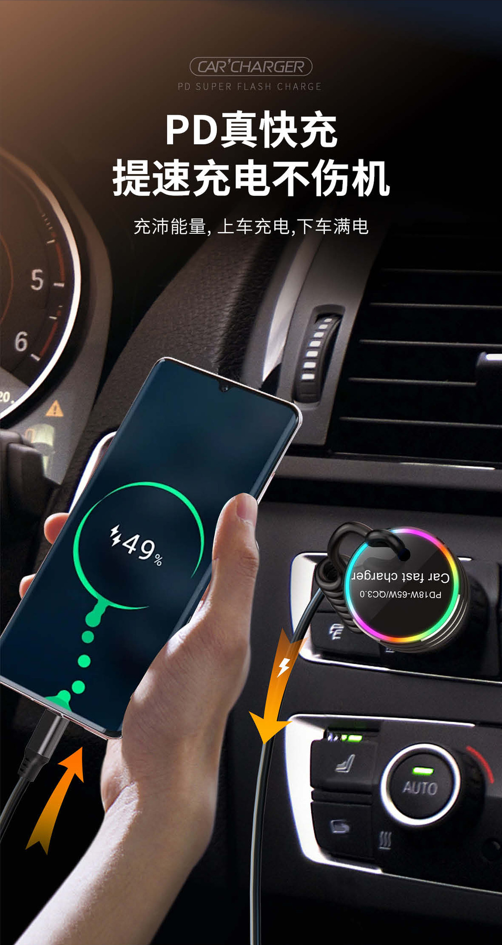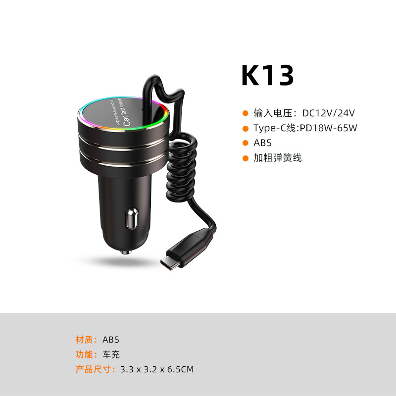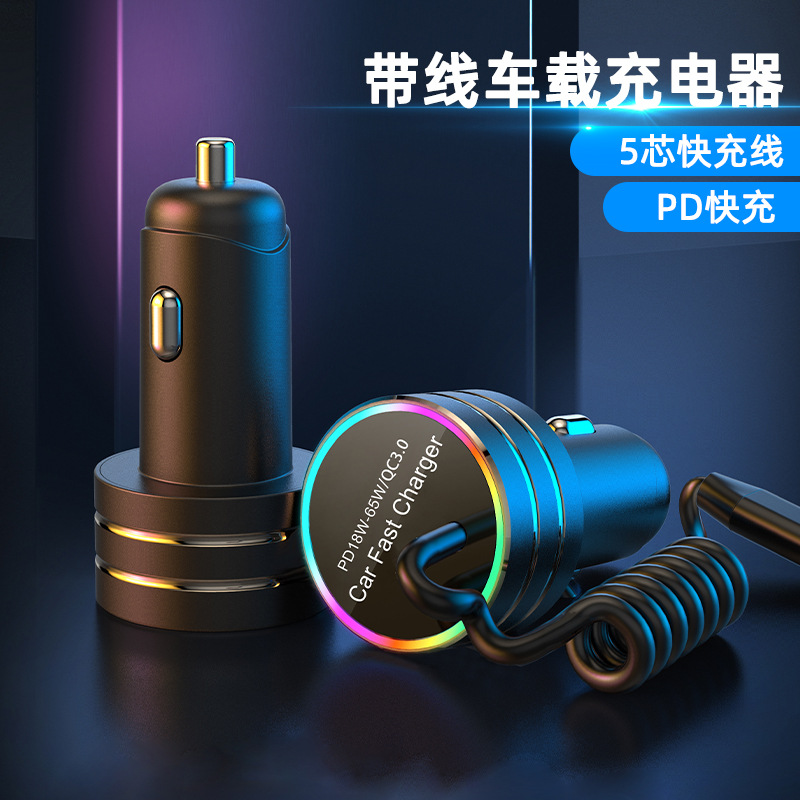 New car charger with cable A tow cable car charger with a tow cord car charger PD super fast charging multi-function car charger is in stock