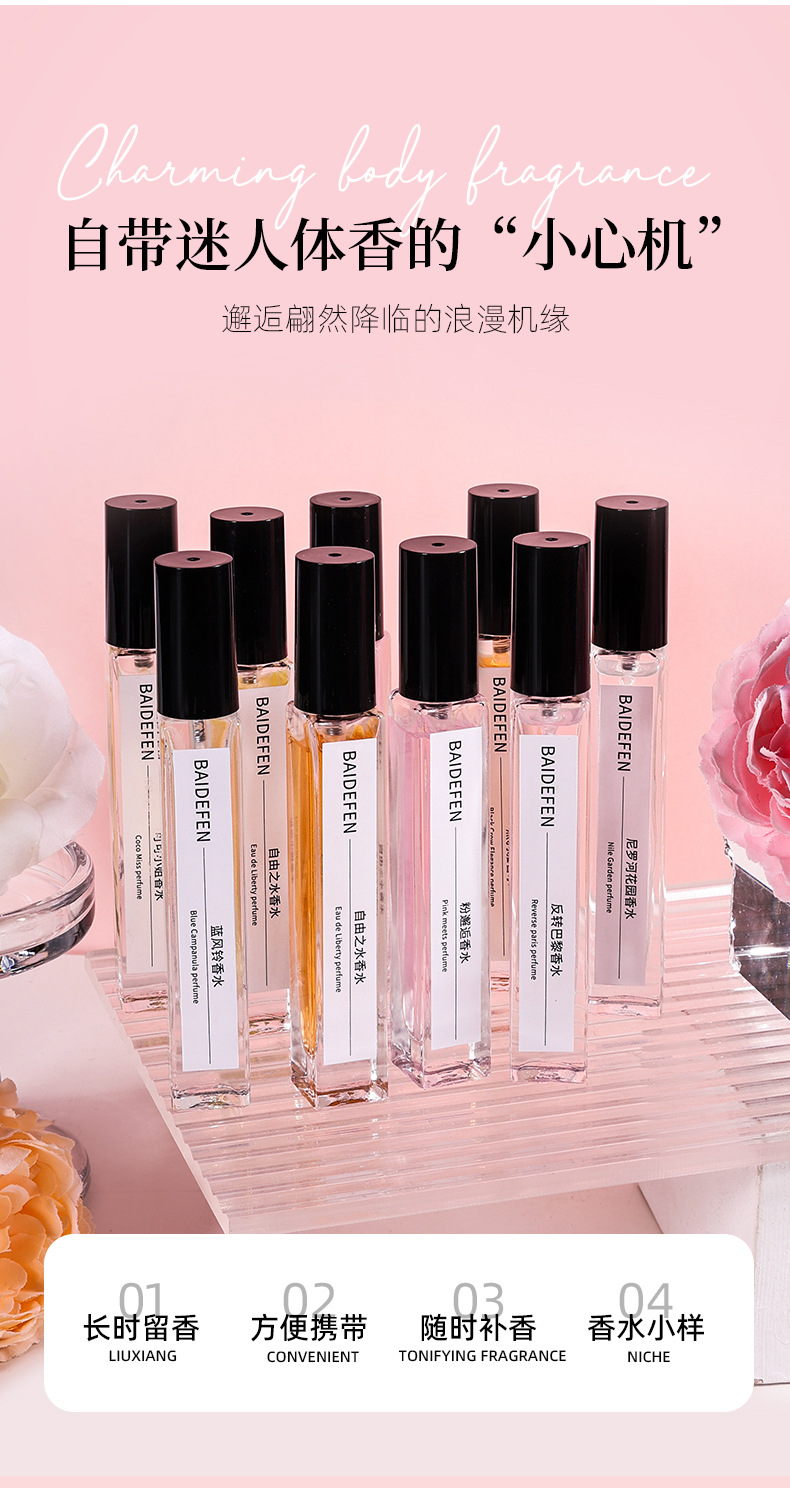 Cross-border 10ml perfume samples for men and women manufacturers wholesale light fragrance strong fragrance Douyin same style stall for a long time