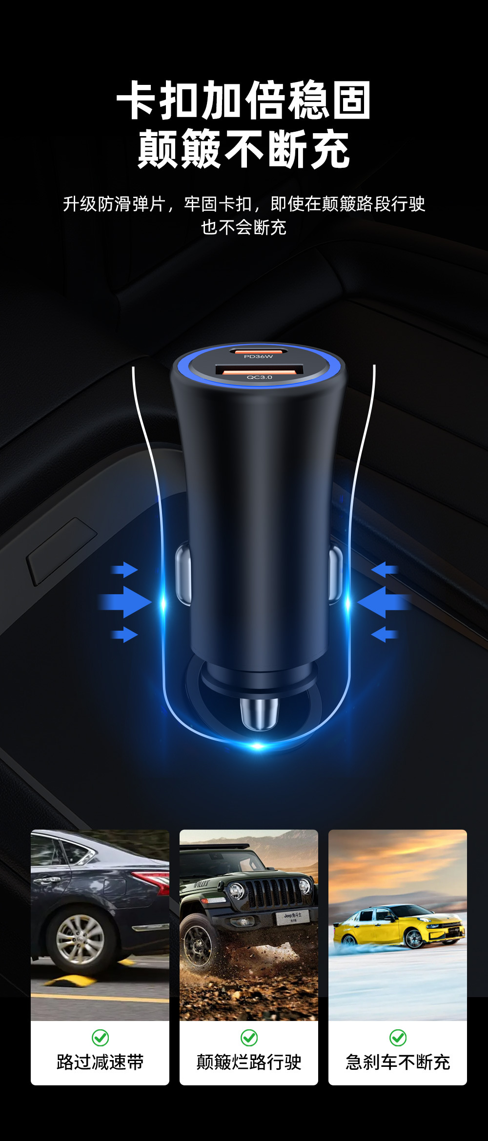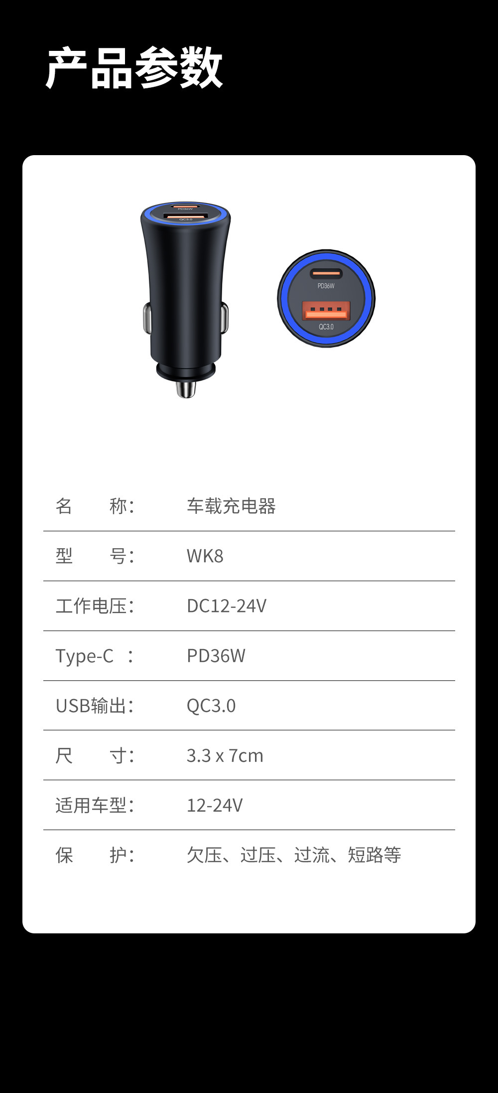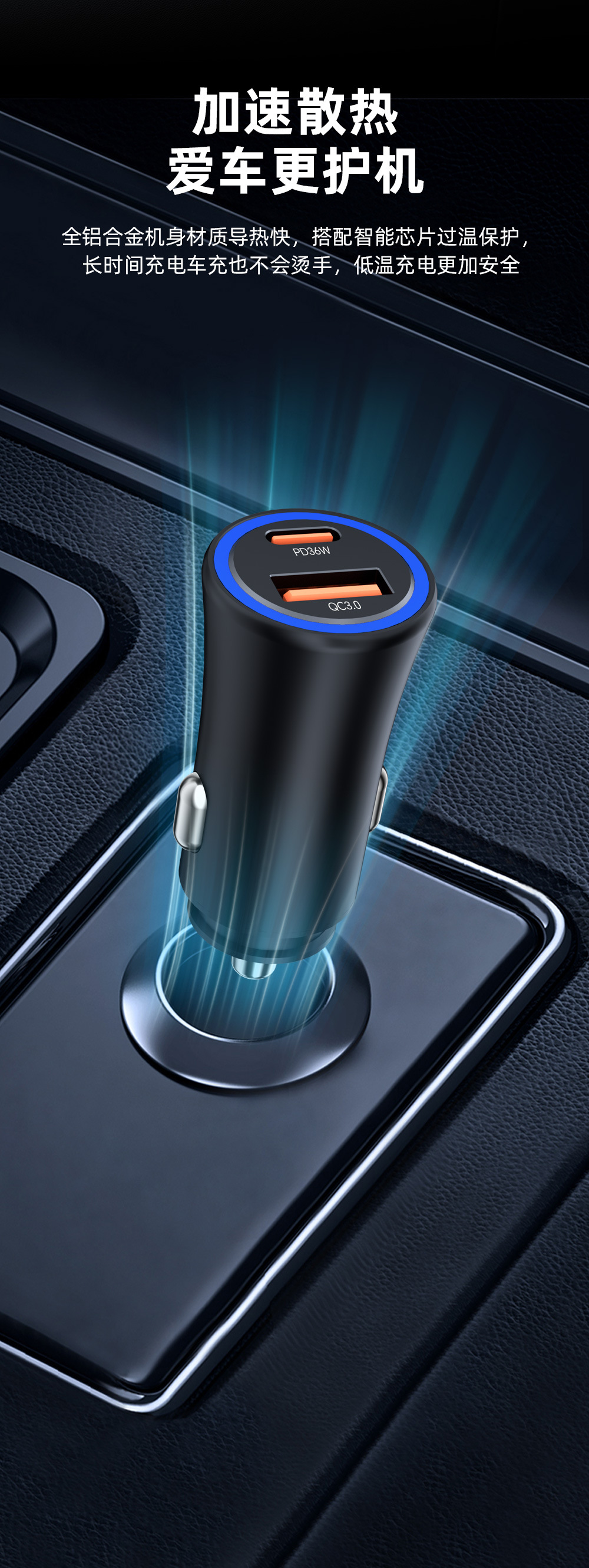 Cross-border new product one A and one C dual-port fast charging PD36W super fast charging car cigarette lighter USB-A15W fast charging