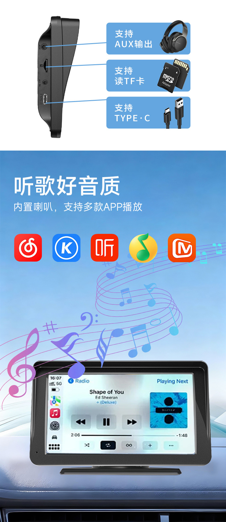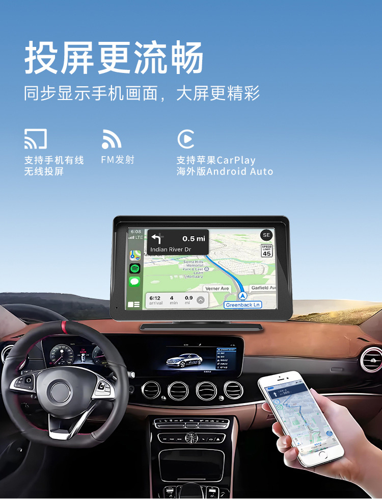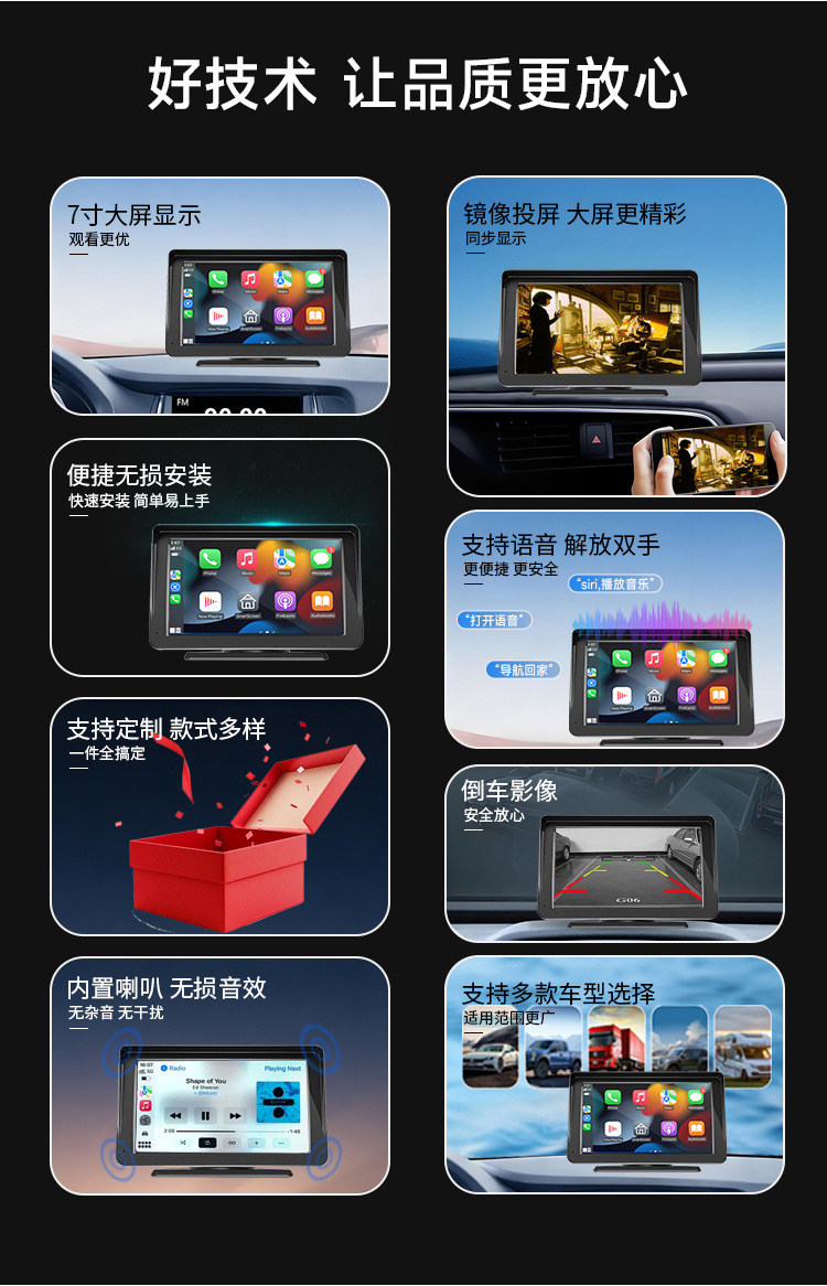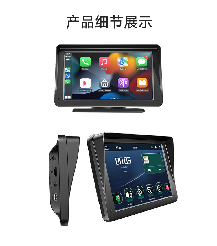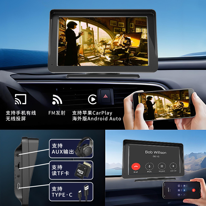 7-inch portable car wireless and wired carplay car support reading U and TF card high-definition reversing image