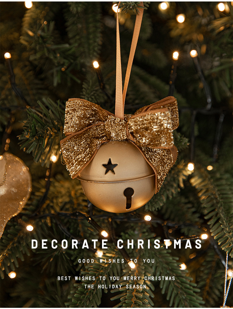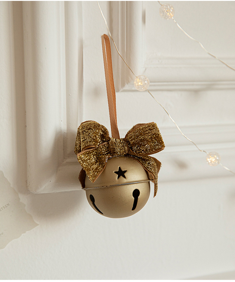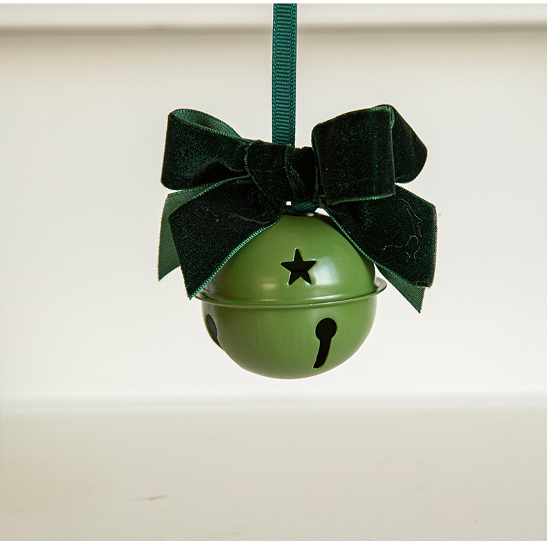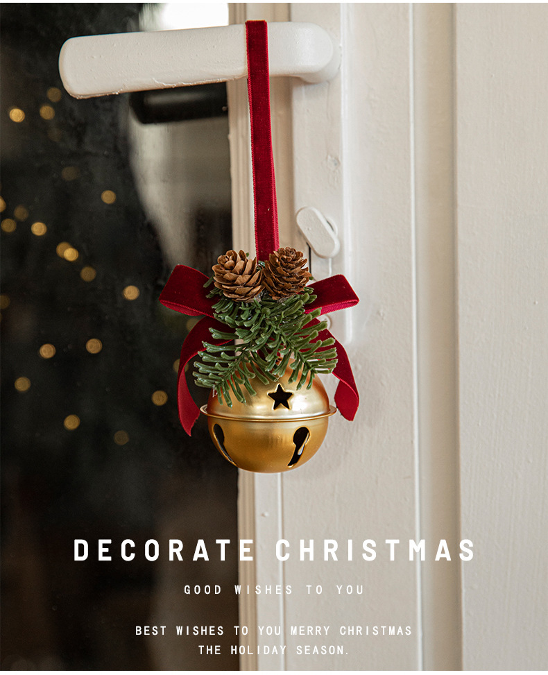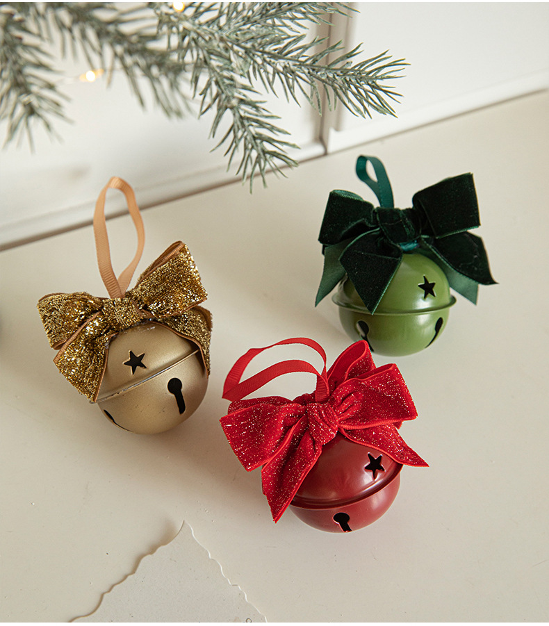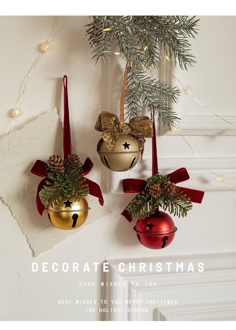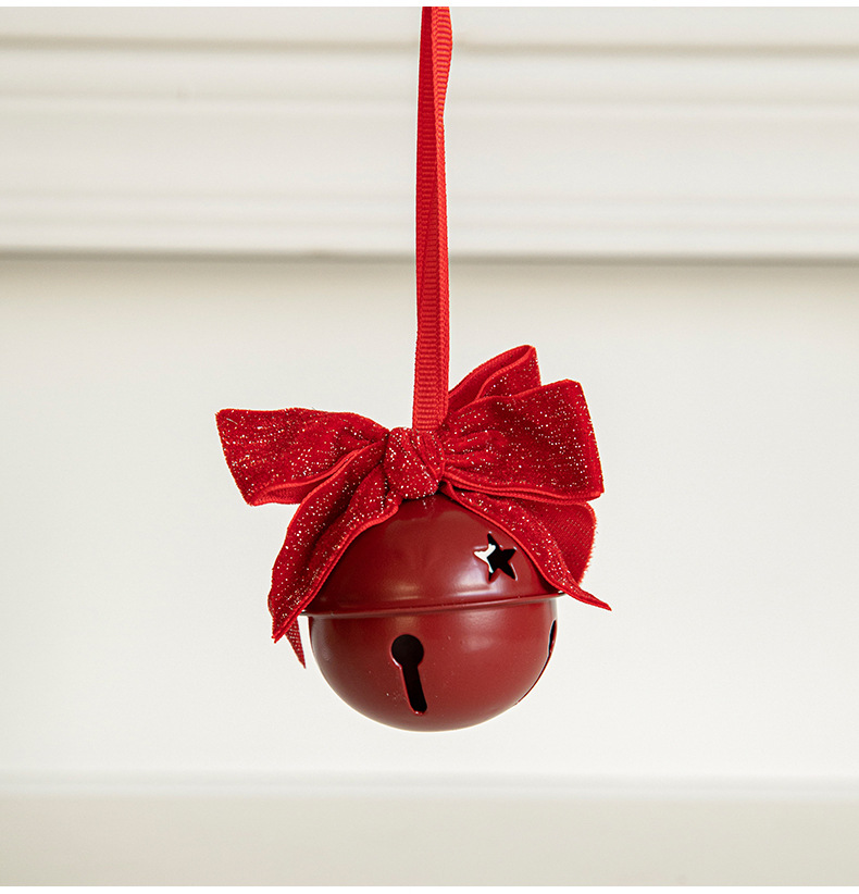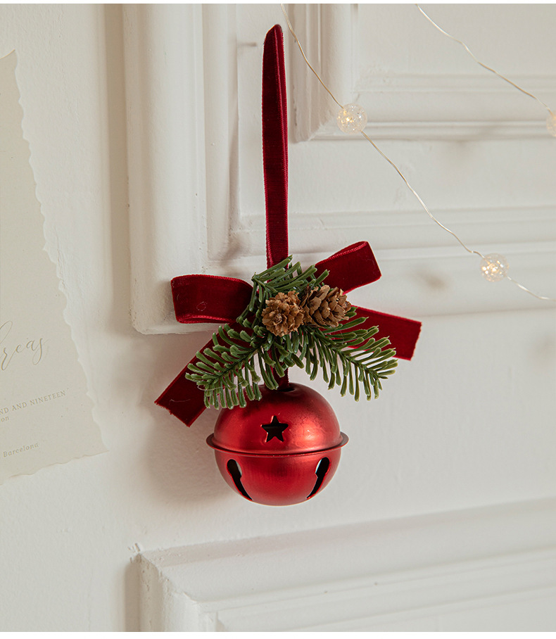 Cross-border Christmas red velvet bow wrought iron bell pendant scene arrangement charm Christmas tree decoration door hanging