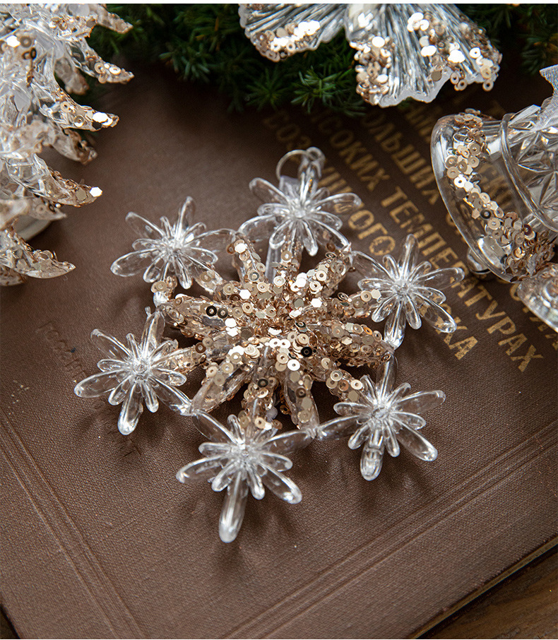 Explosive acrylic transparent pendant sticky powder gold powder three-dimensional heterosexual pendant high-end light luxury Christmas tree decoration and arrangement