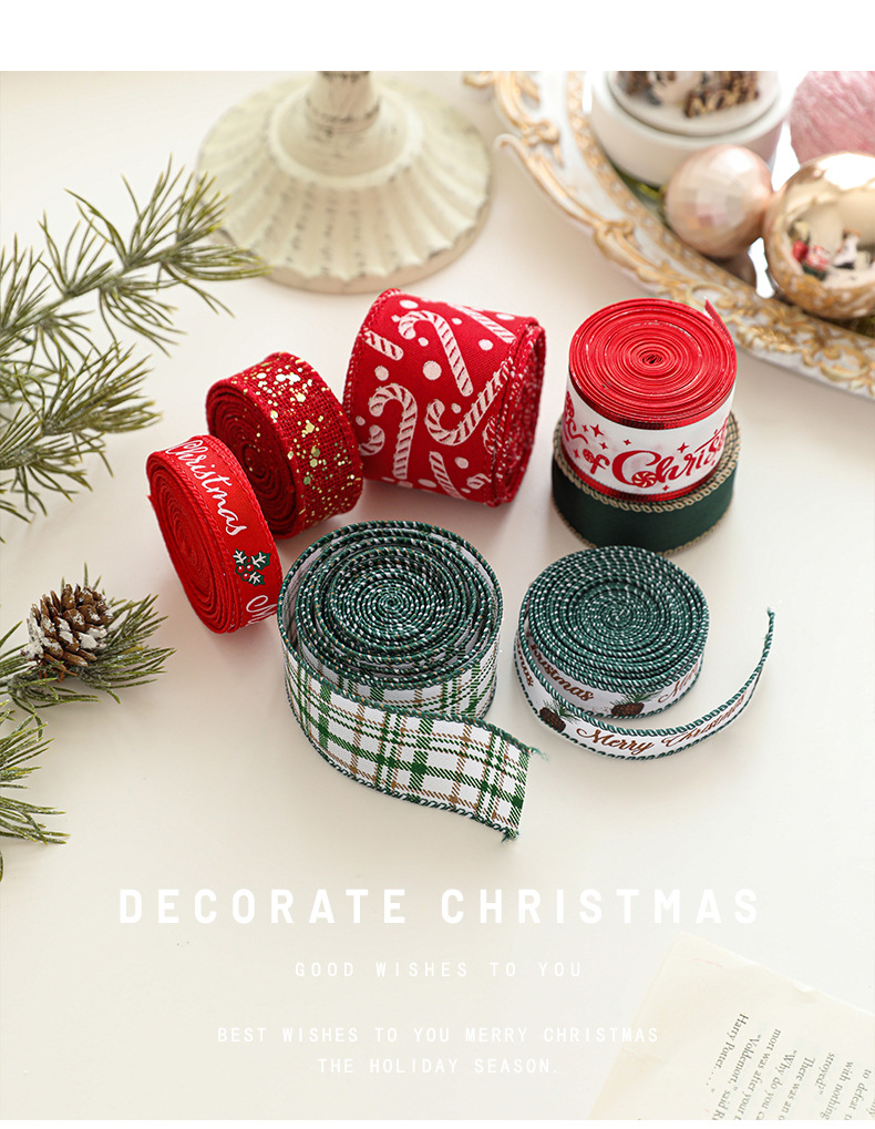 Christmas Theme Decorative Webbing Christmas Tree Dress Up Ribbon Festive Gift Box Strap Strap Festive Arrangement Ribbon Lace