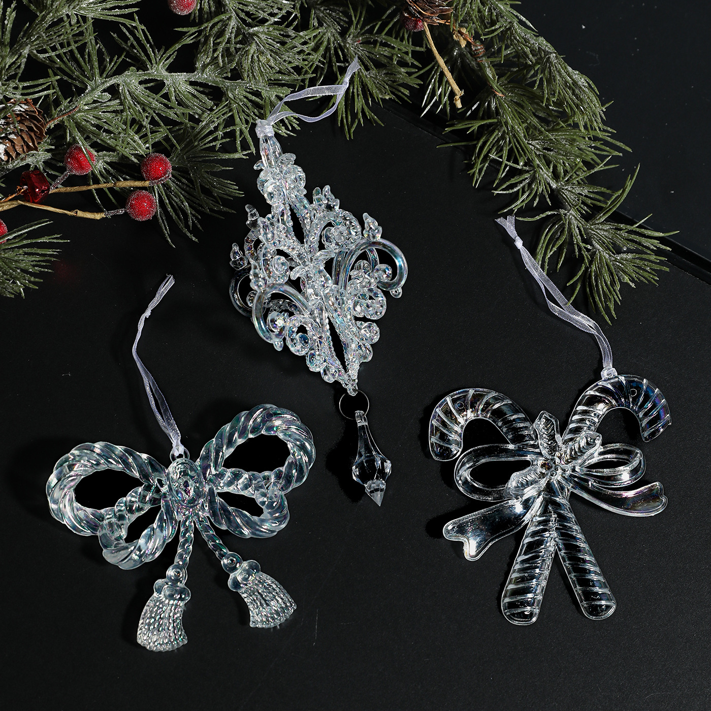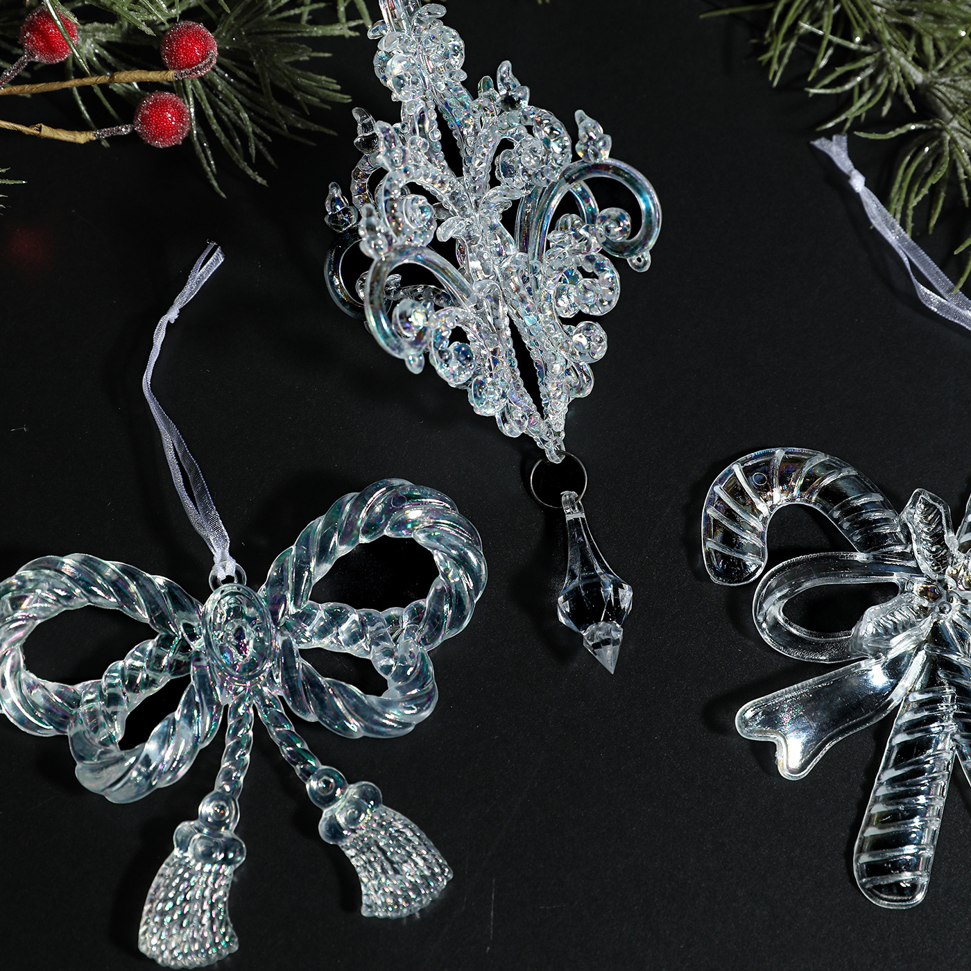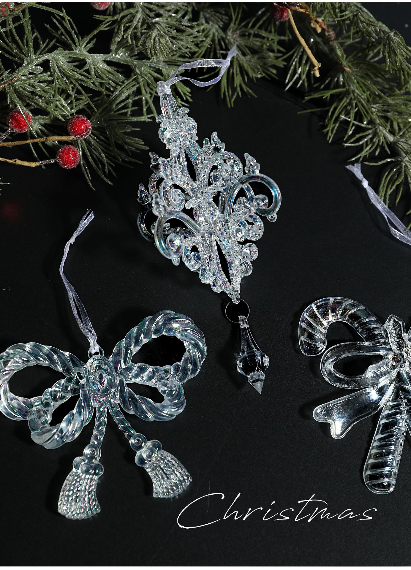 Cross-border transparent colorful pendants, colorful Christmas trees, acrylic plastic ornaments, decorations, scene decorations, props