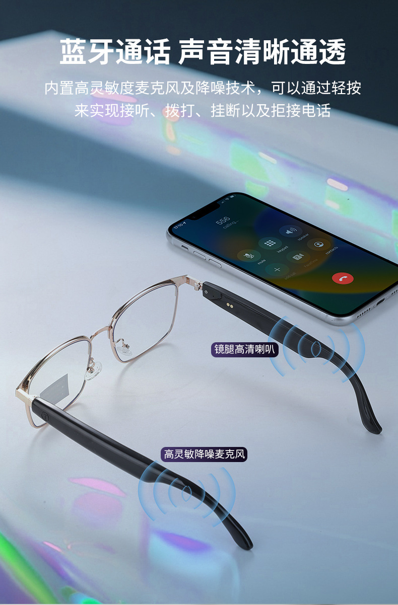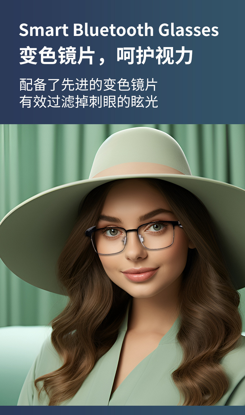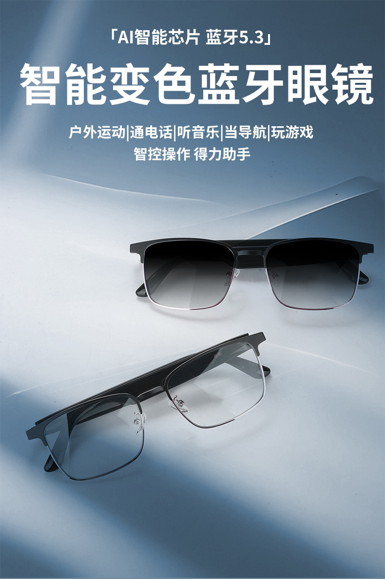 Cross-border smart glasses, Bluetooth glasses, blue light color-changing glasses, listening to songs, making phone calls, sunglasses, interchangeable lenses, driving and navigation