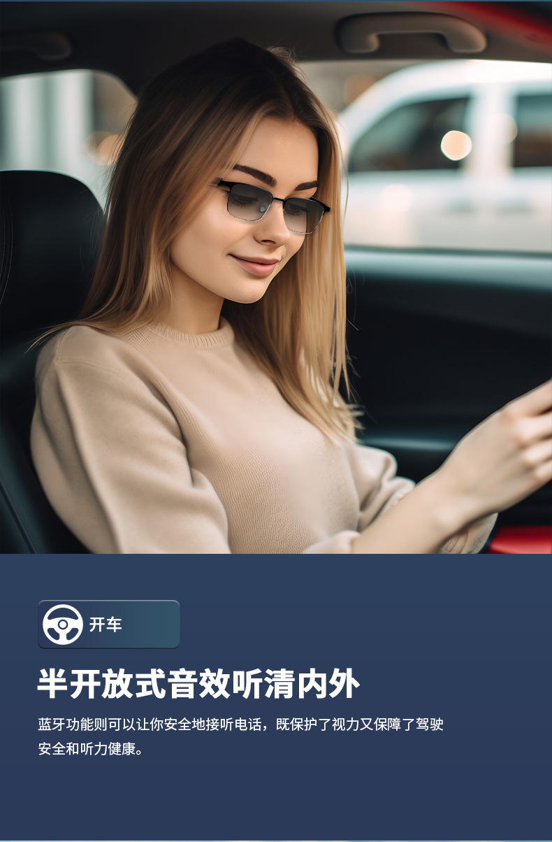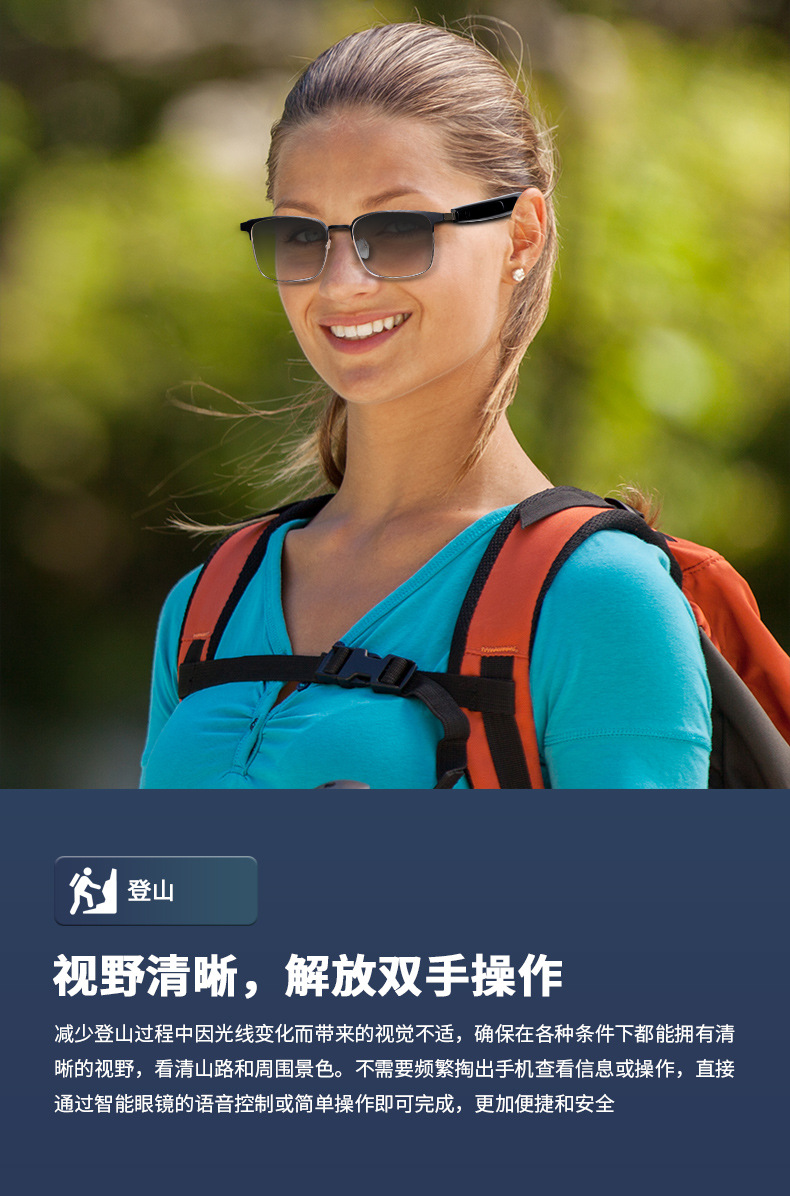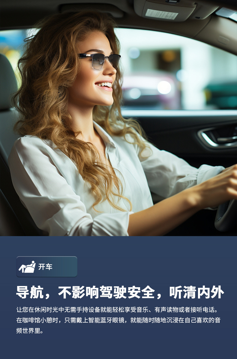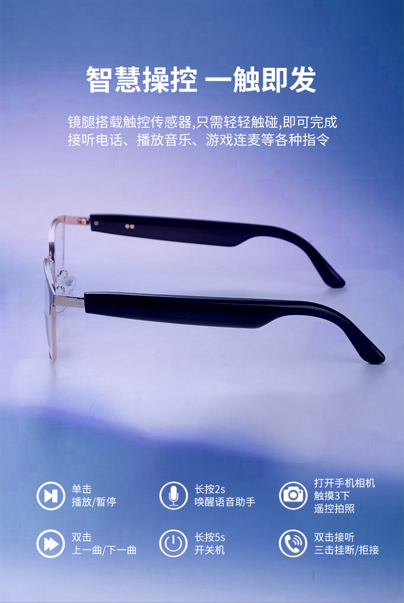 Cross-border smart glasses, Bluetooth glasses, blue light color-changing glasses, listening to songs, making phone calls, sunglasses, interchangeable lenses, driving and navigation