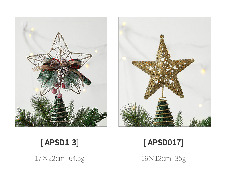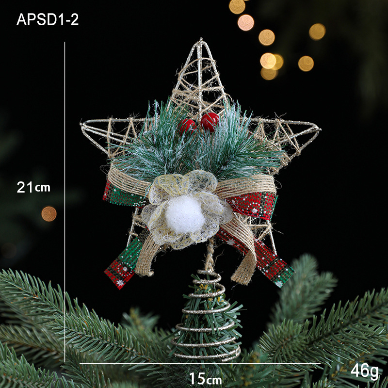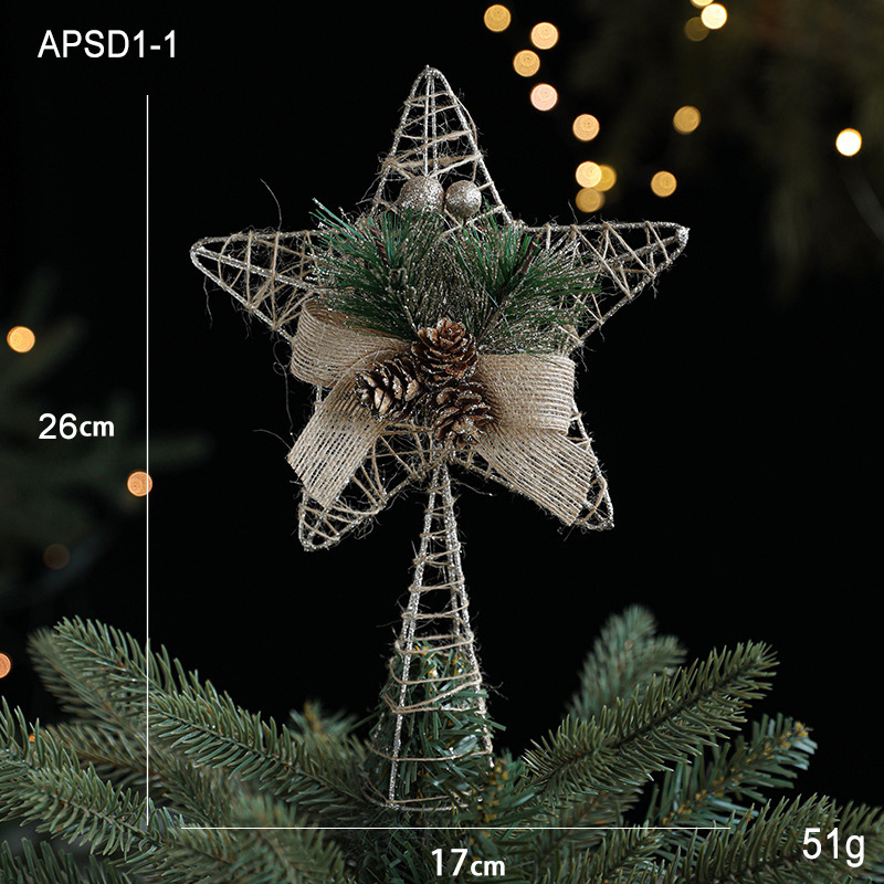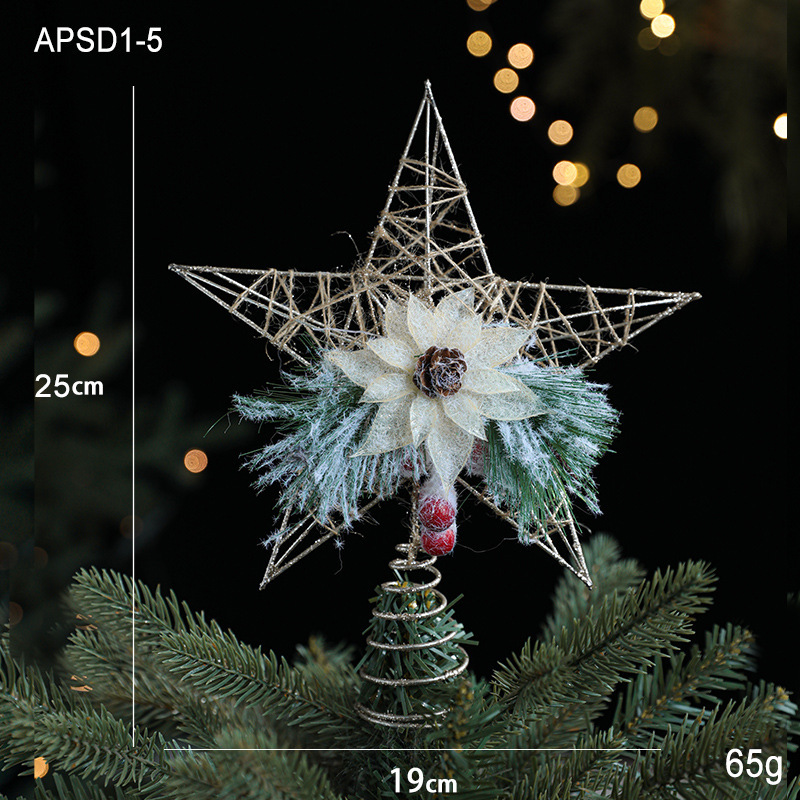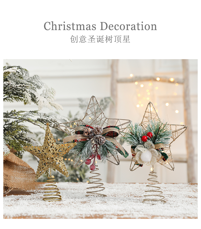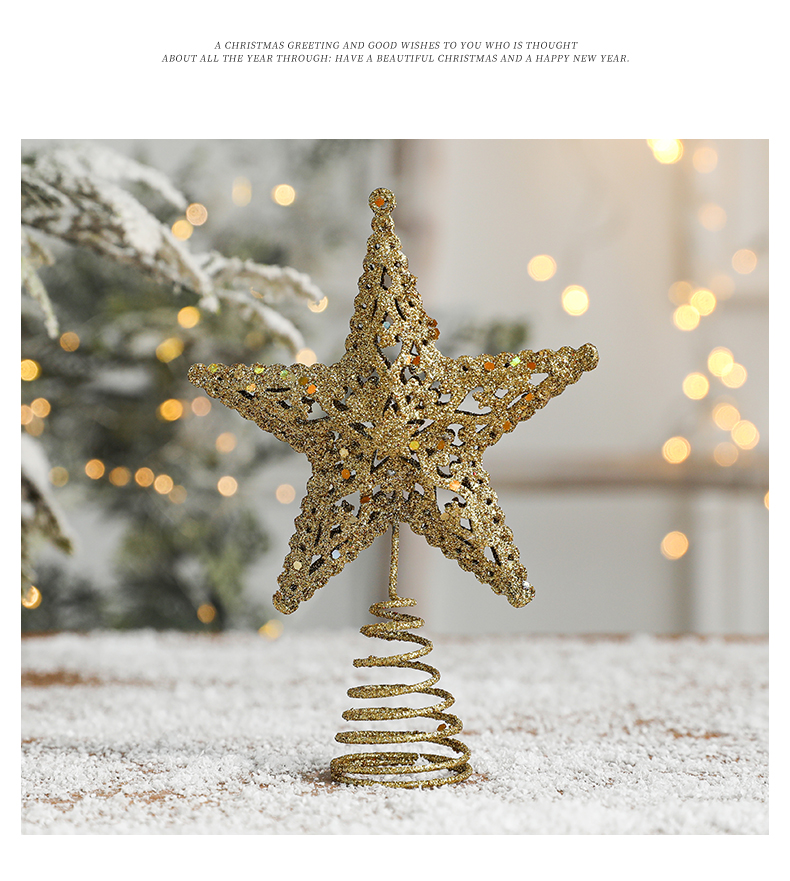 Christmas decorations Christmas tree top five-pointed star accessories gold three-dimensional openwork pentagram