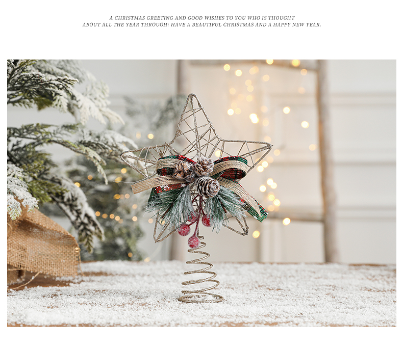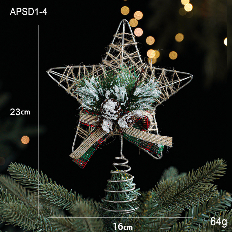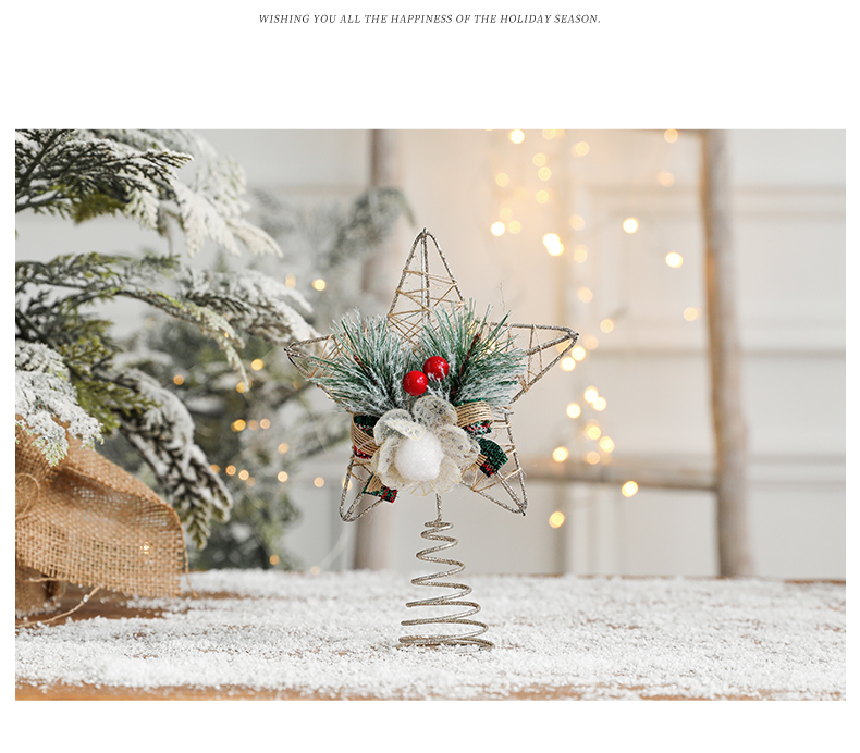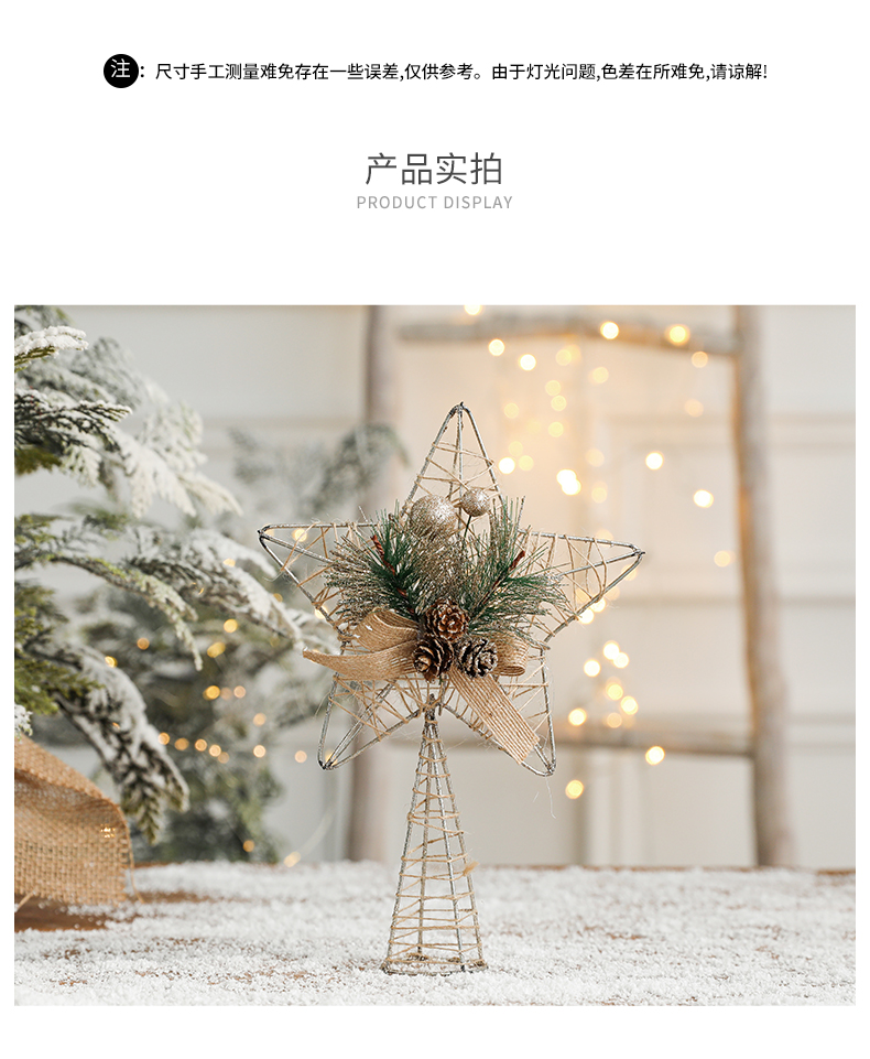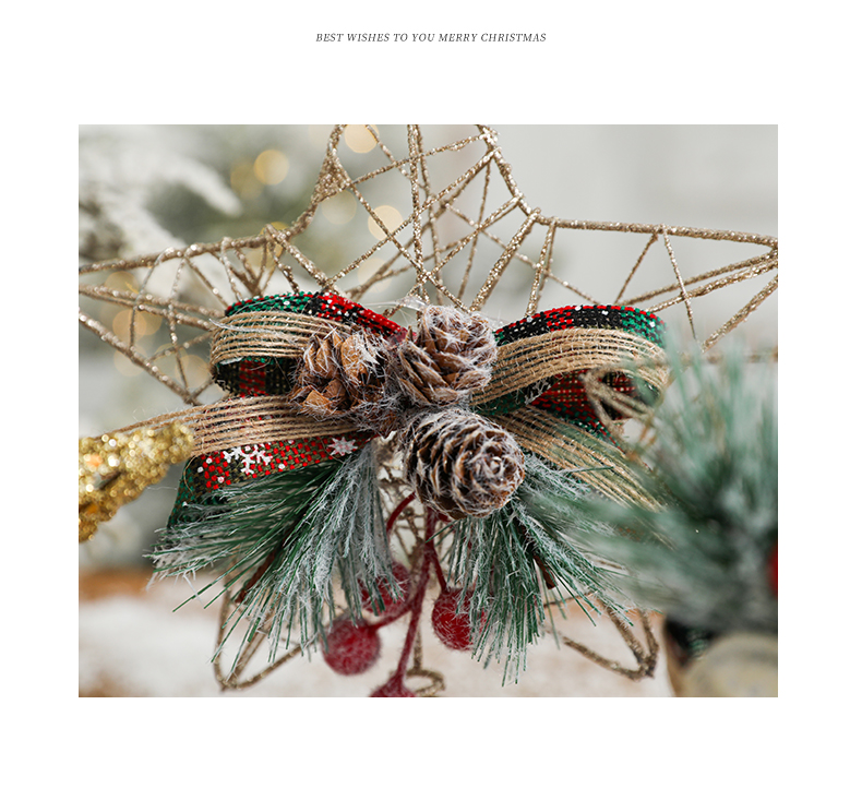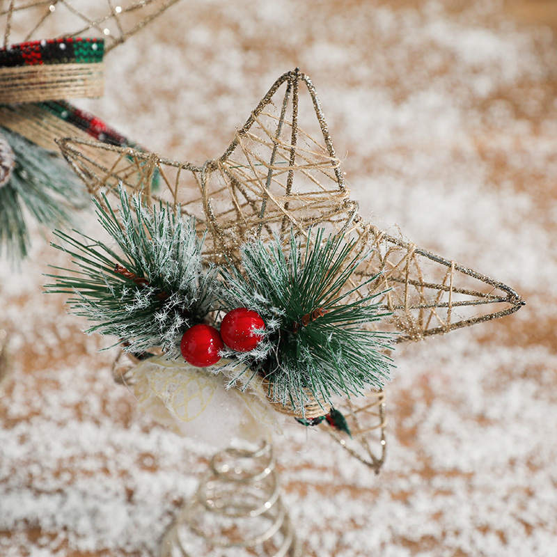 Christmas decorations Christmas tree top five-pointed star accessories gold three-dimensional openwork pentagram