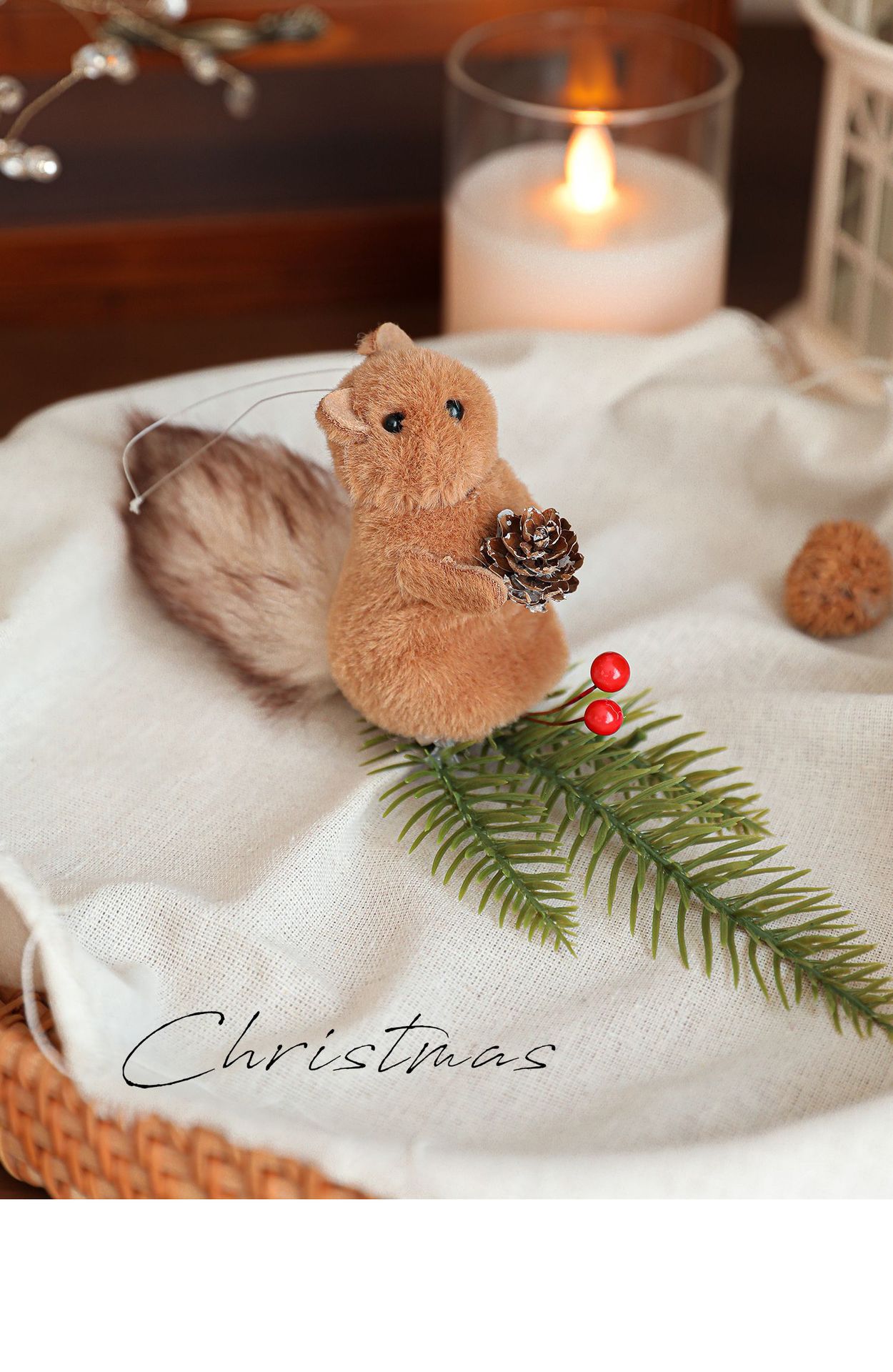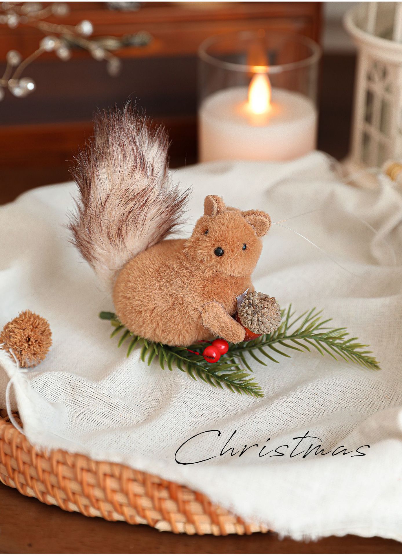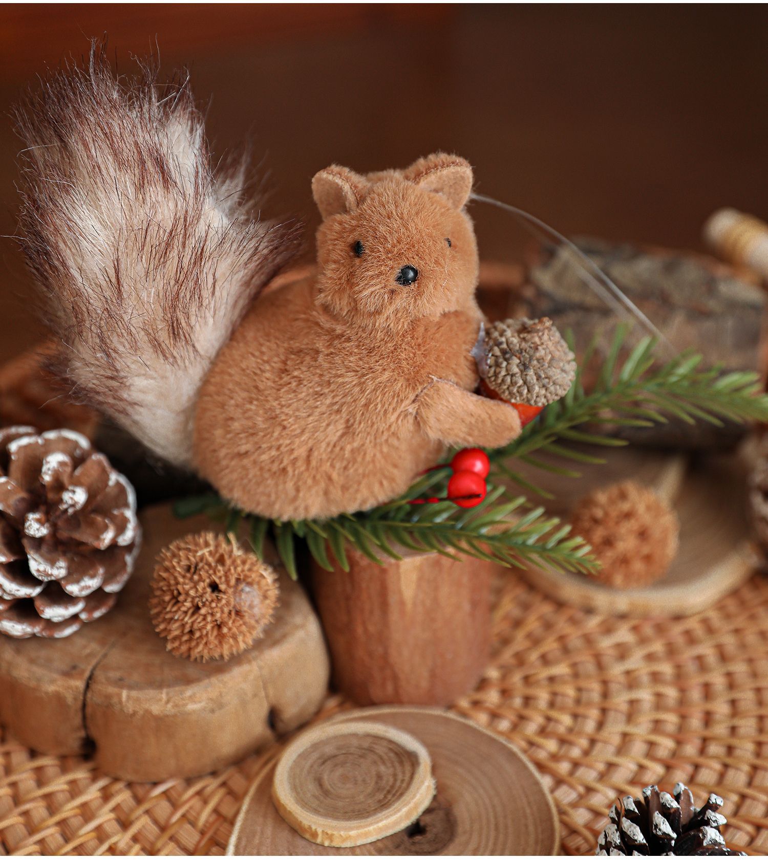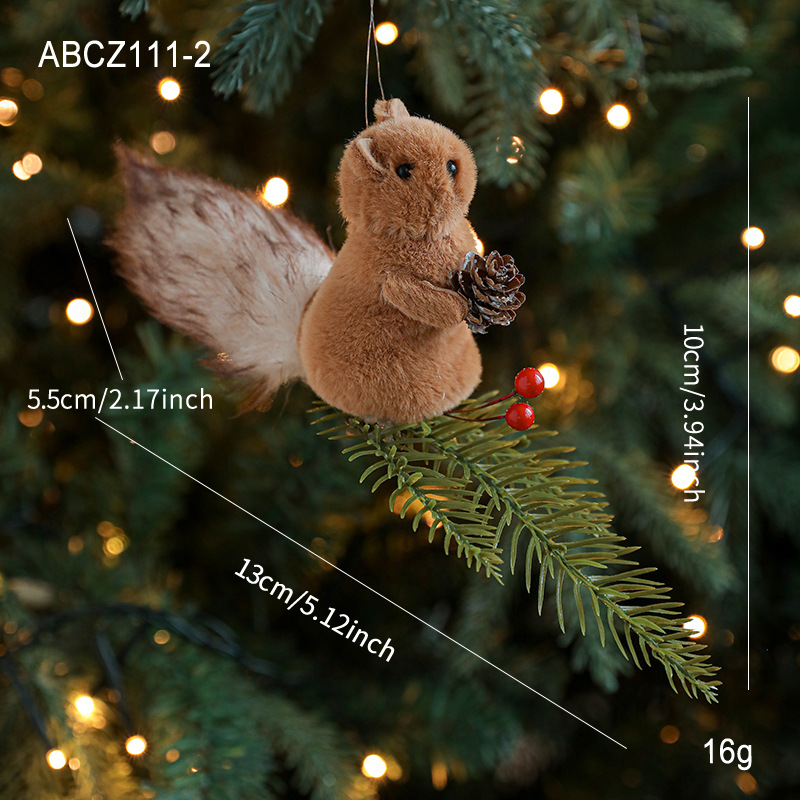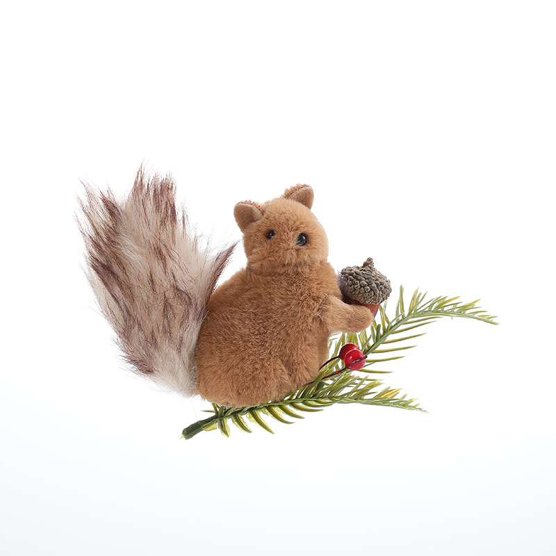 Cross-border plush squirrel pendants, pine cone branches, cartoon dolls, Christmas tree decorations, tabletop ornaments, ornaments, in stock
