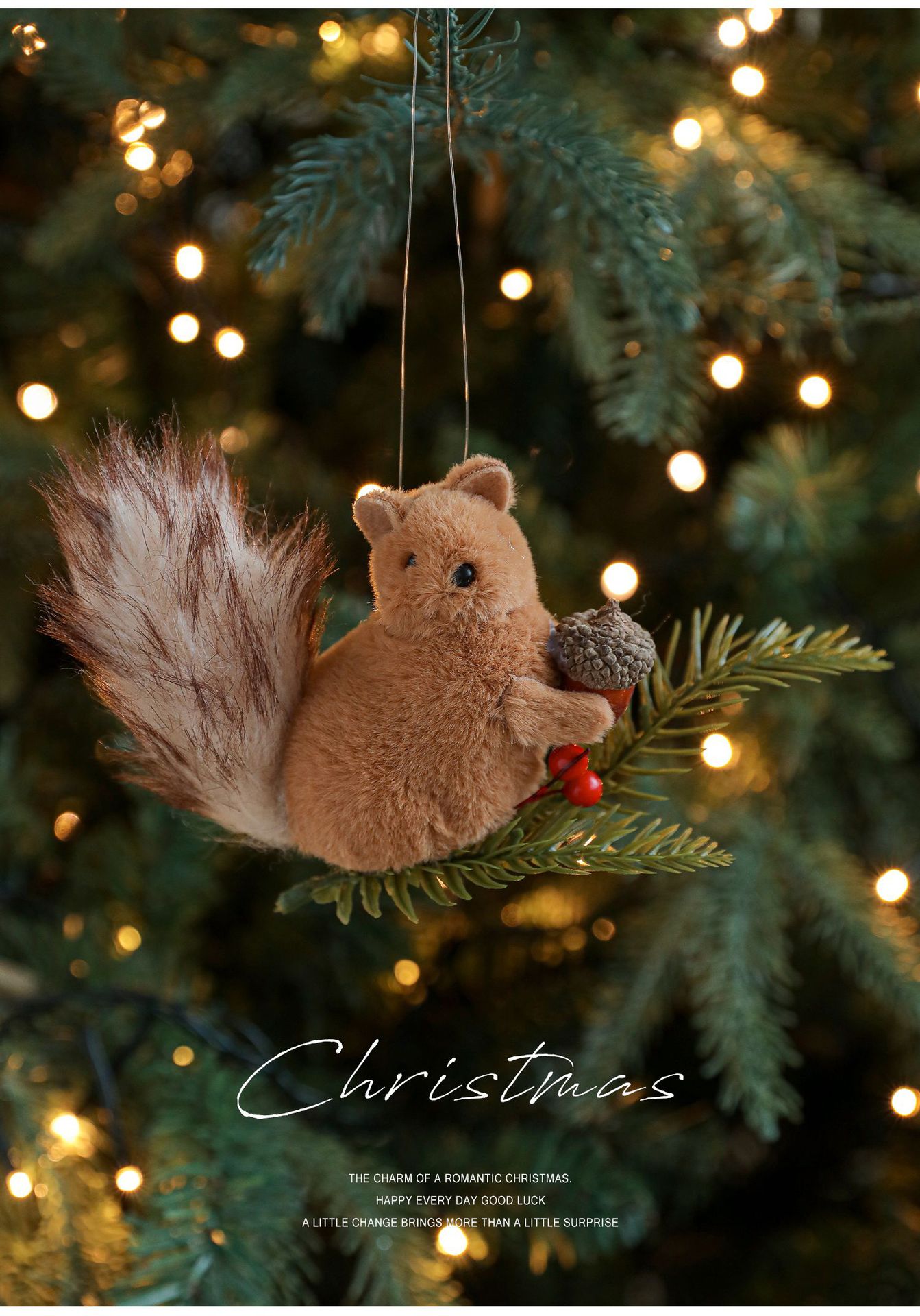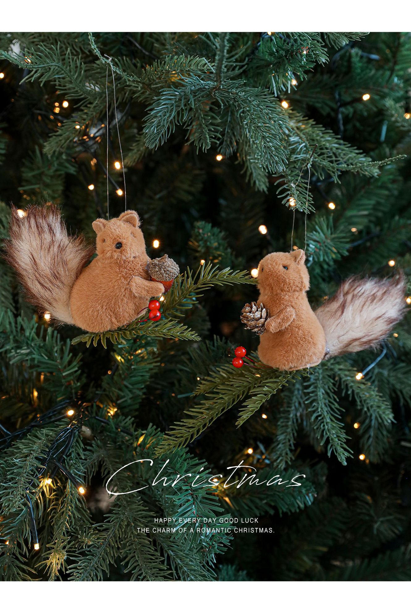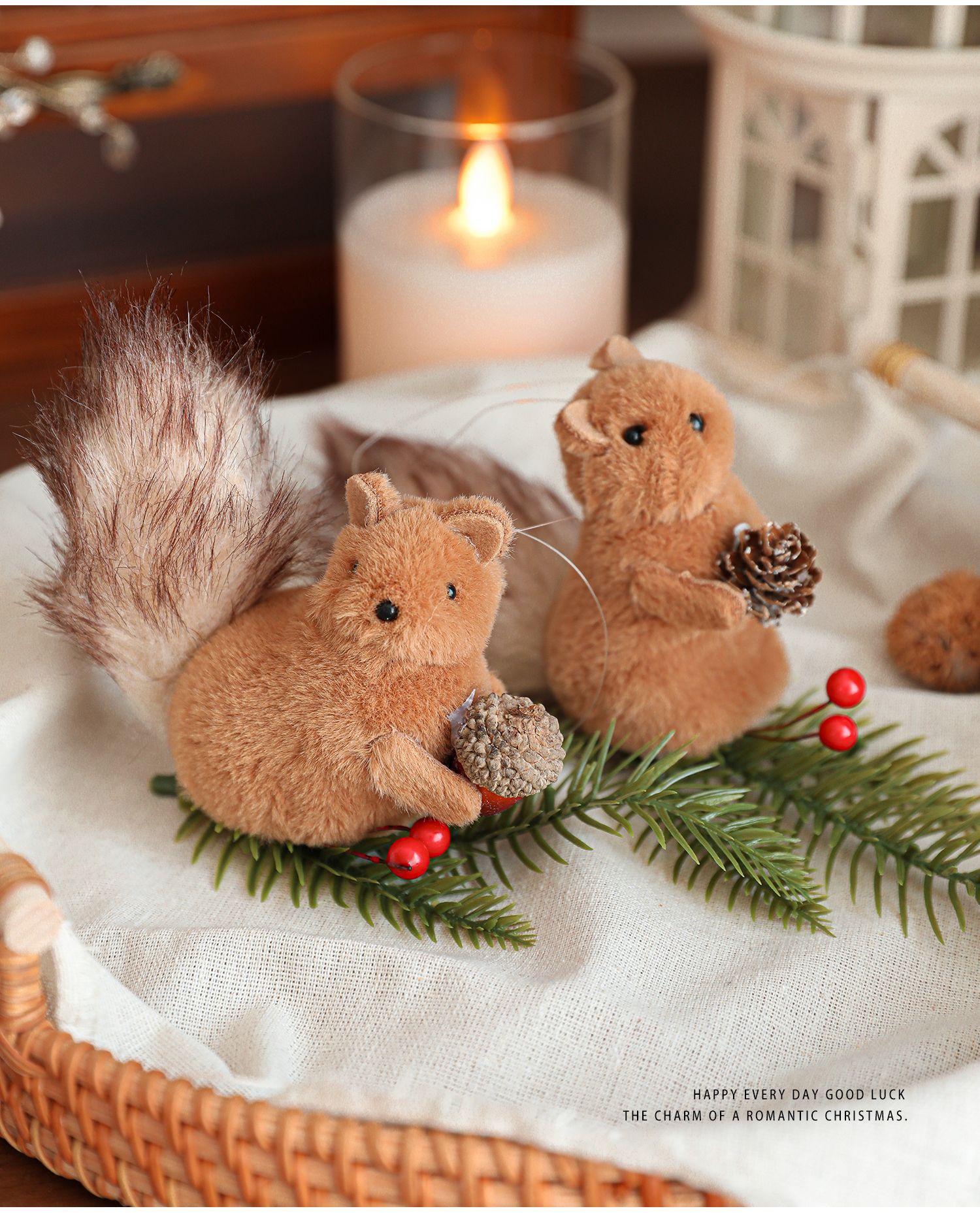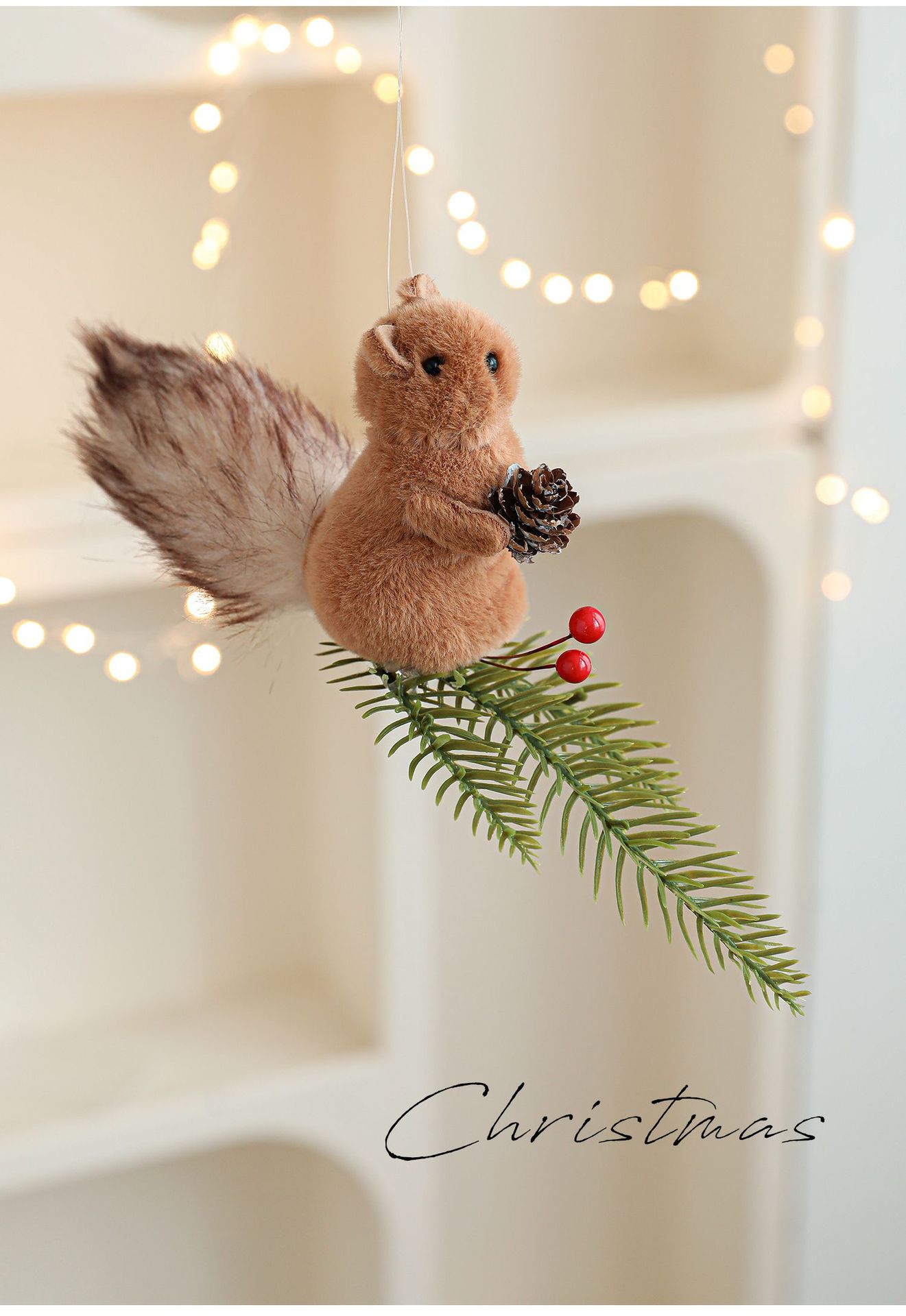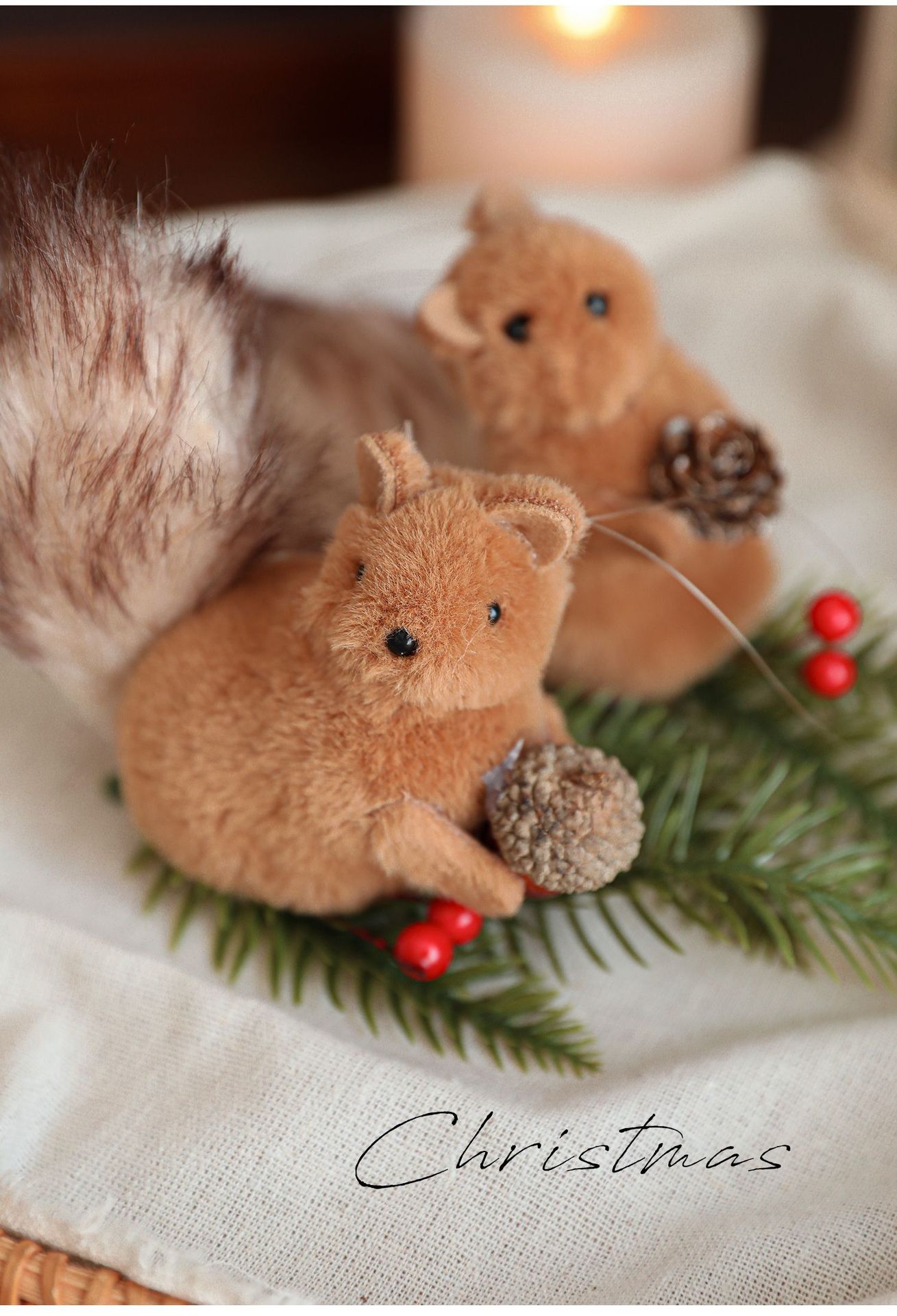 Cross-border plush squirrel pendants, pine cone branches, cartoon dolls, Christmas tree decorations, tabletop ornaments, ornaments, in stock