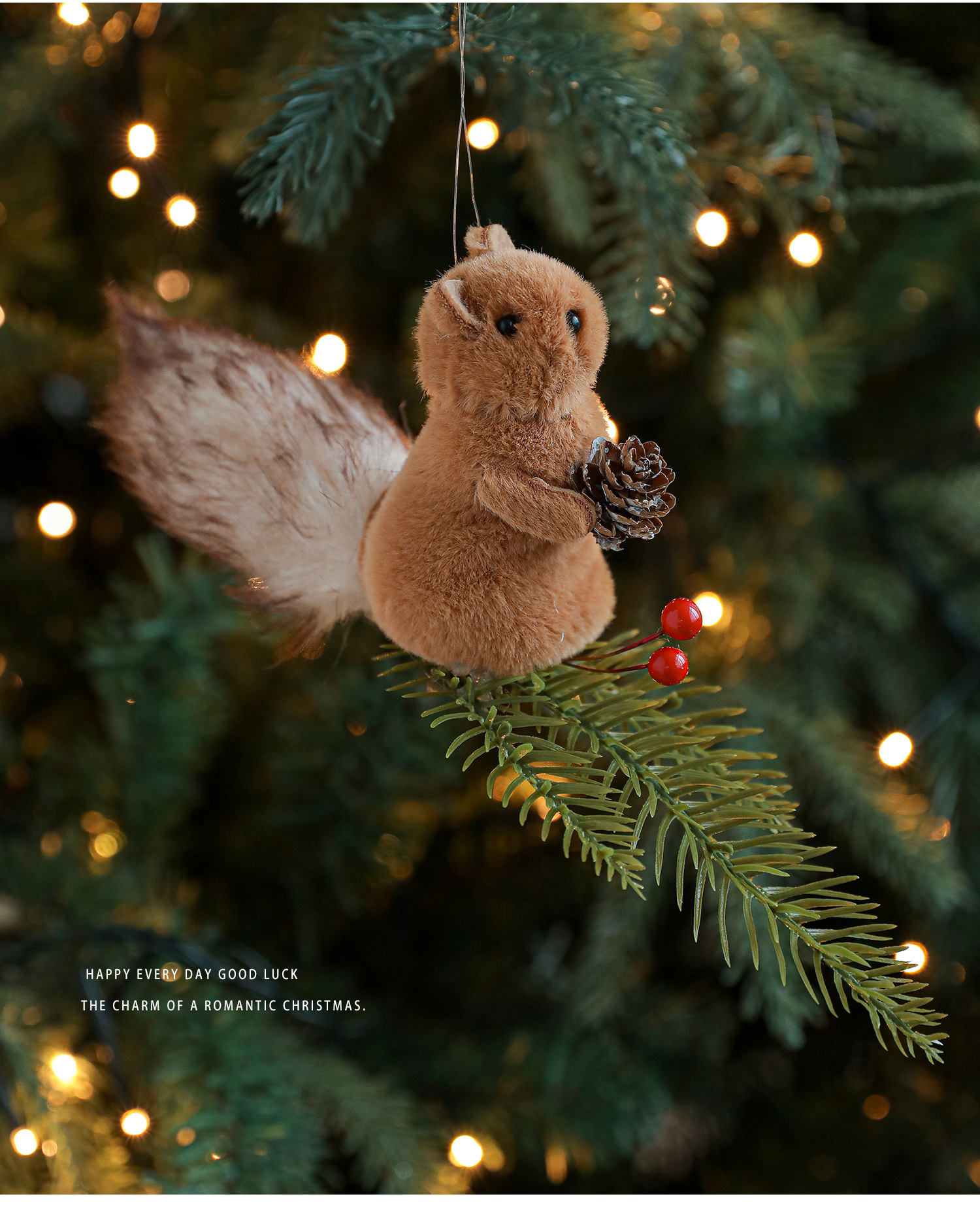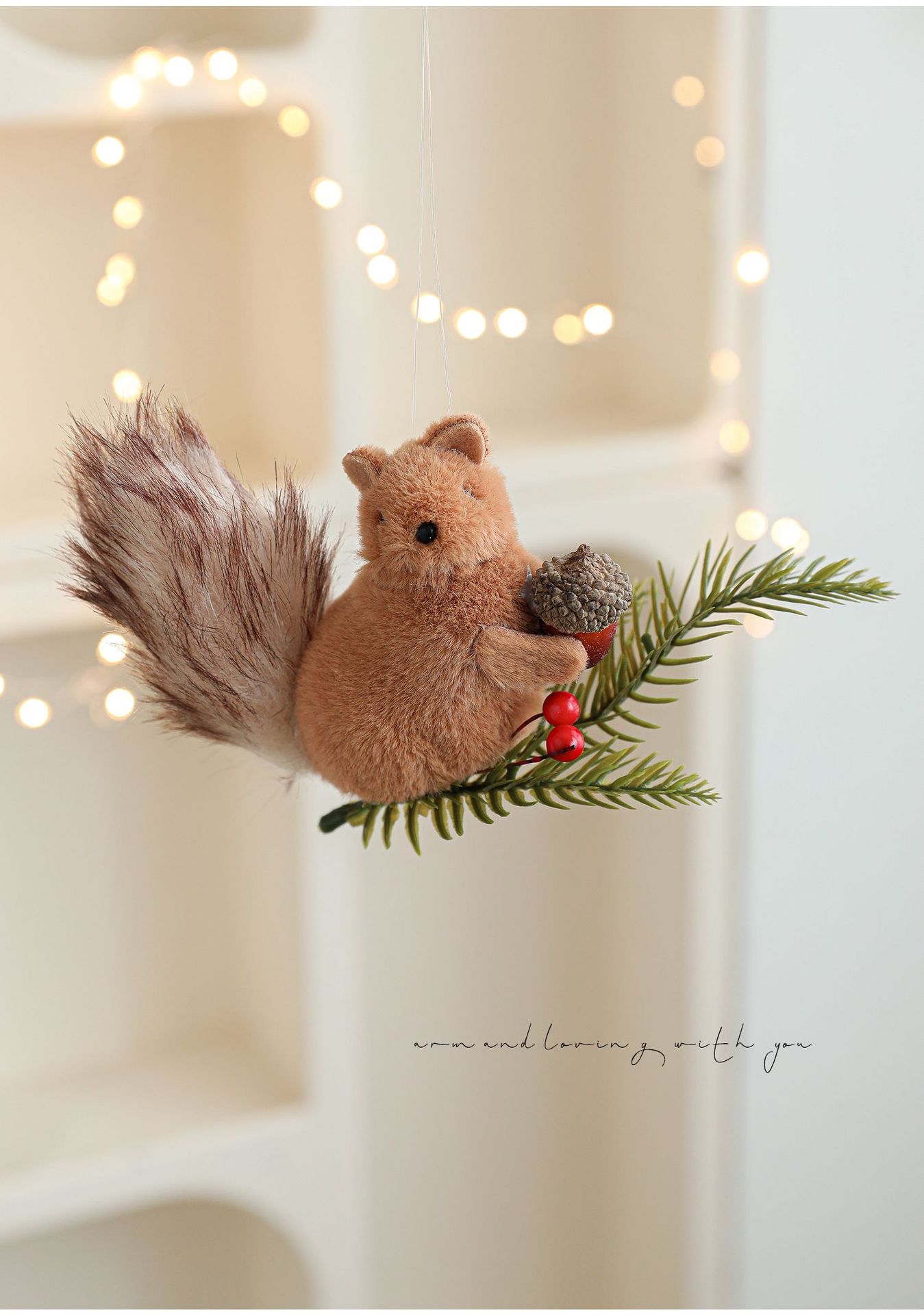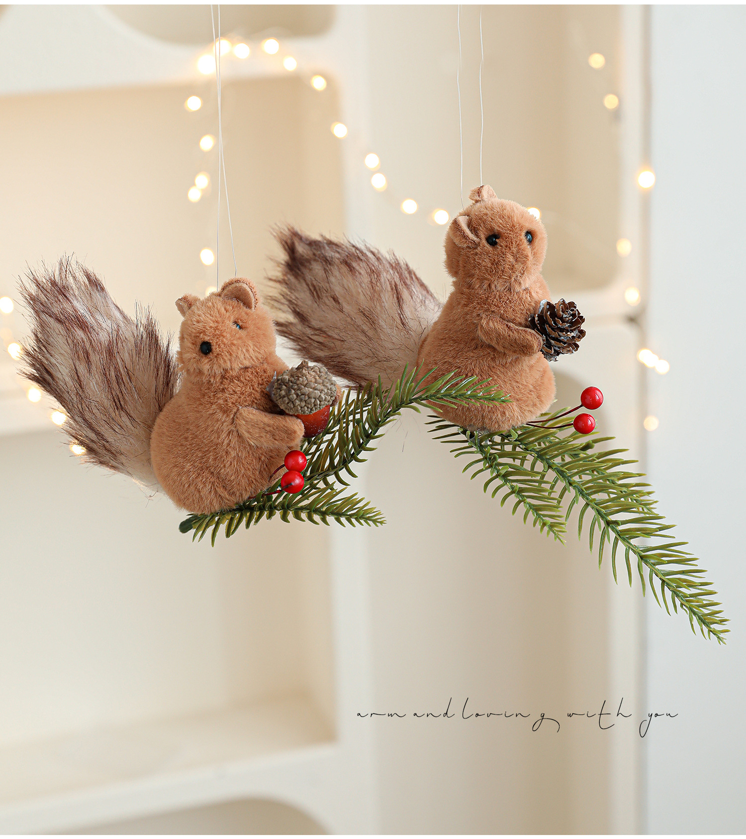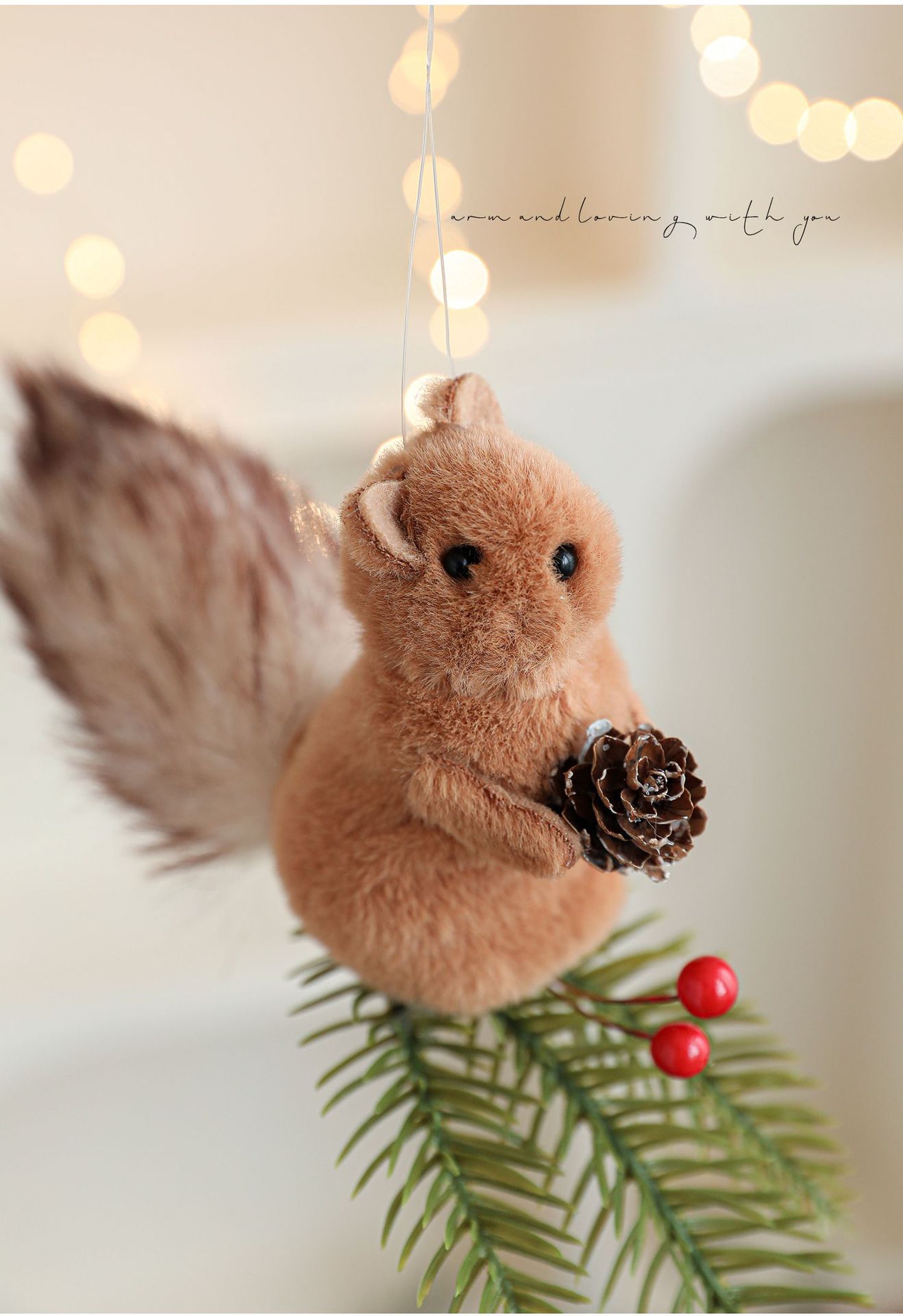 Cross-border plush squirrel pendants, pine cone branches, cartoon dolls, Christmas tree decorations, tabletop ornaments, ornaments, in stock