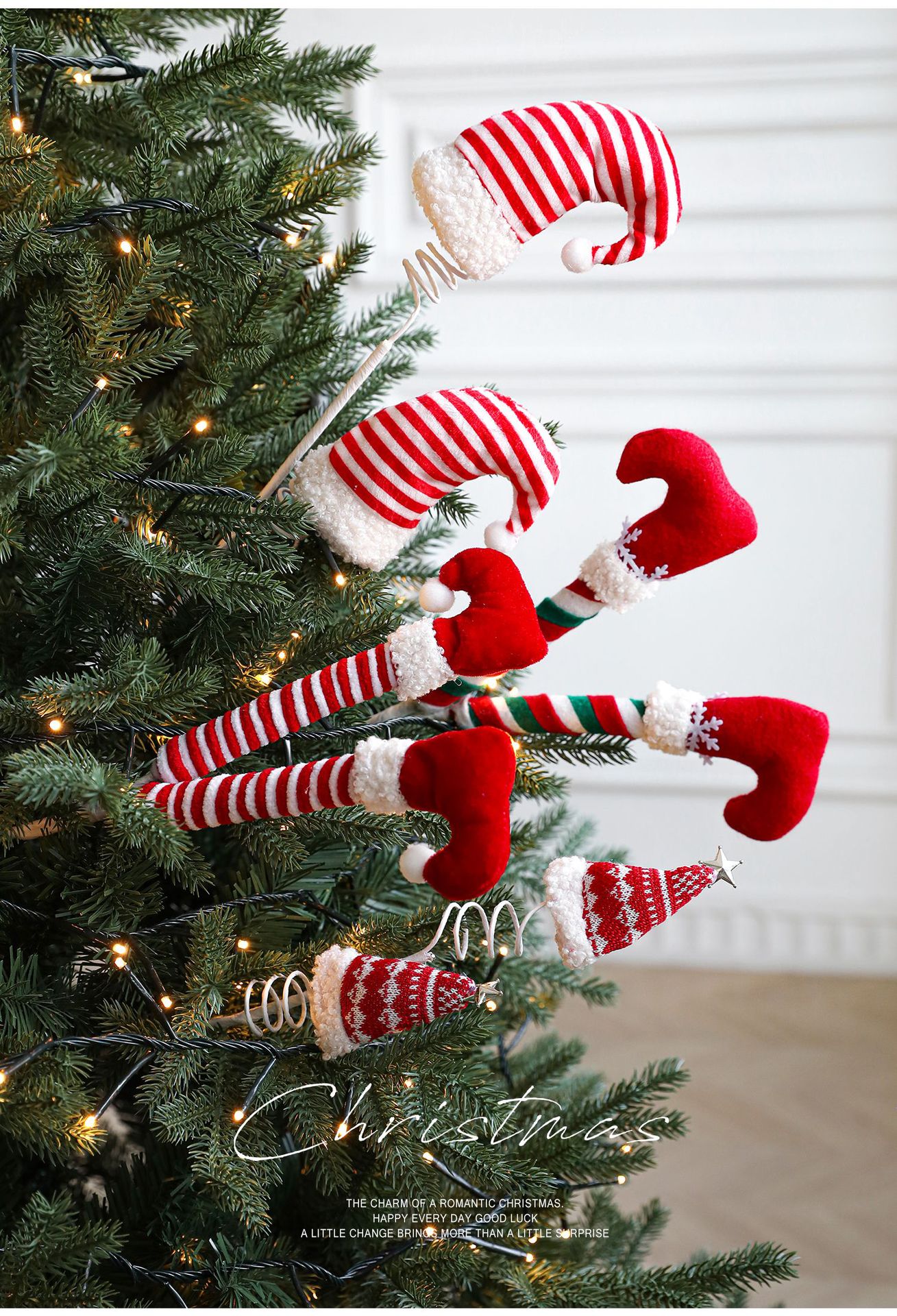 Cross Border Christmas Cuttings Hook Boots Hat Plush Toy Roll Spring Plastic Doll Christmas Party Decoration