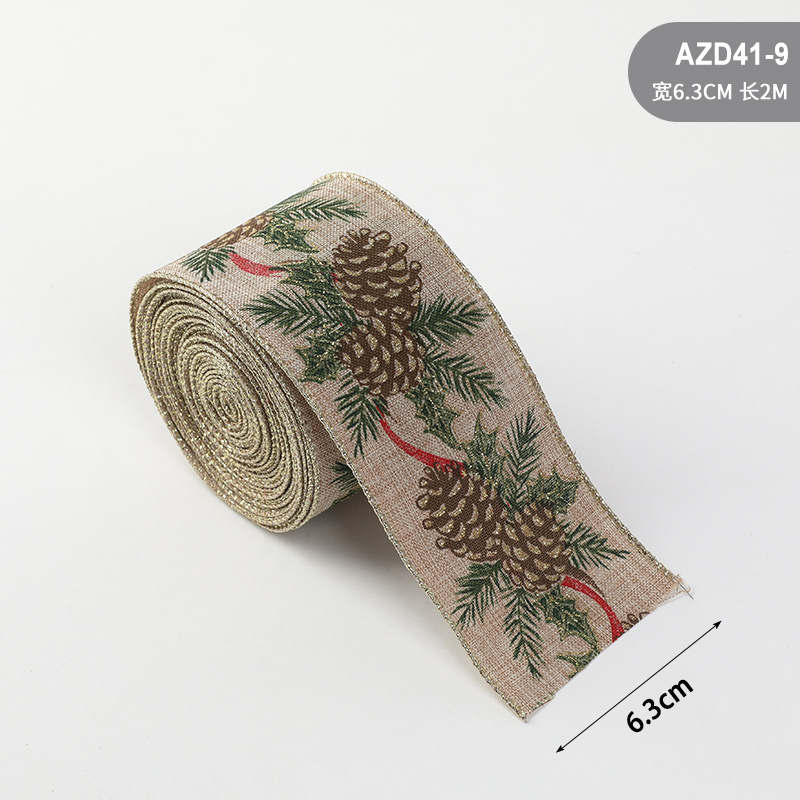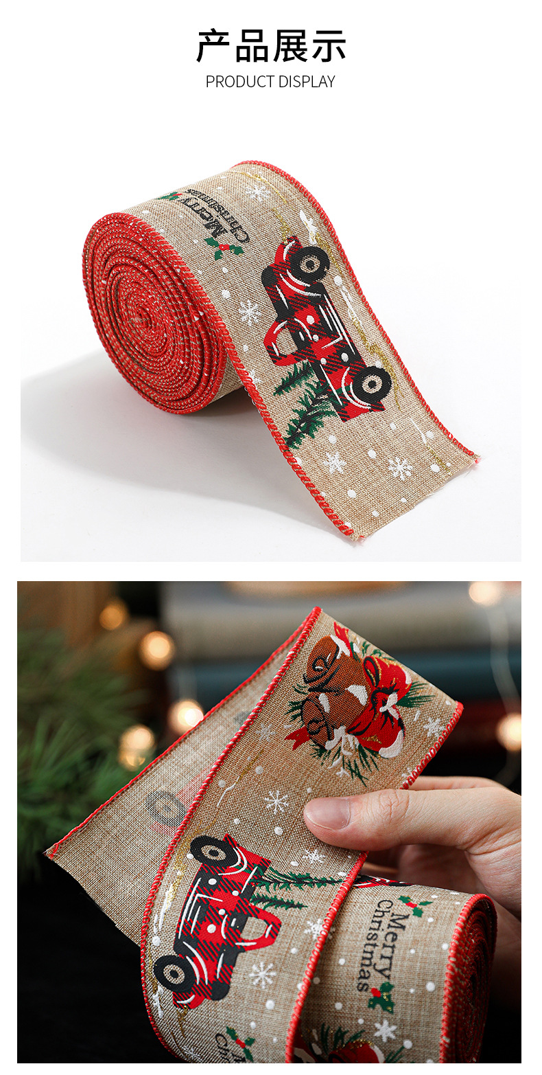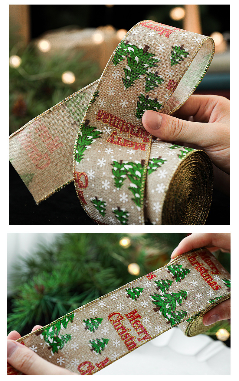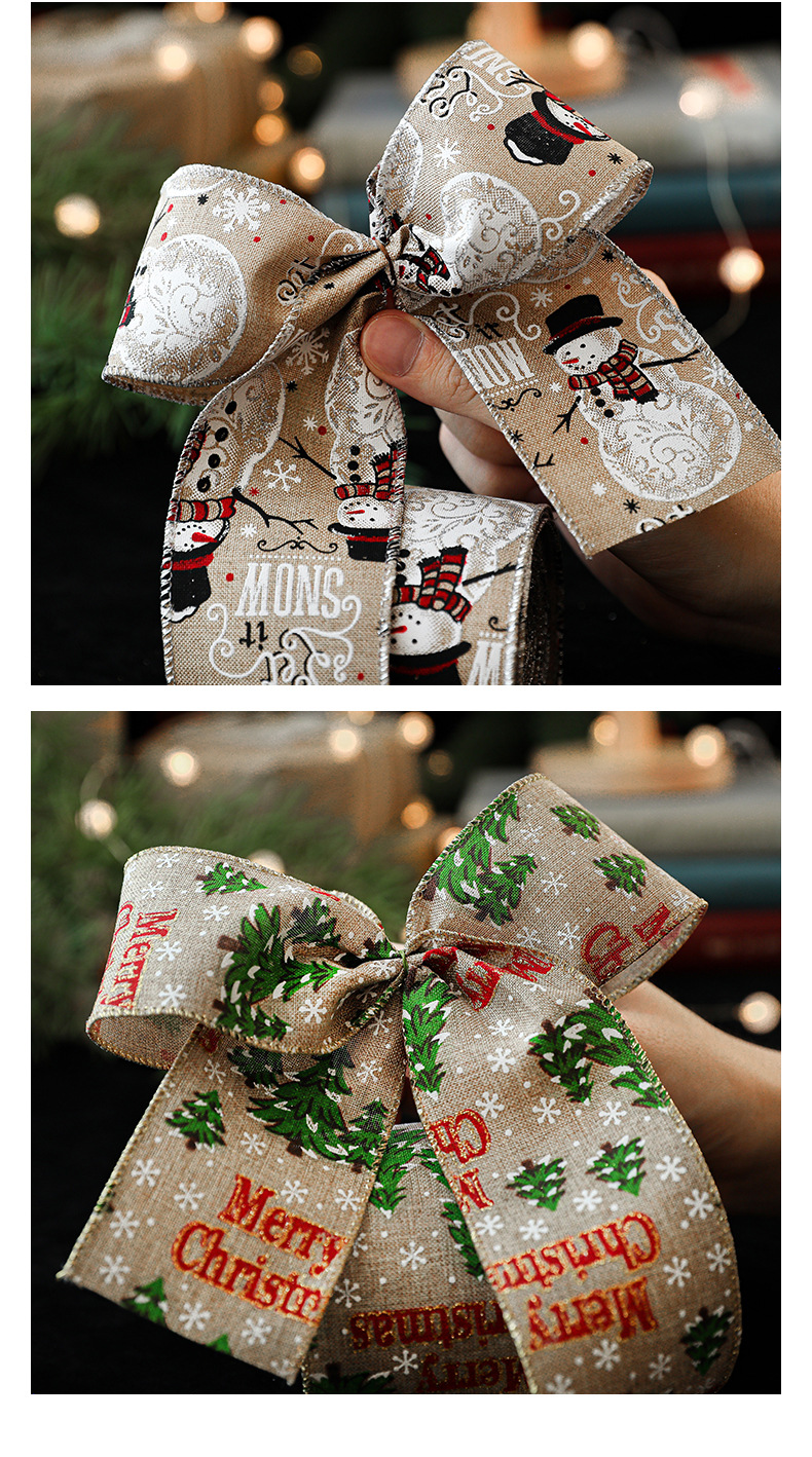 New Christmas webbing imitation linen ribbon decoration bow accessories snowflake Christmas ribbon spot wholesale