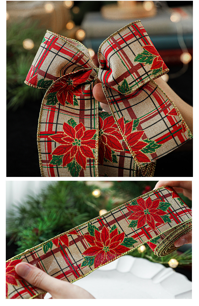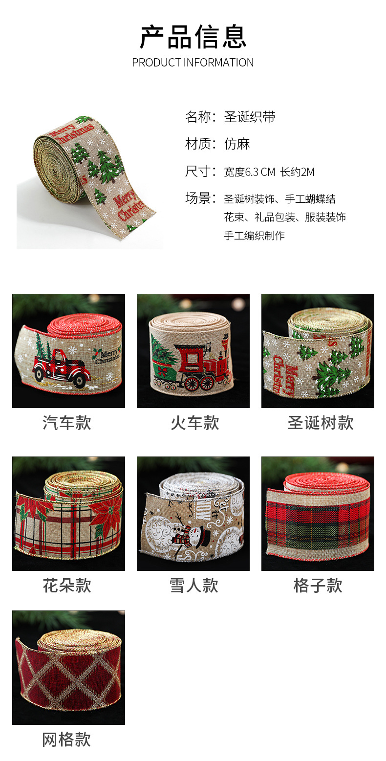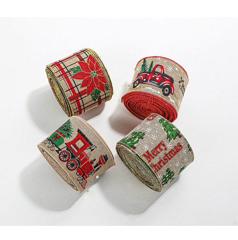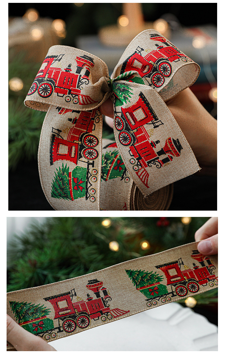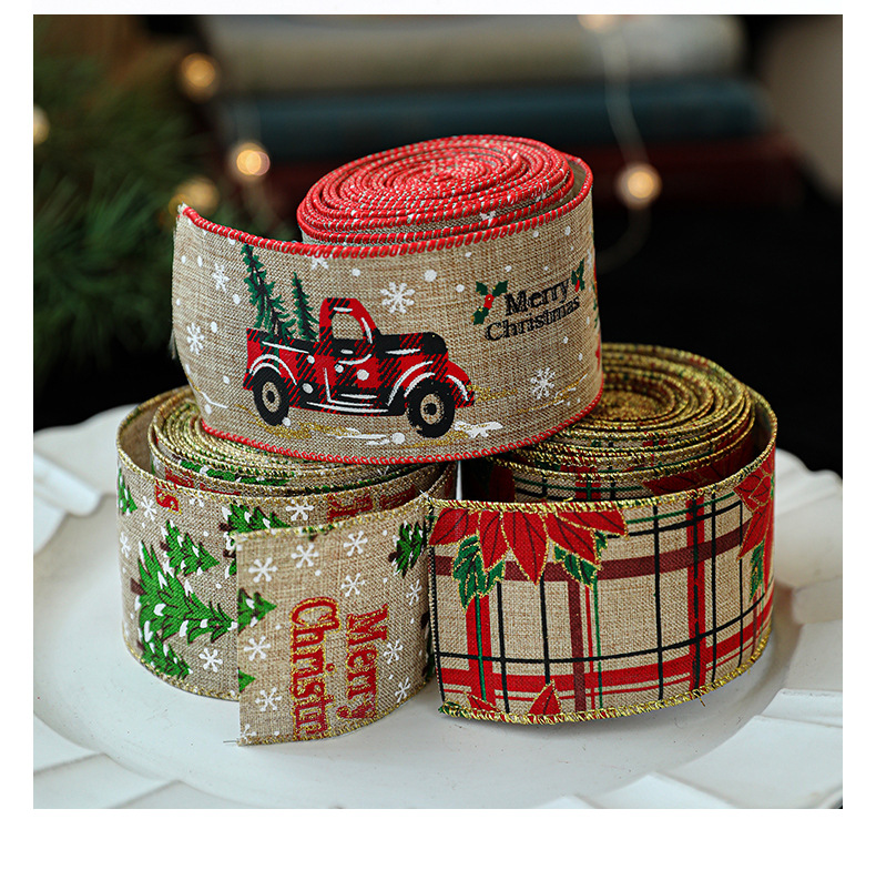 New Christmas webbing imitation linen ribbon decoration bow accessories snowflake Christmas ribbon spot wholesale