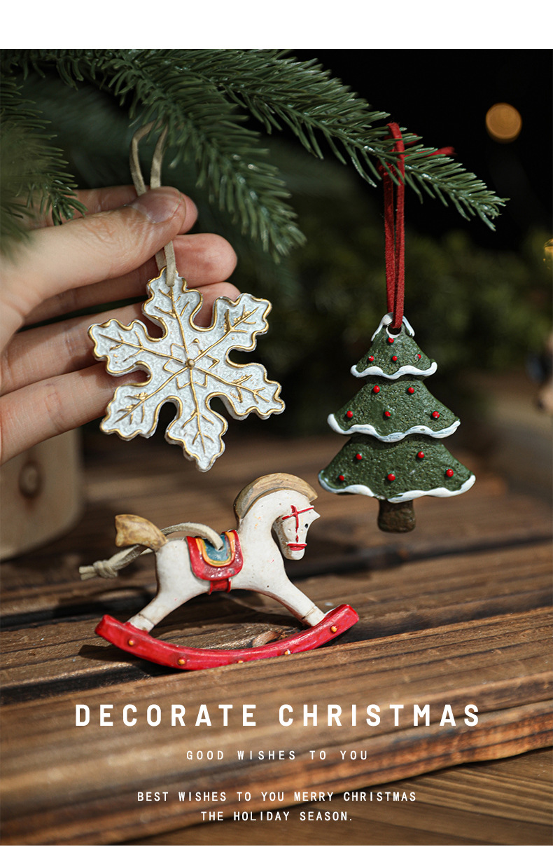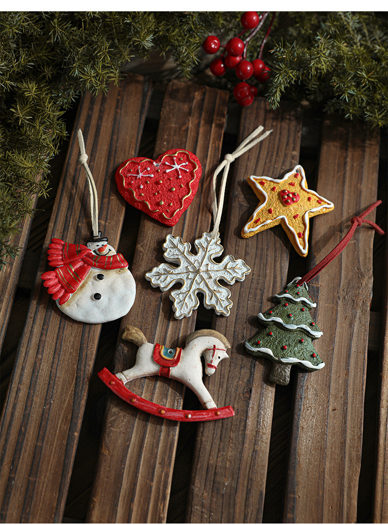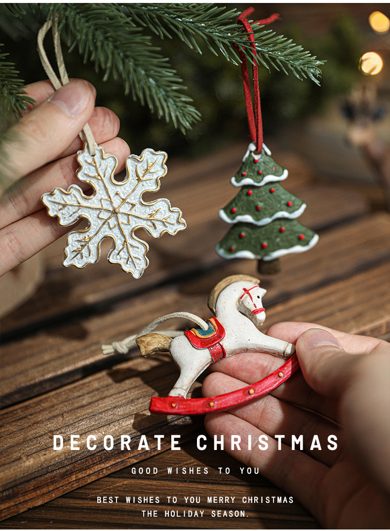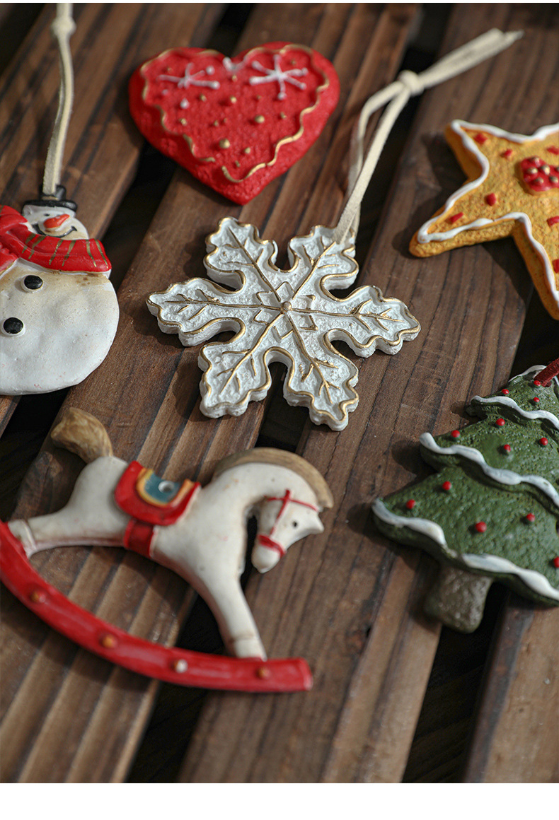 Resin Vintage Christmas Painted Resin Snowflake Love Pentagram Christmas Tree Ornament Pendant Ornament Arrangement