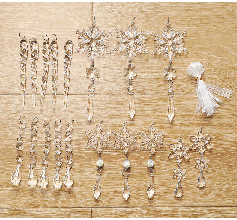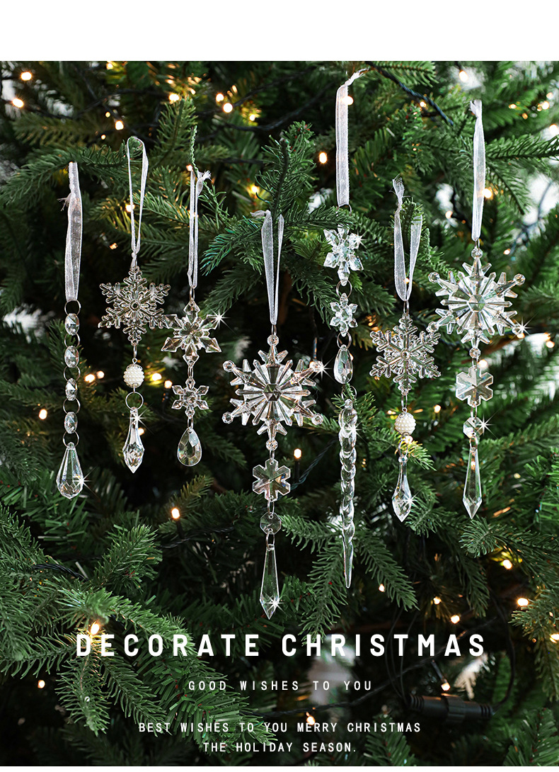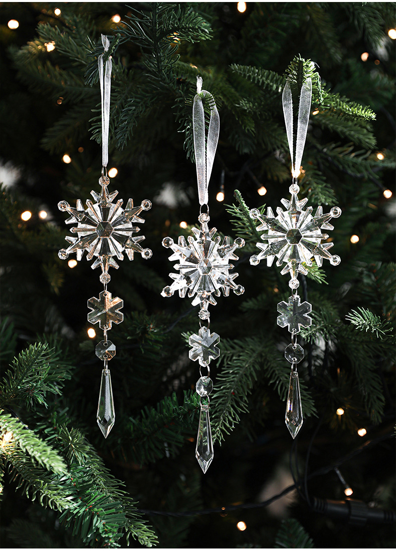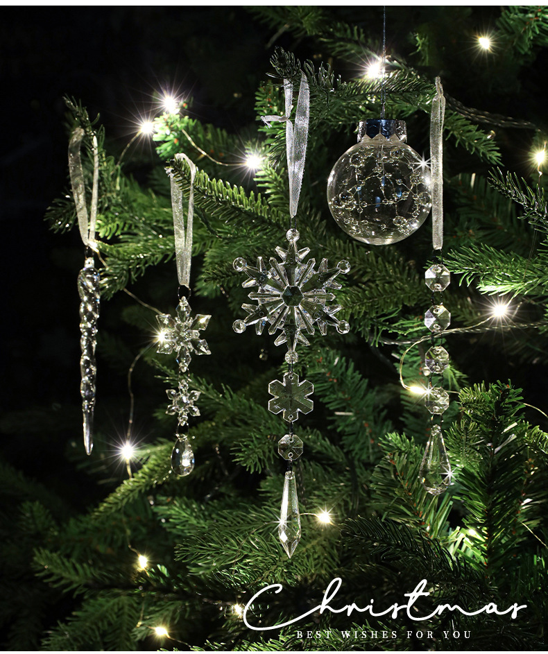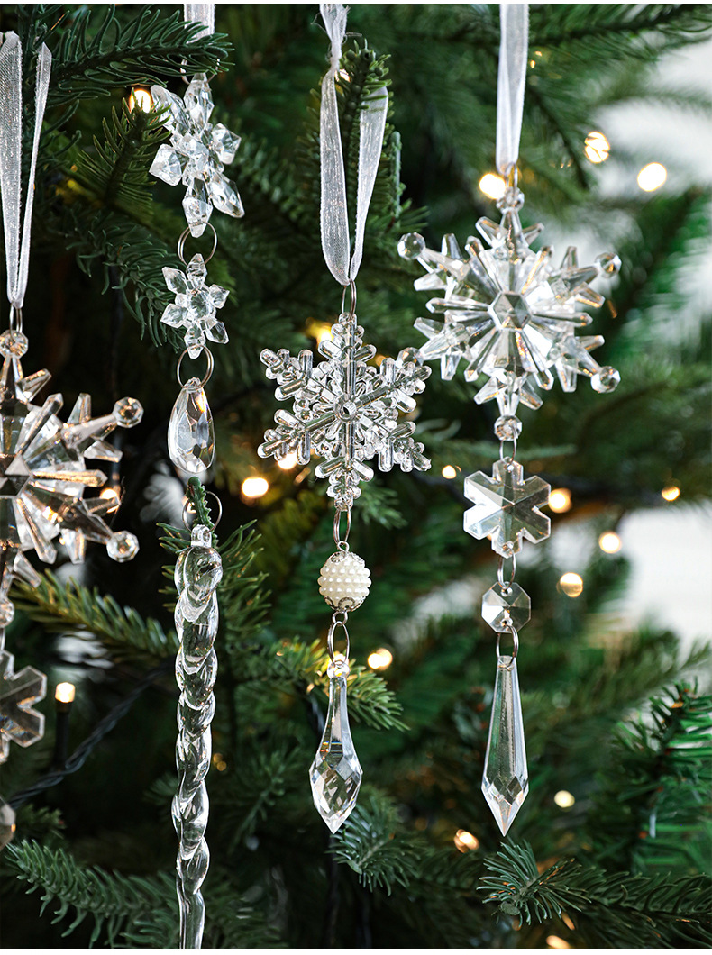 New Acrylic Transparent Pendant Crystal Snowflake Ice Ling Christmas Tree Ornament Decorative Set Multiple Packs in Stock