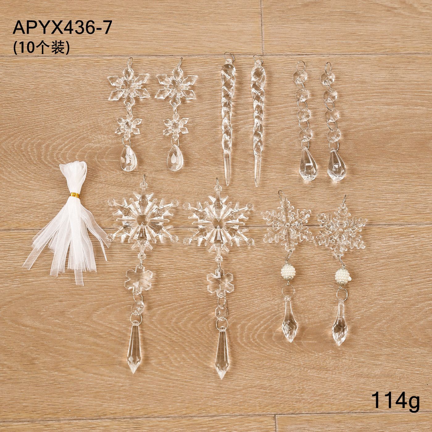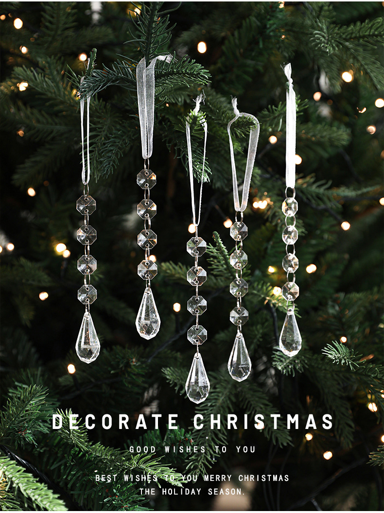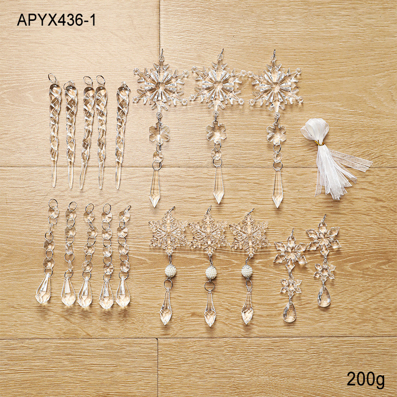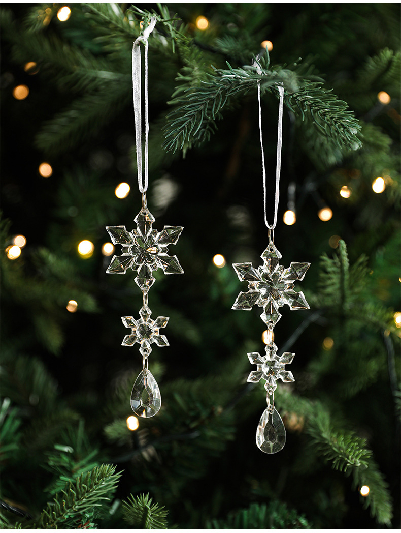New Acrylic Transparent Pendant Crystal Snowflake Ice Ling Christmas Tree Ornament Decorative Set Multiple Packs in Stock