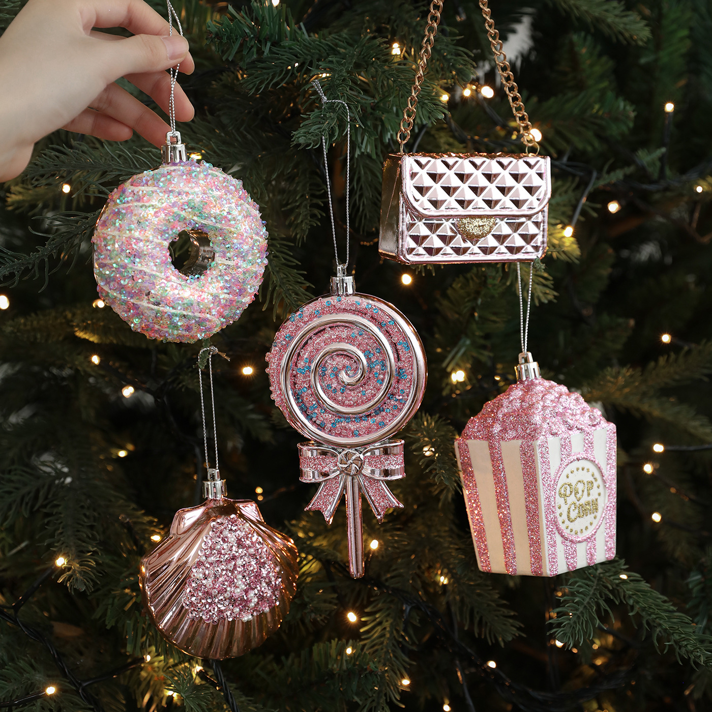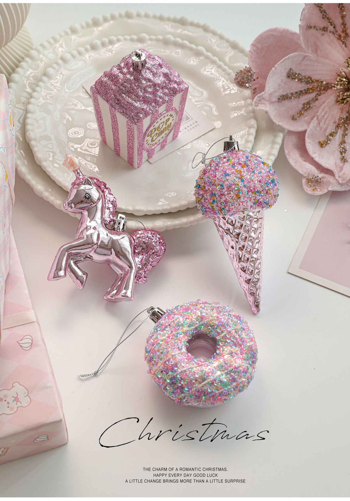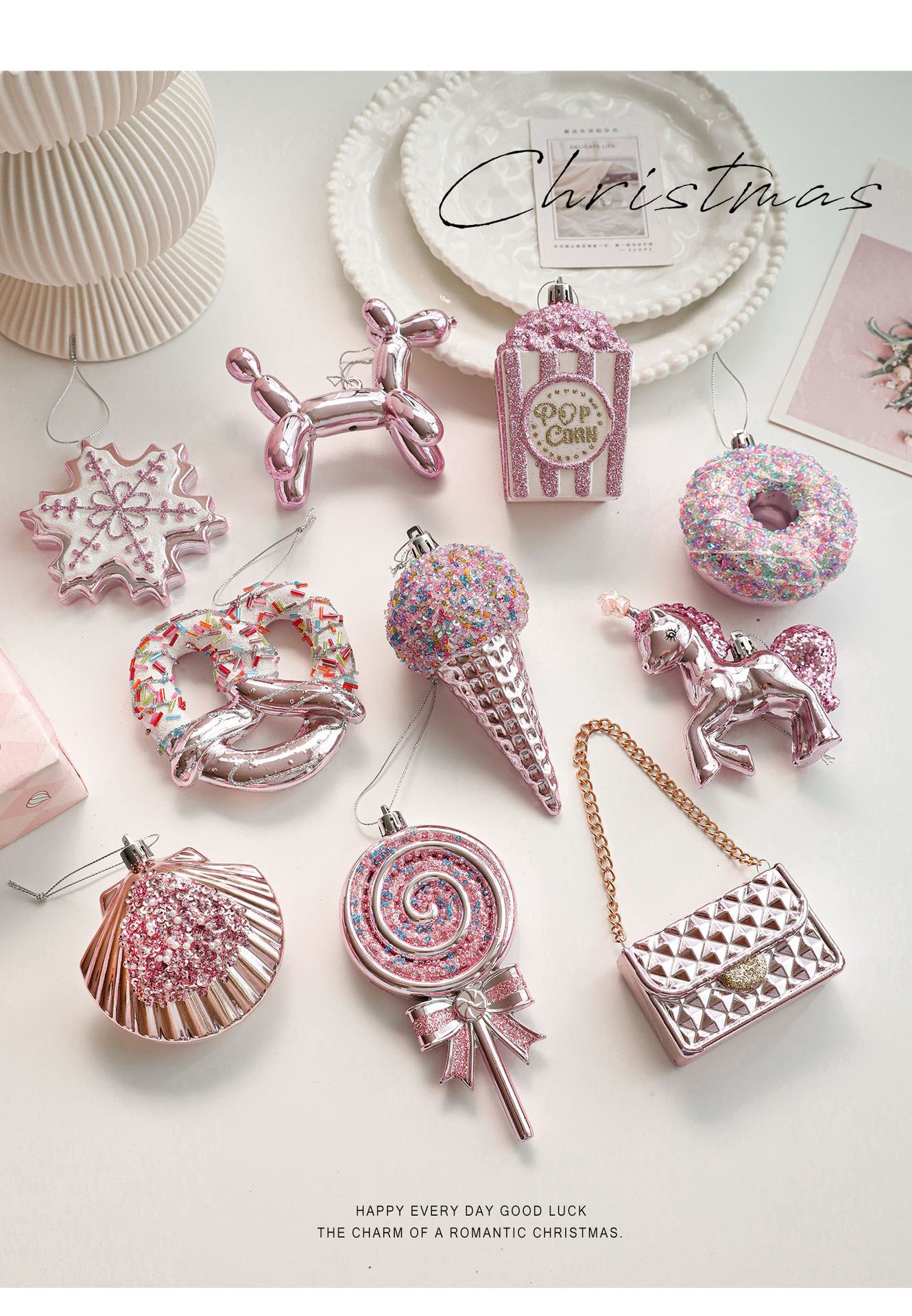 New pink plastic pendant sticky pastel pink cartoon Christmas pendant ins three-dimensional Christmas tree window decoration