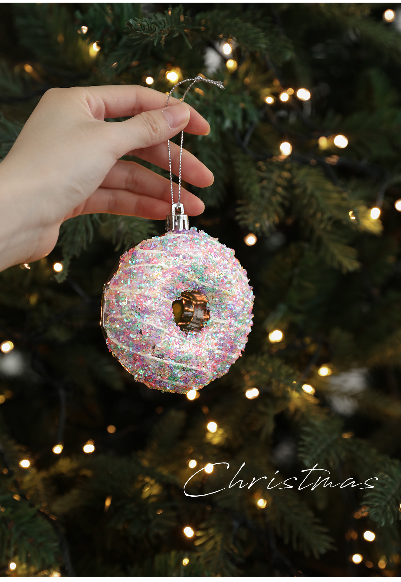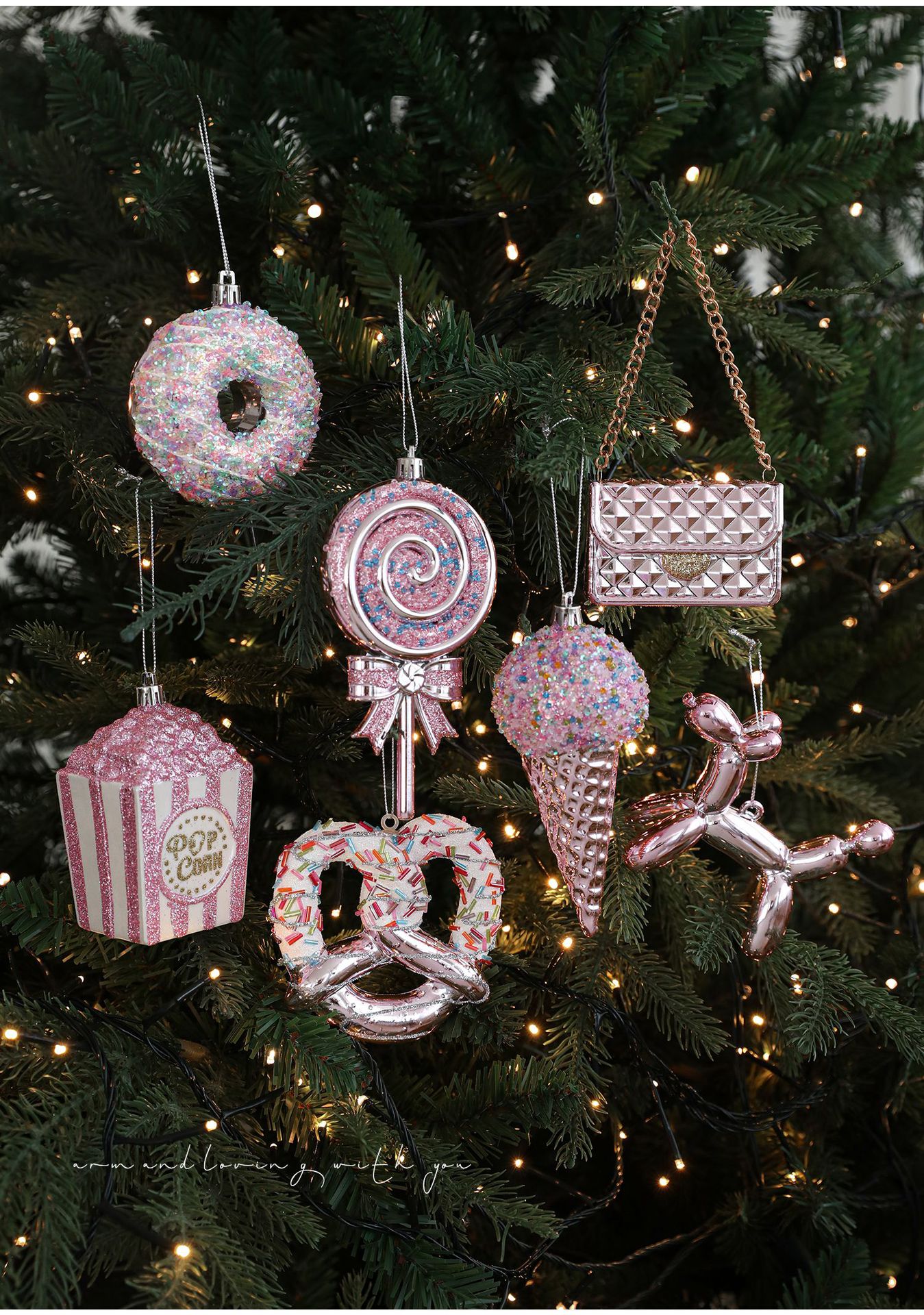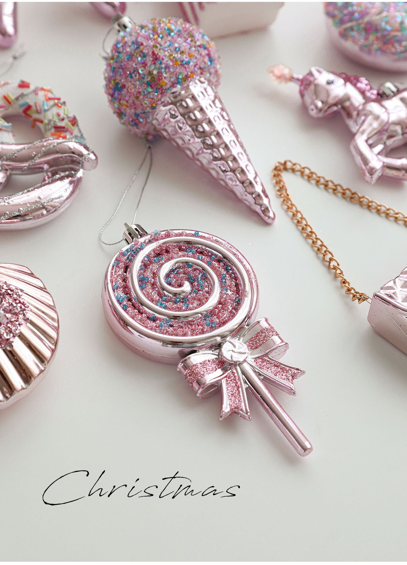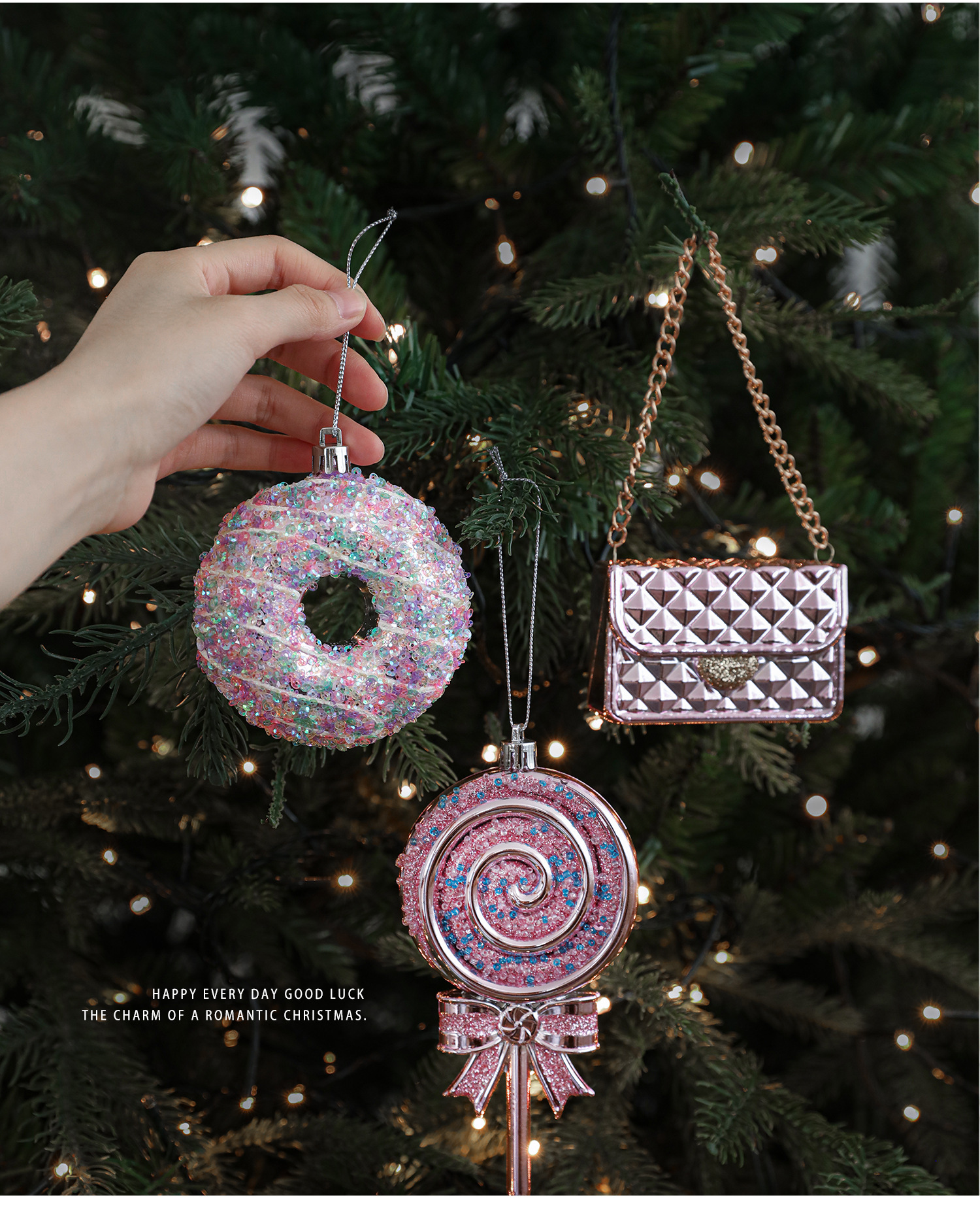 New pink plastic pendant sticky pastel pink cartoon Christmas pendant ins three-dimensional Christmas tree window decoration
