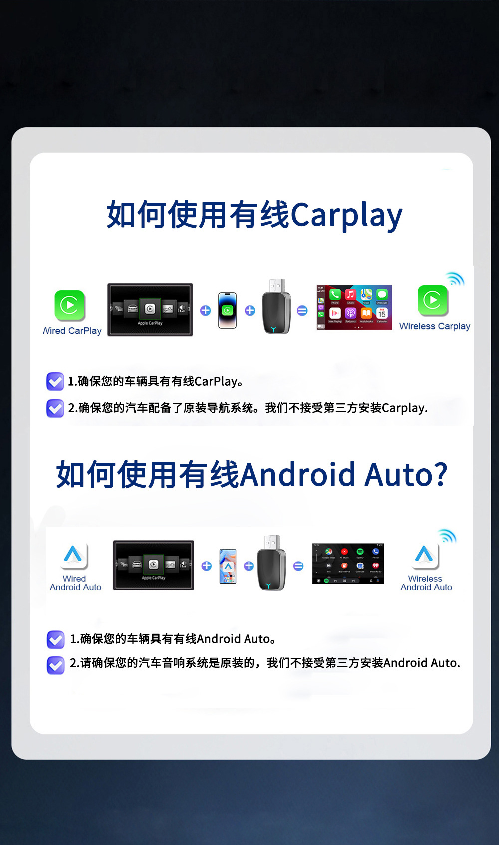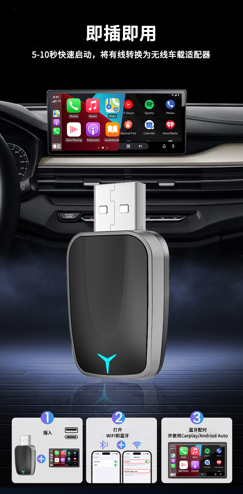 Hot selling carplay wired to wireless box android auto car machine interconnection car wireless converter