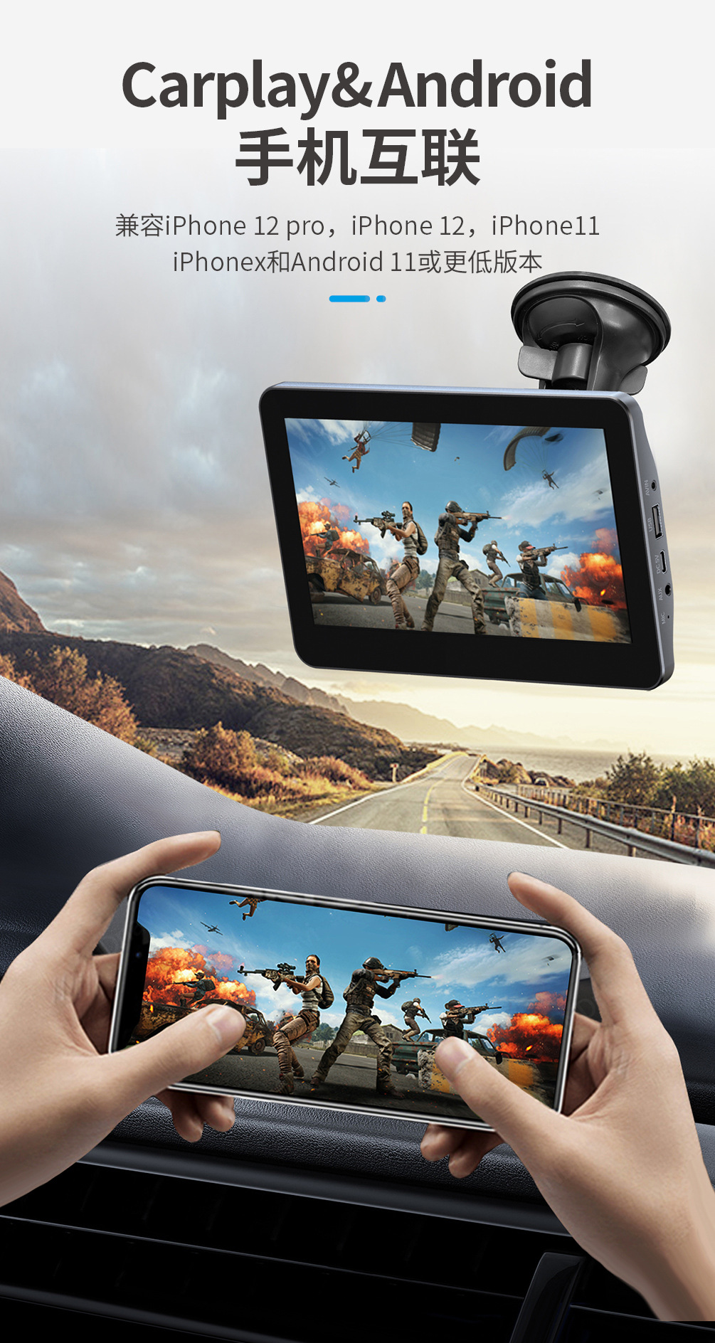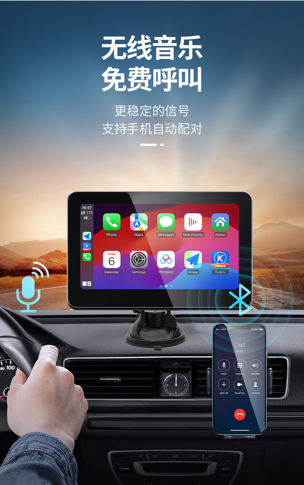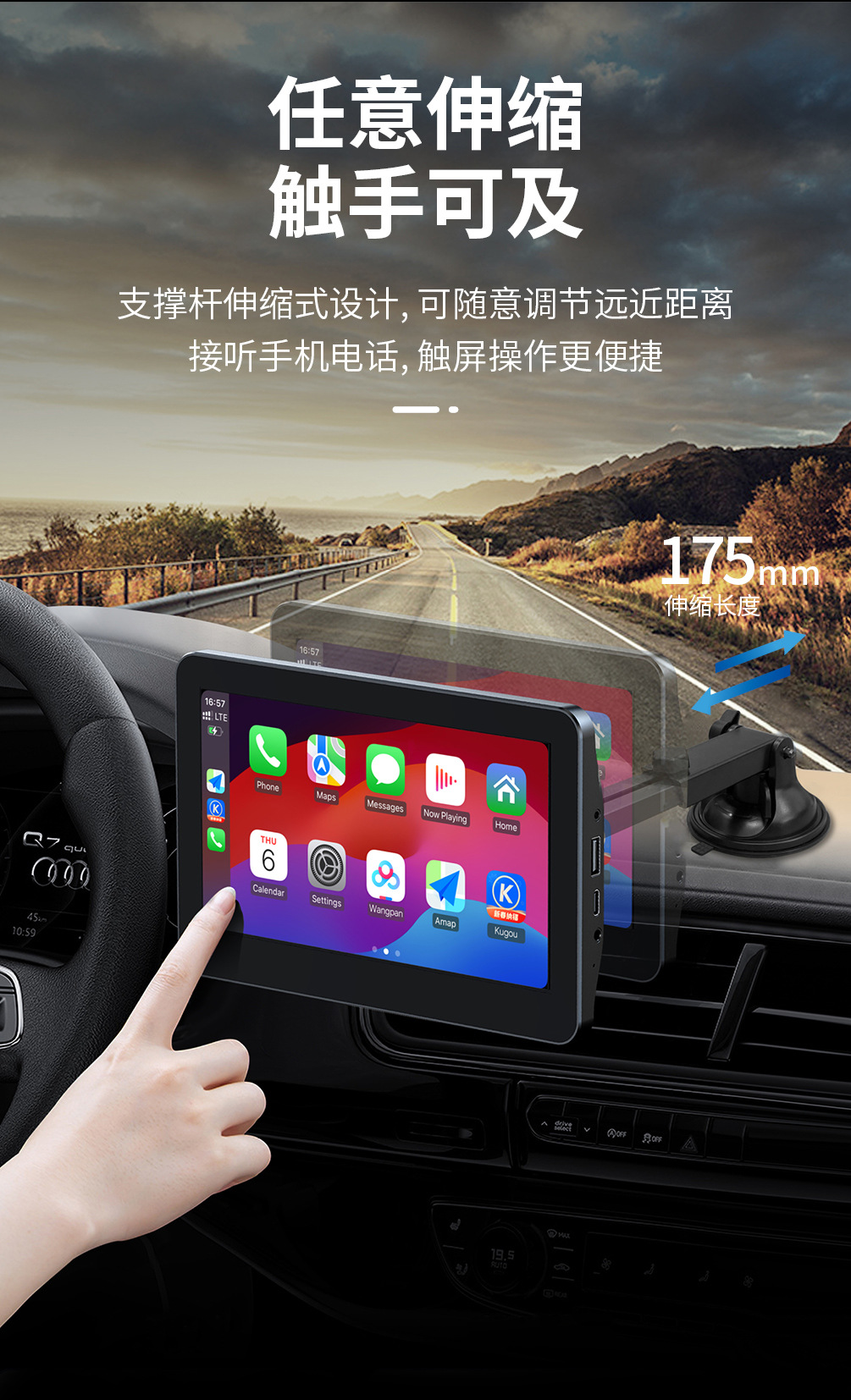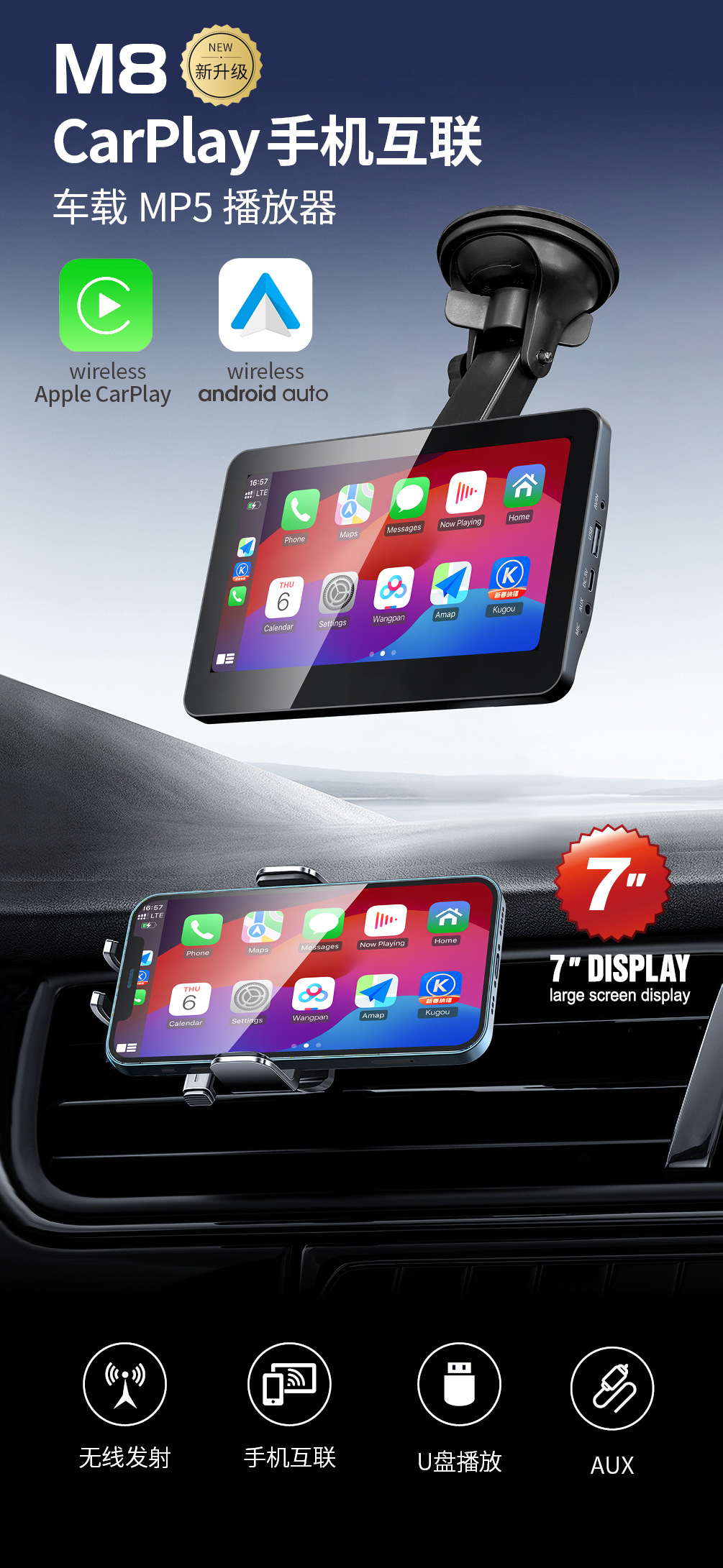 Cross-border new product 7-inch carplay display 2.5D screen high-definition picture quality supports wired and wireless carplay