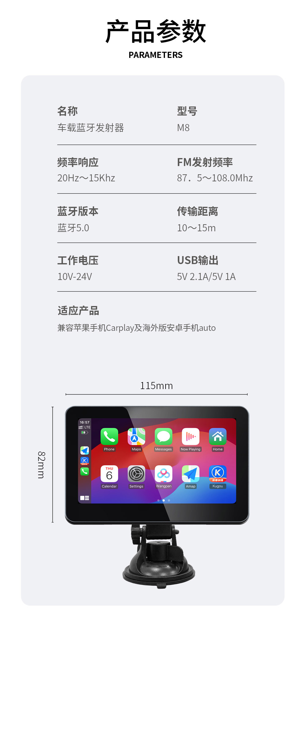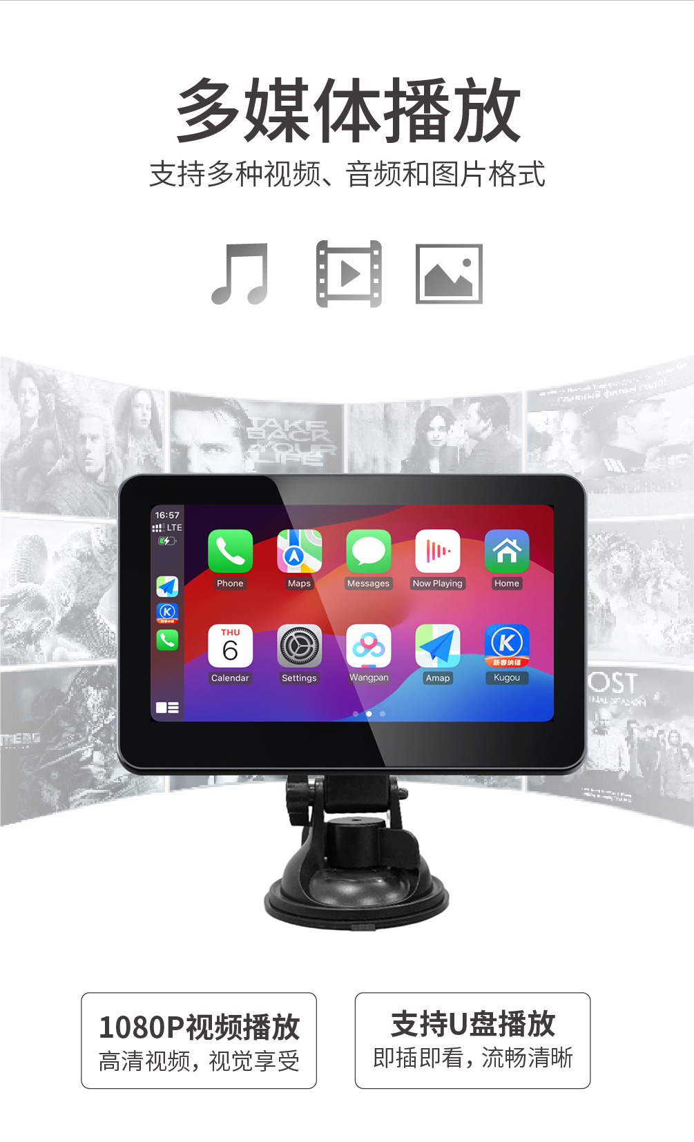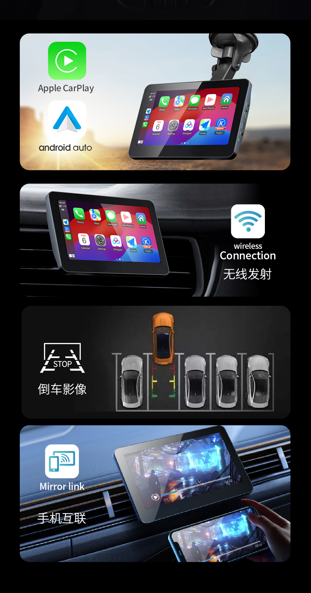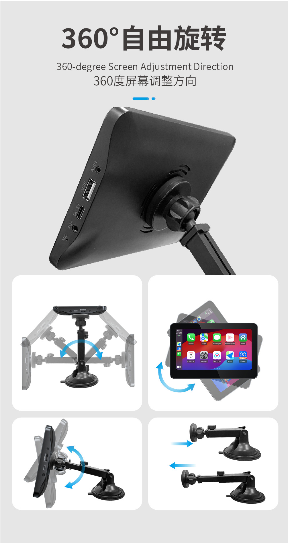 Cross-border new product 7-inch carplay display 2.5D screen high-definition picture quality supports wired and wireless carplay