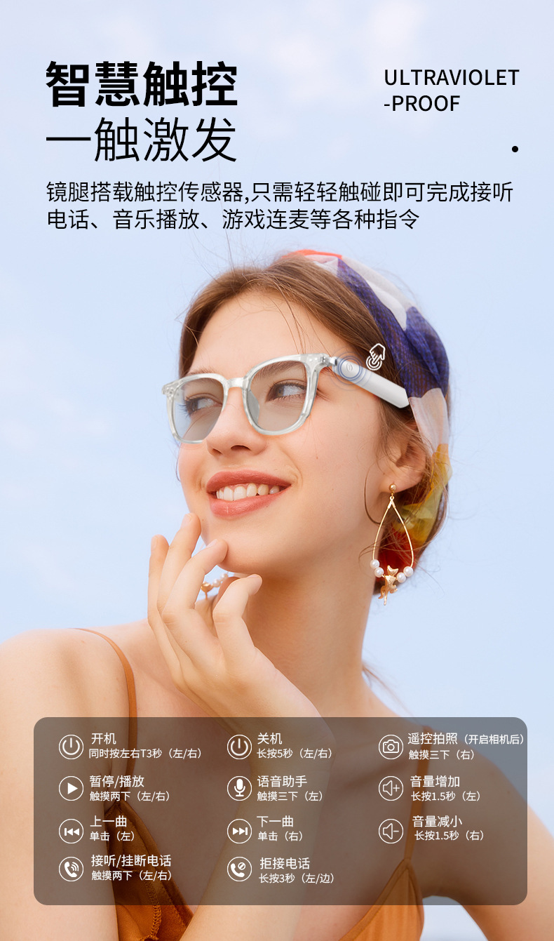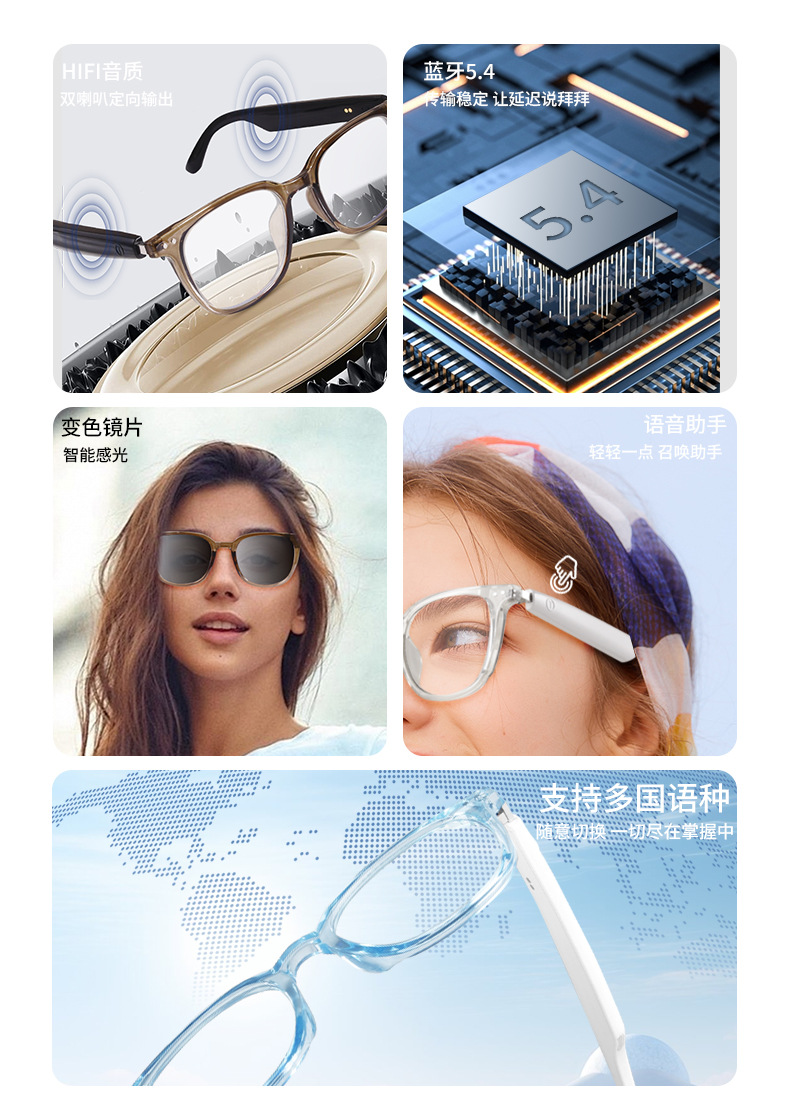 Cross-border smart Bluetooth glasses, color-changing glasses, sunglasses, listening to songs, calls, anti-blue light, unisex office and leisure travel
