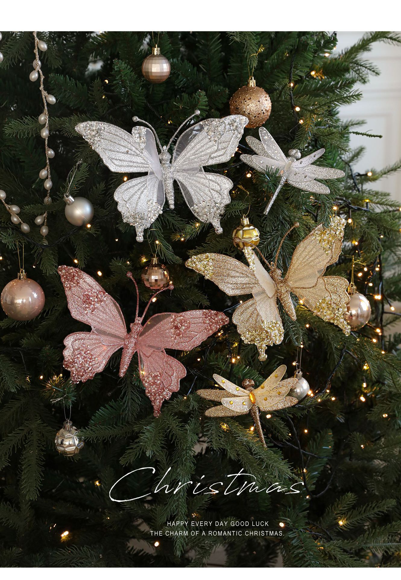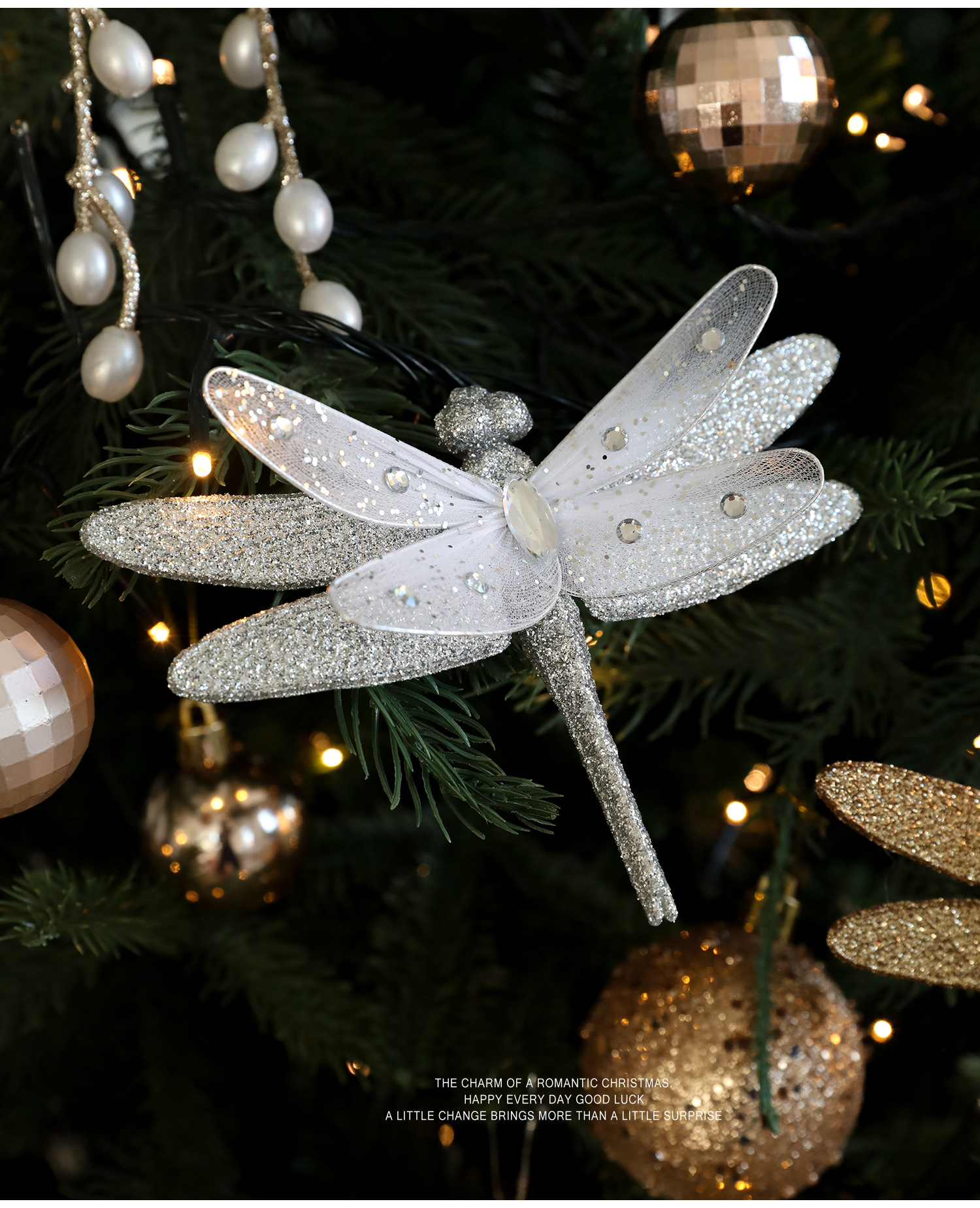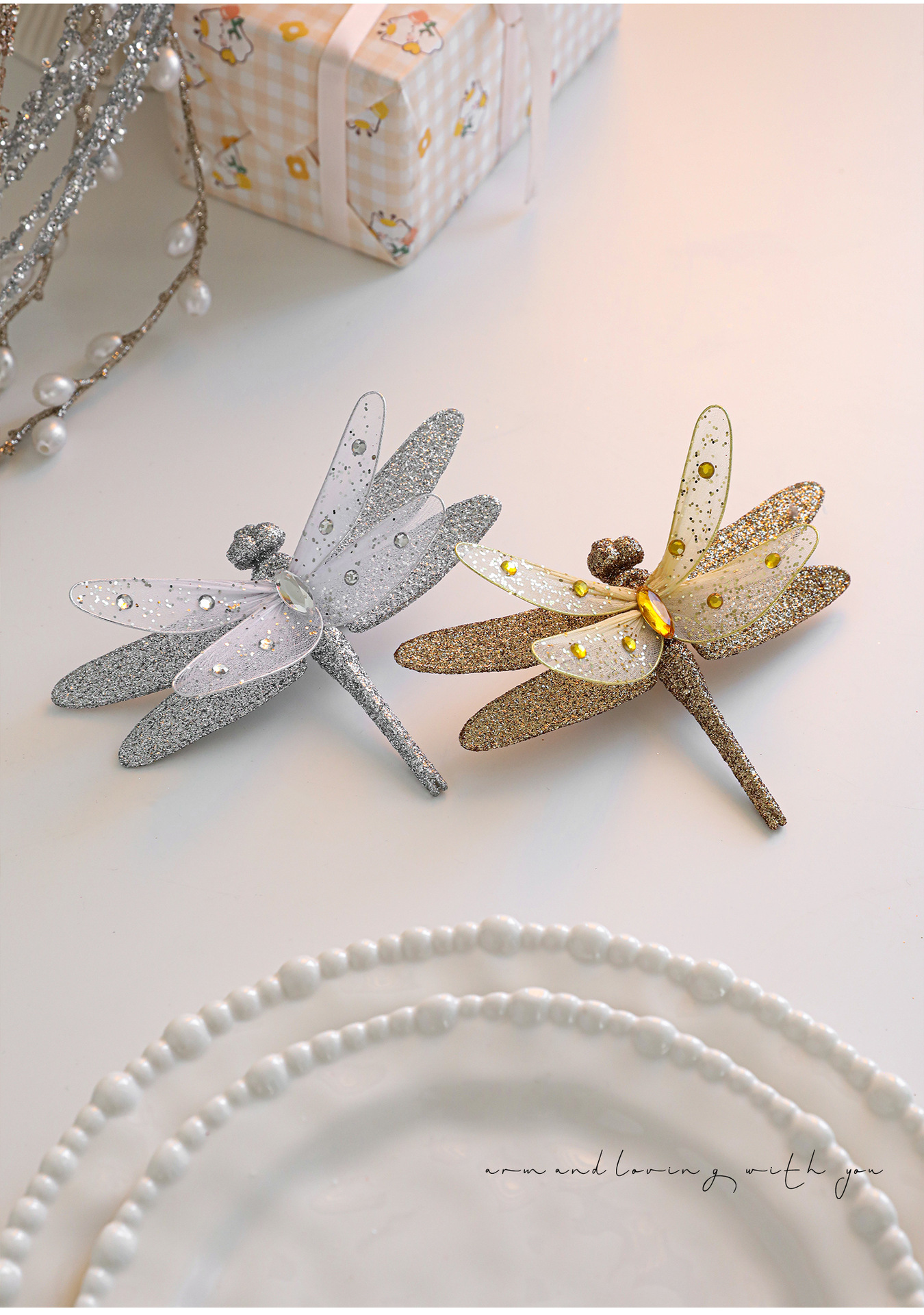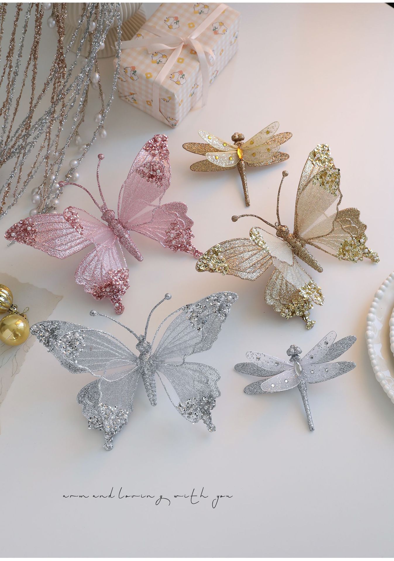 Cross-border new product color simulation mesh glitter butterfly dragonfly sticky pink pearl Christmas clip decoration pendant