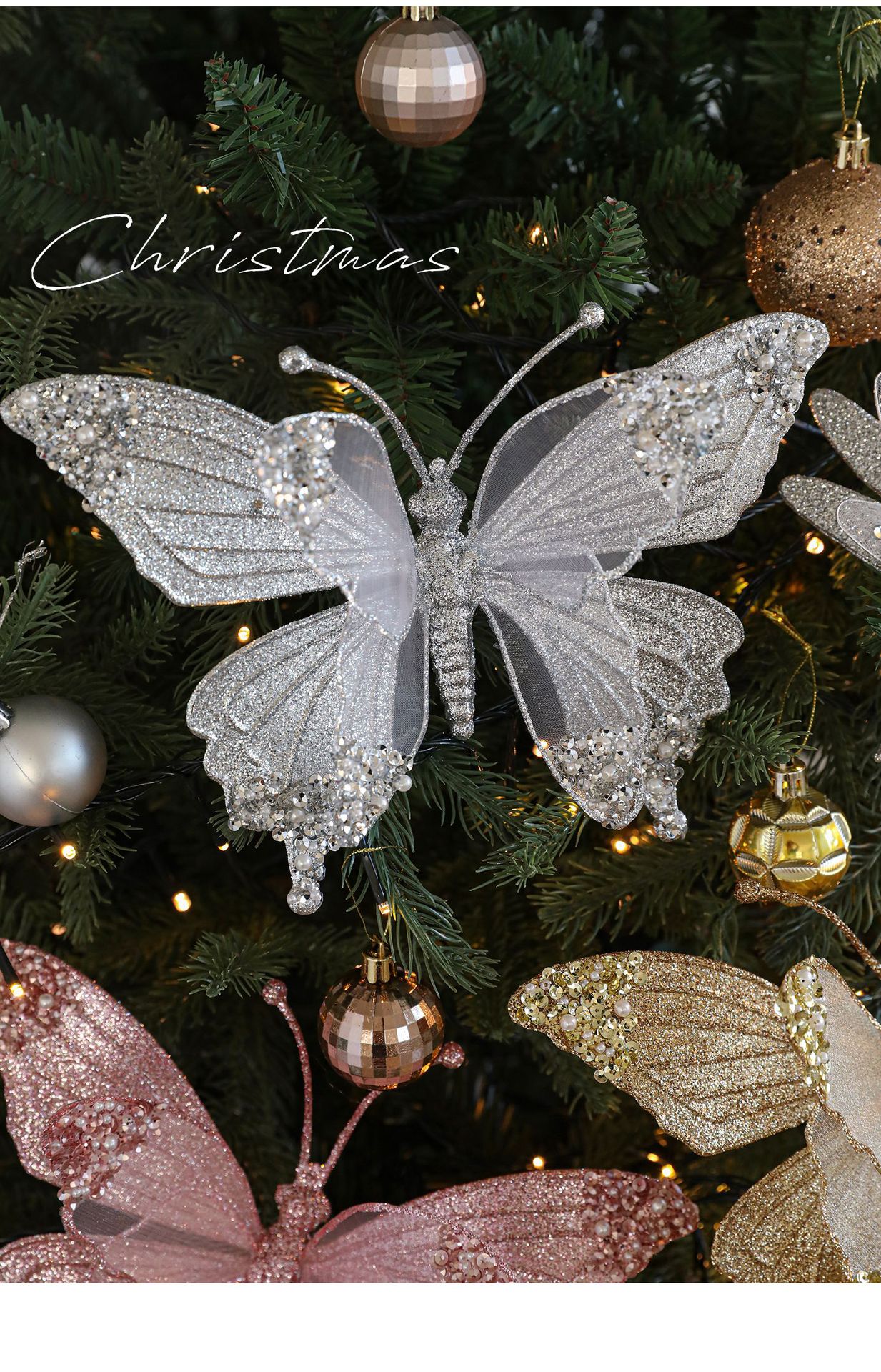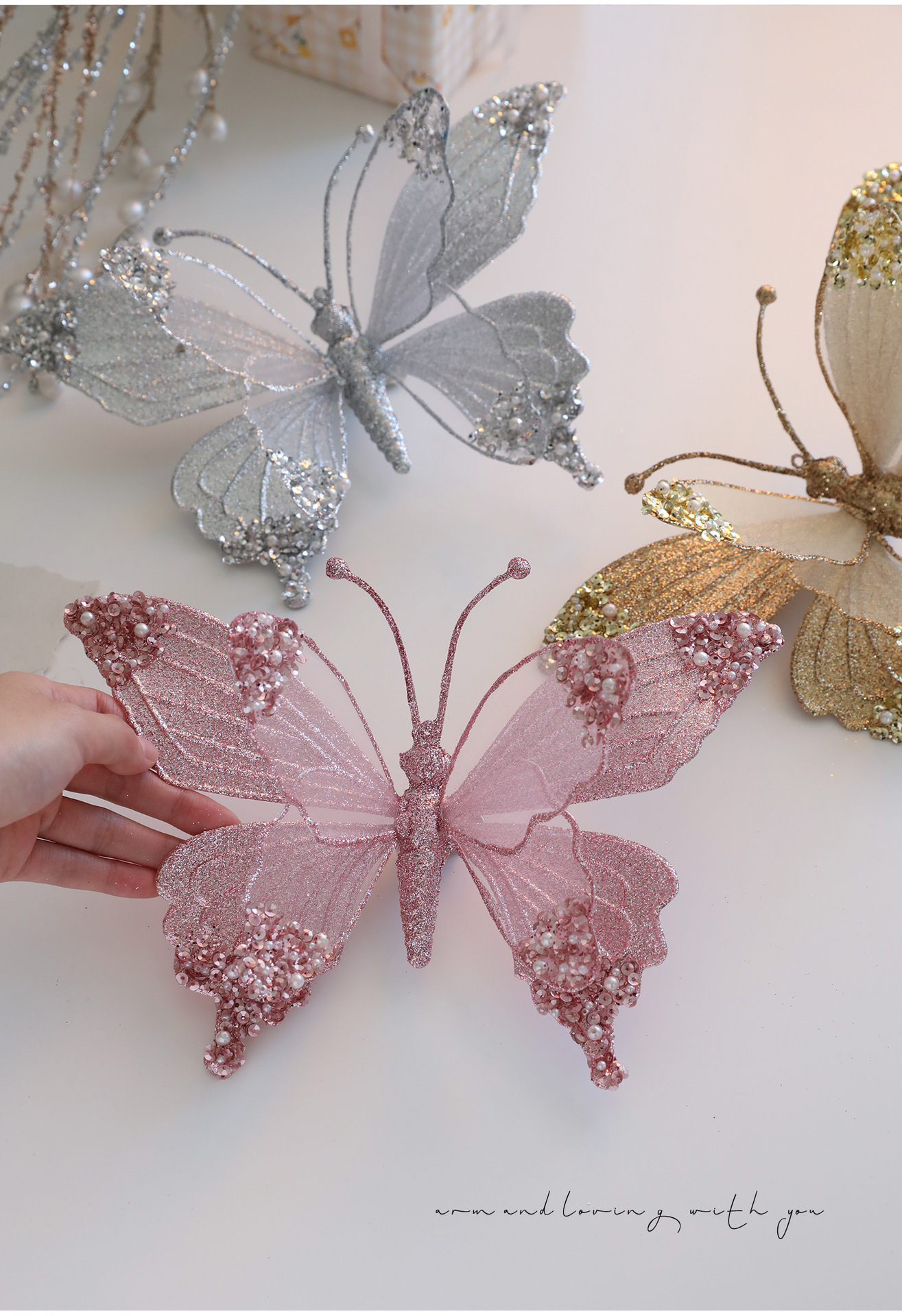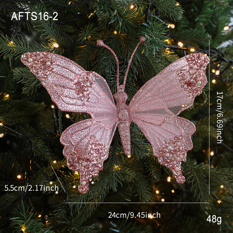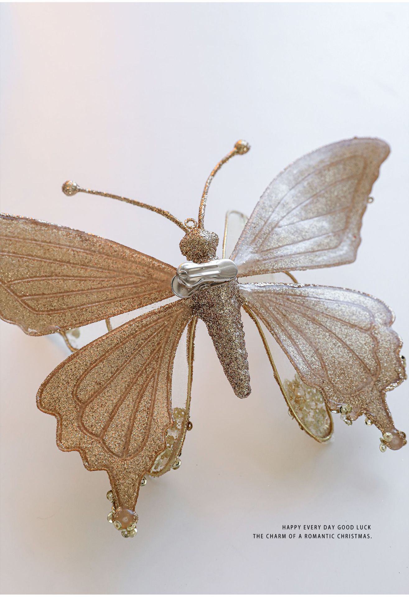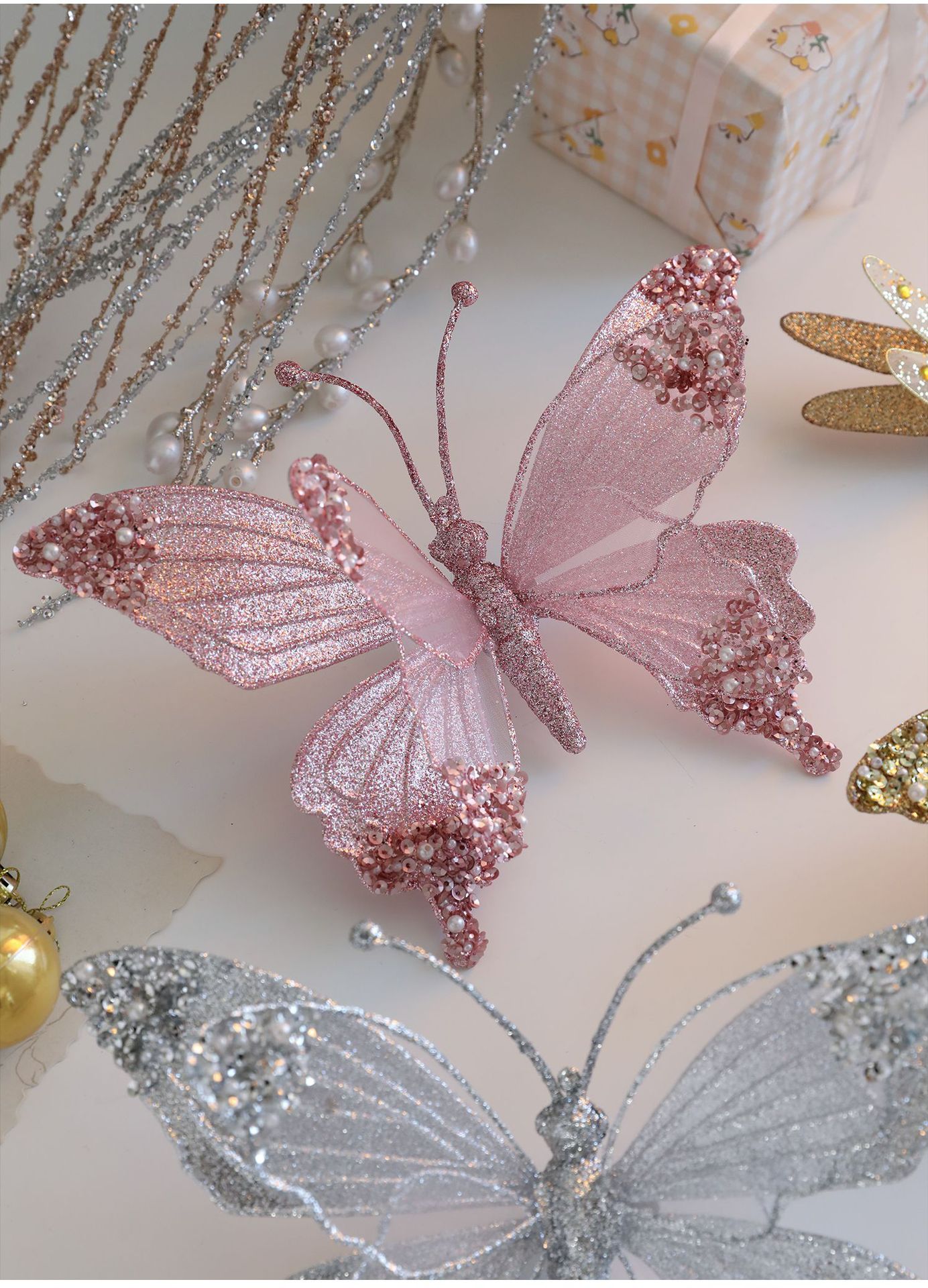 Cross-border new product color simulation mesh glitter butterfly dragonfly sticky pink pearl Christmas clip decoration pendant