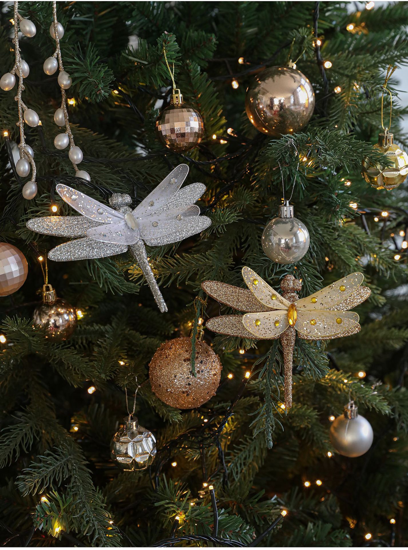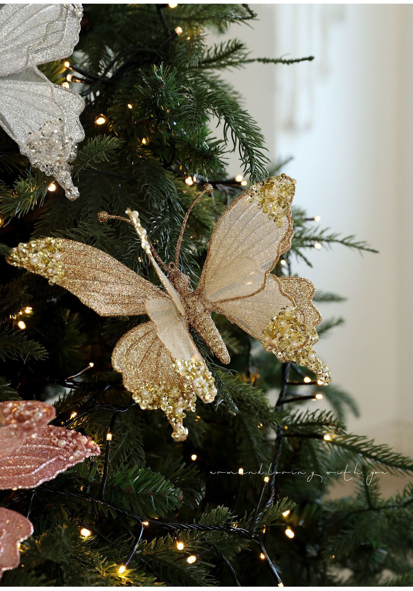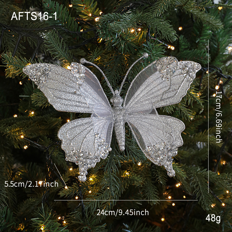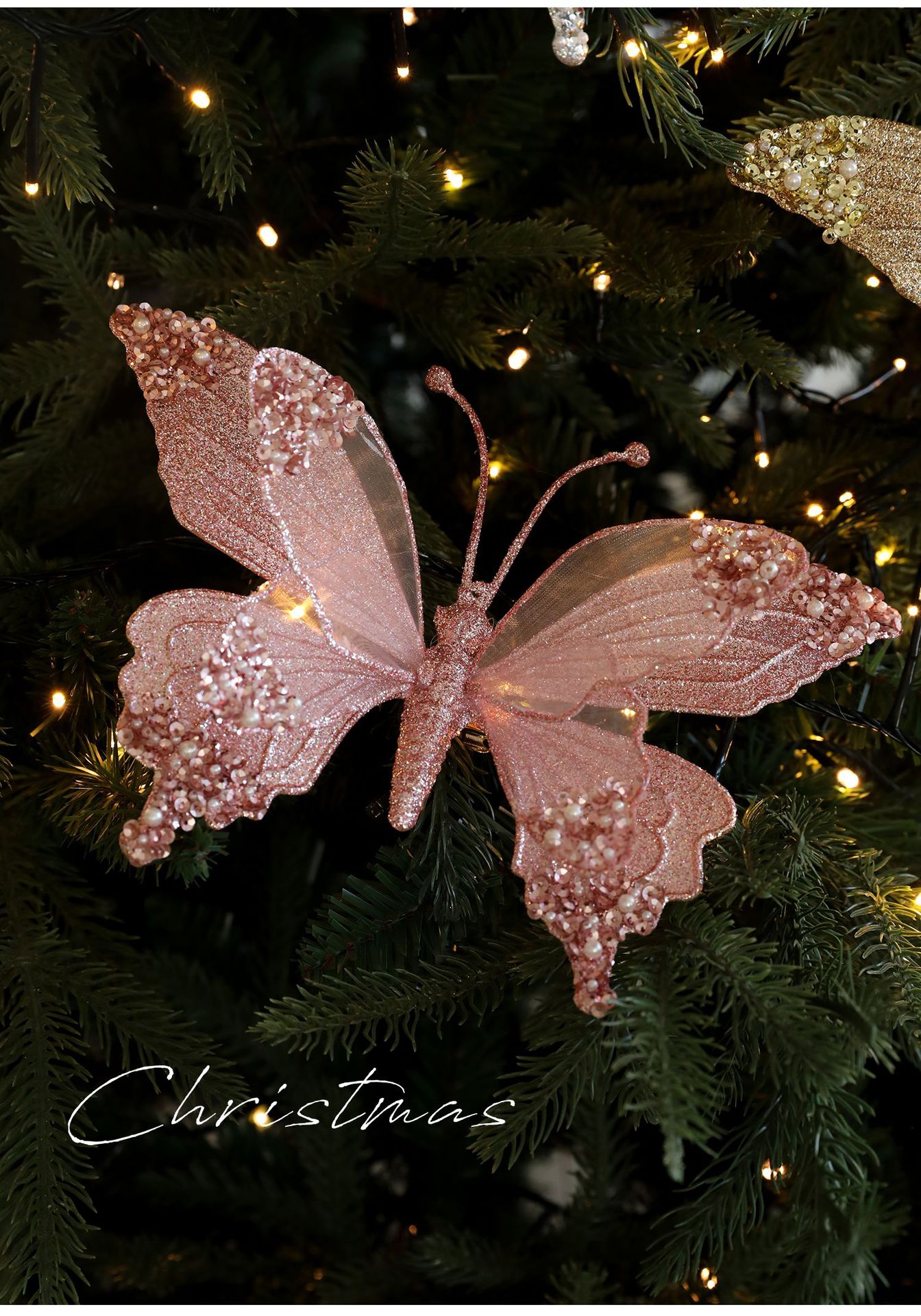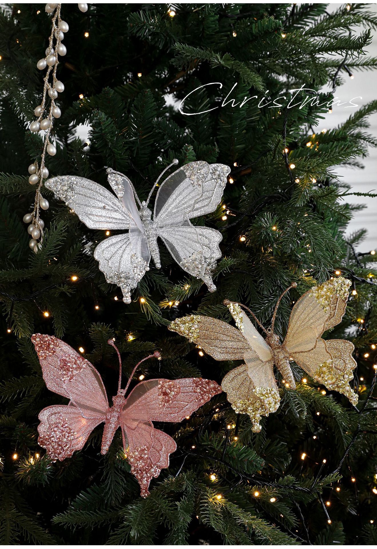 Cross-border new product color simulation mesh glitter butterfly dragonfly sticky pink pearl Christmas clip decoration pendant