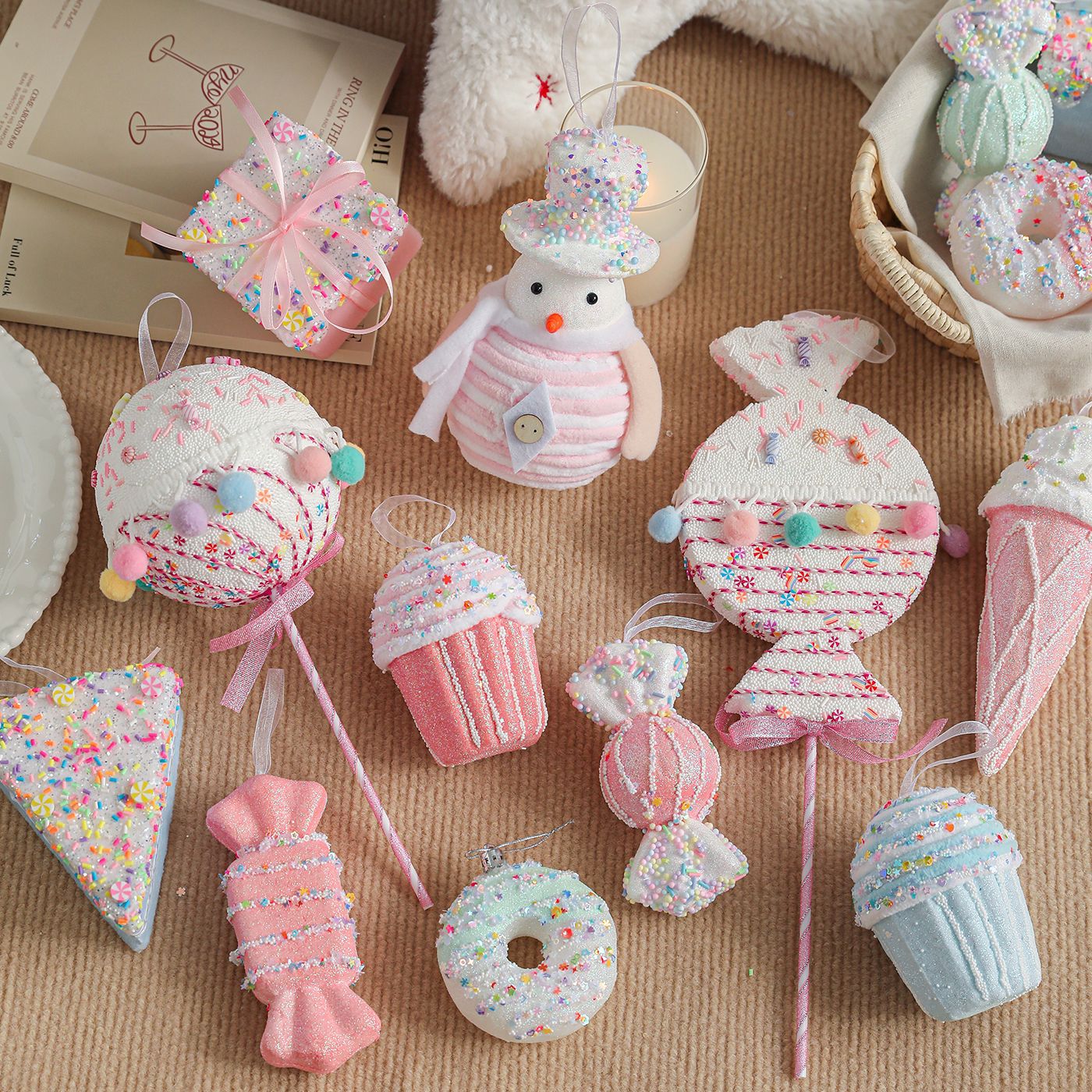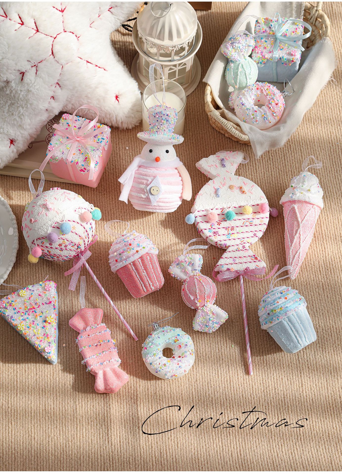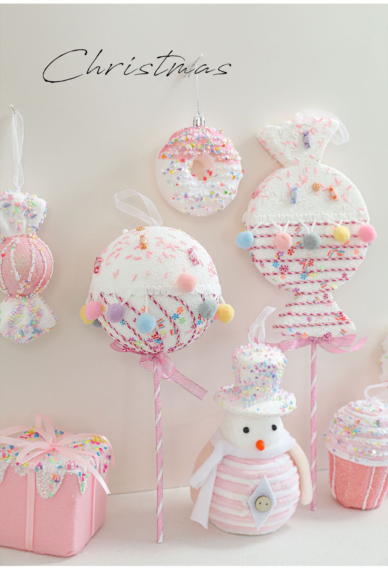 New Christmas Ornaments Cute Pink Cartoon Macaron Foam Candy Christmas Tree Pendant Pendant Props