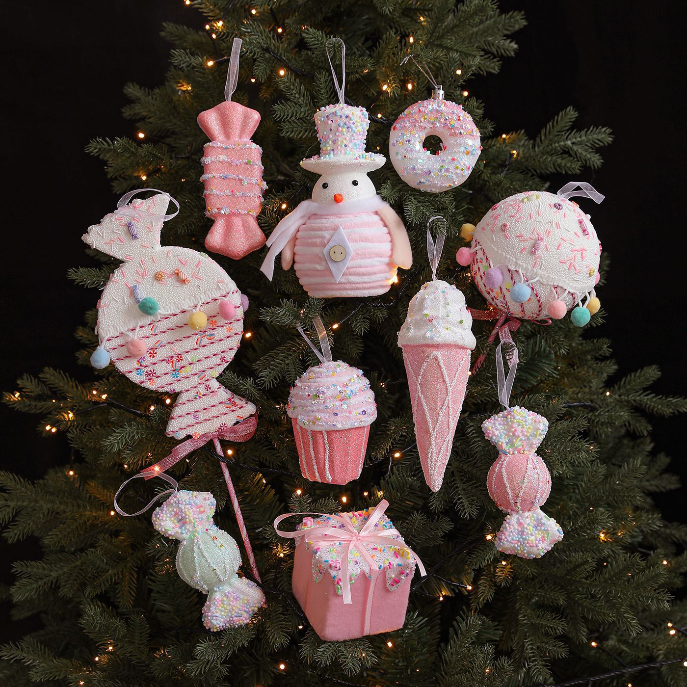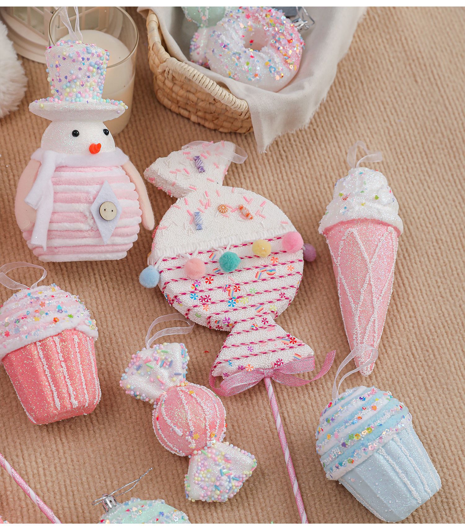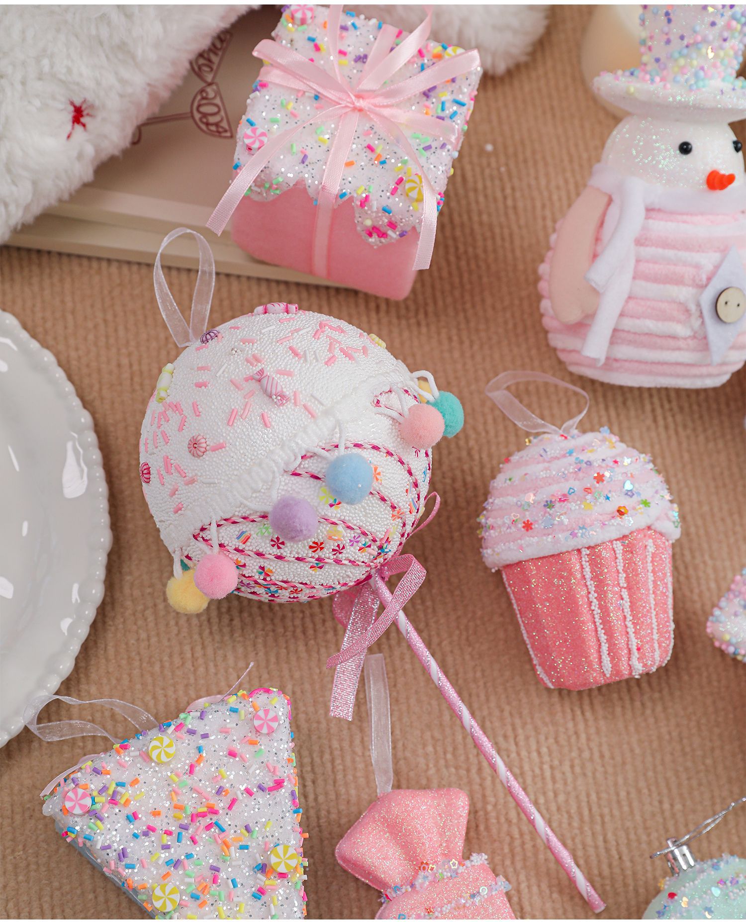 New Christmas Ornaments Cute Pink Cartoon Macaron Foam Candy Christmas Tree Pendant Pendant Props