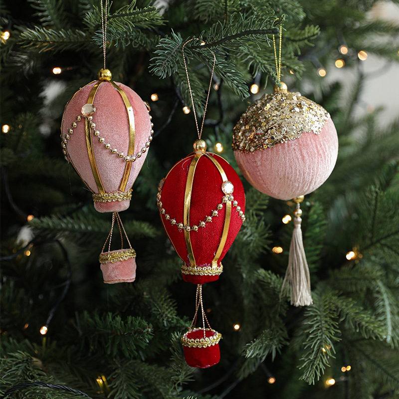Shaped pendants foam flannel pearl hot air balloon sticky powder gold powder lanterns creative Christmas tree pendants Christmas decorations