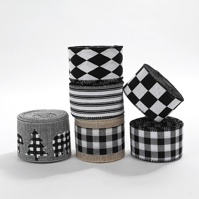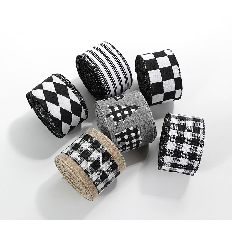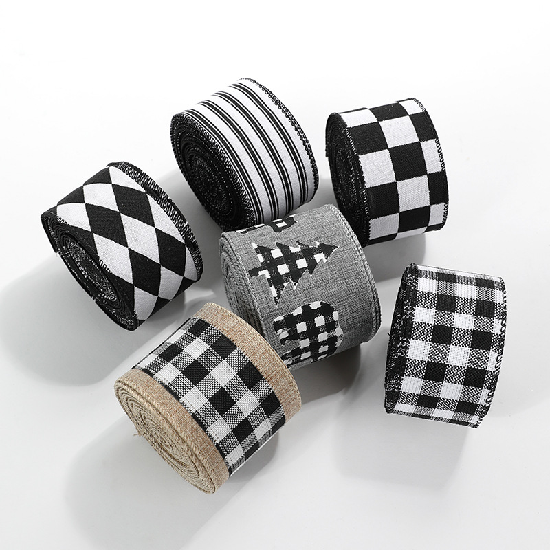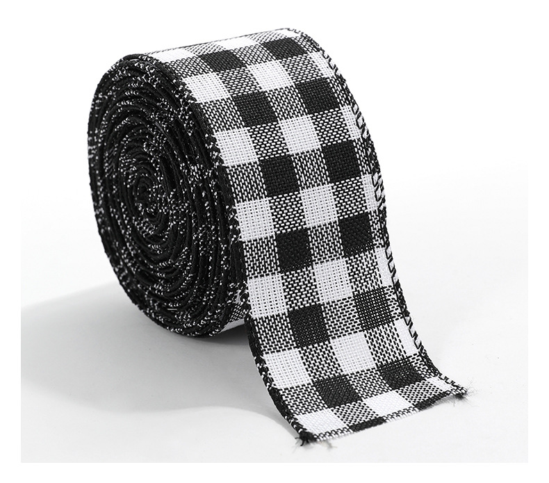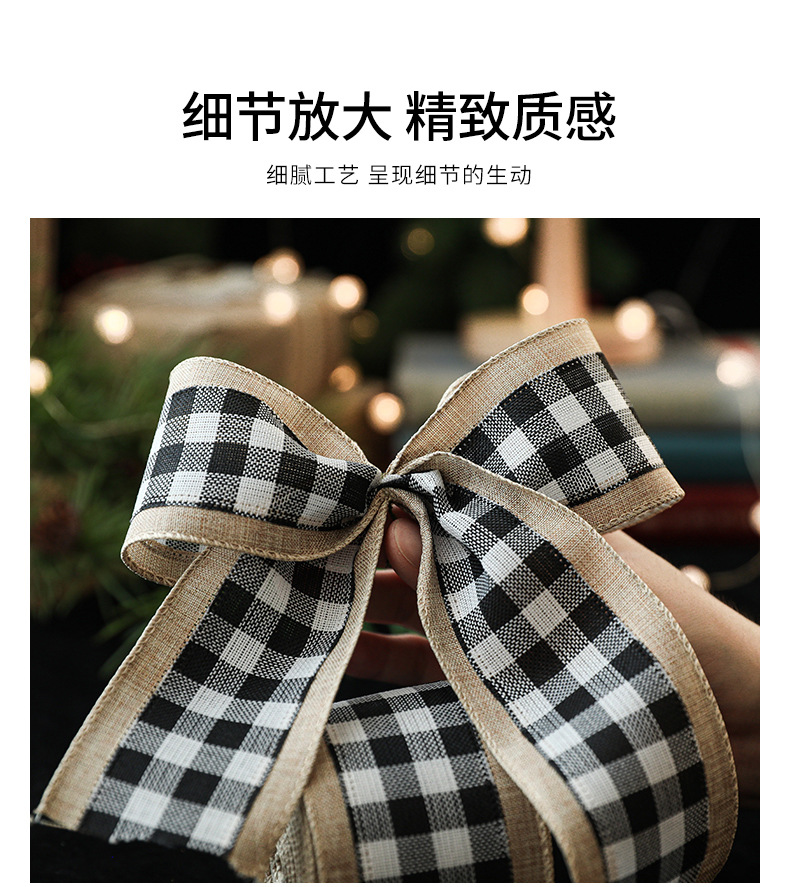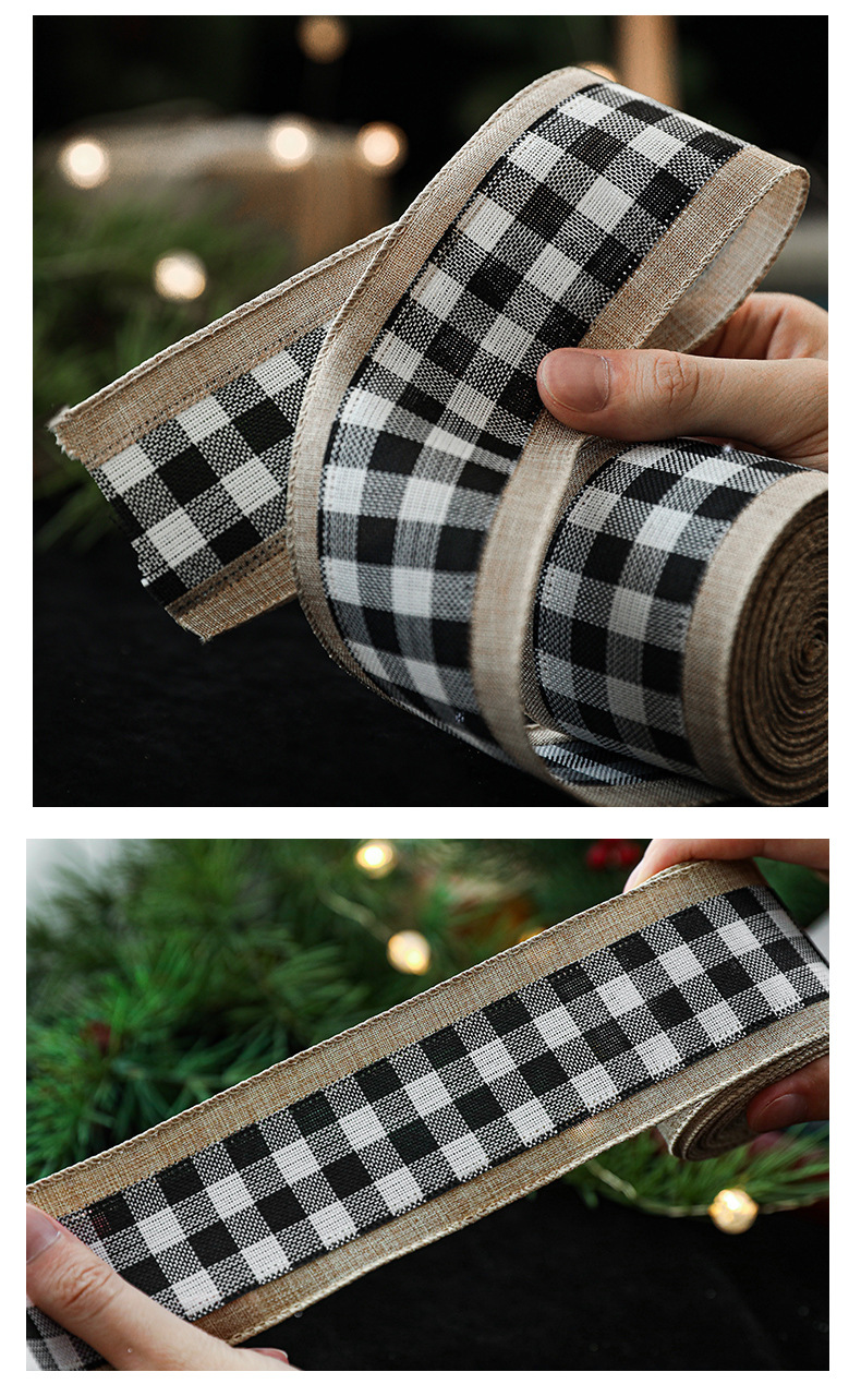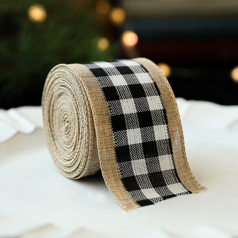 Imitation Hemp Christmas Black and White Plaid Ribbon Gift Wrapping Christmas Garland Bow Ornament Strap Wholesale