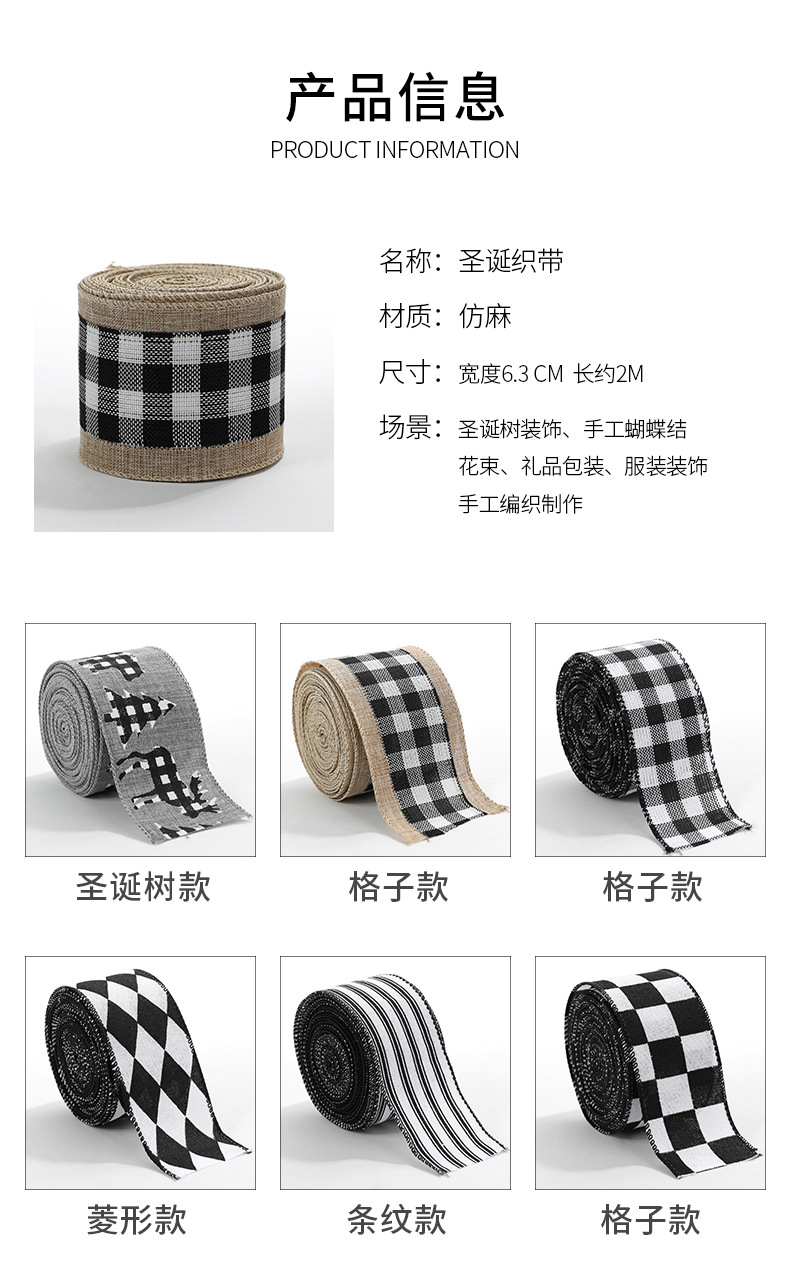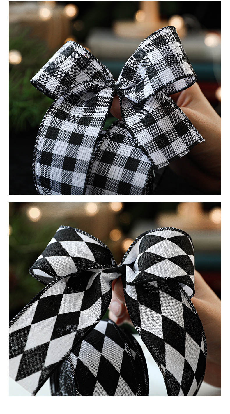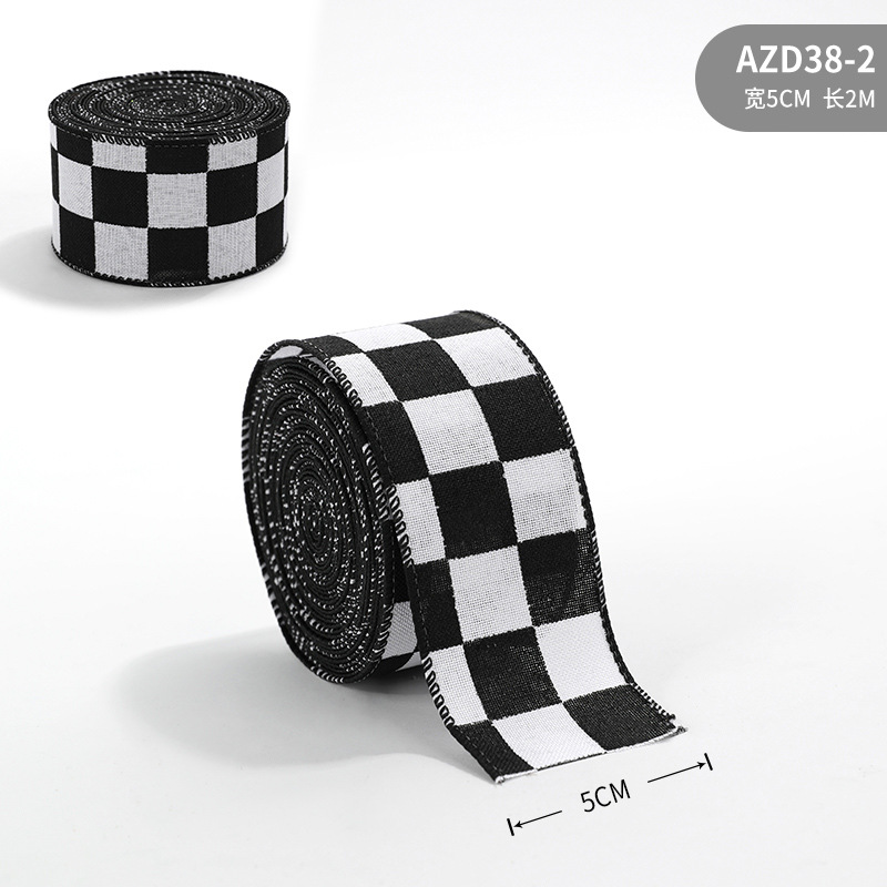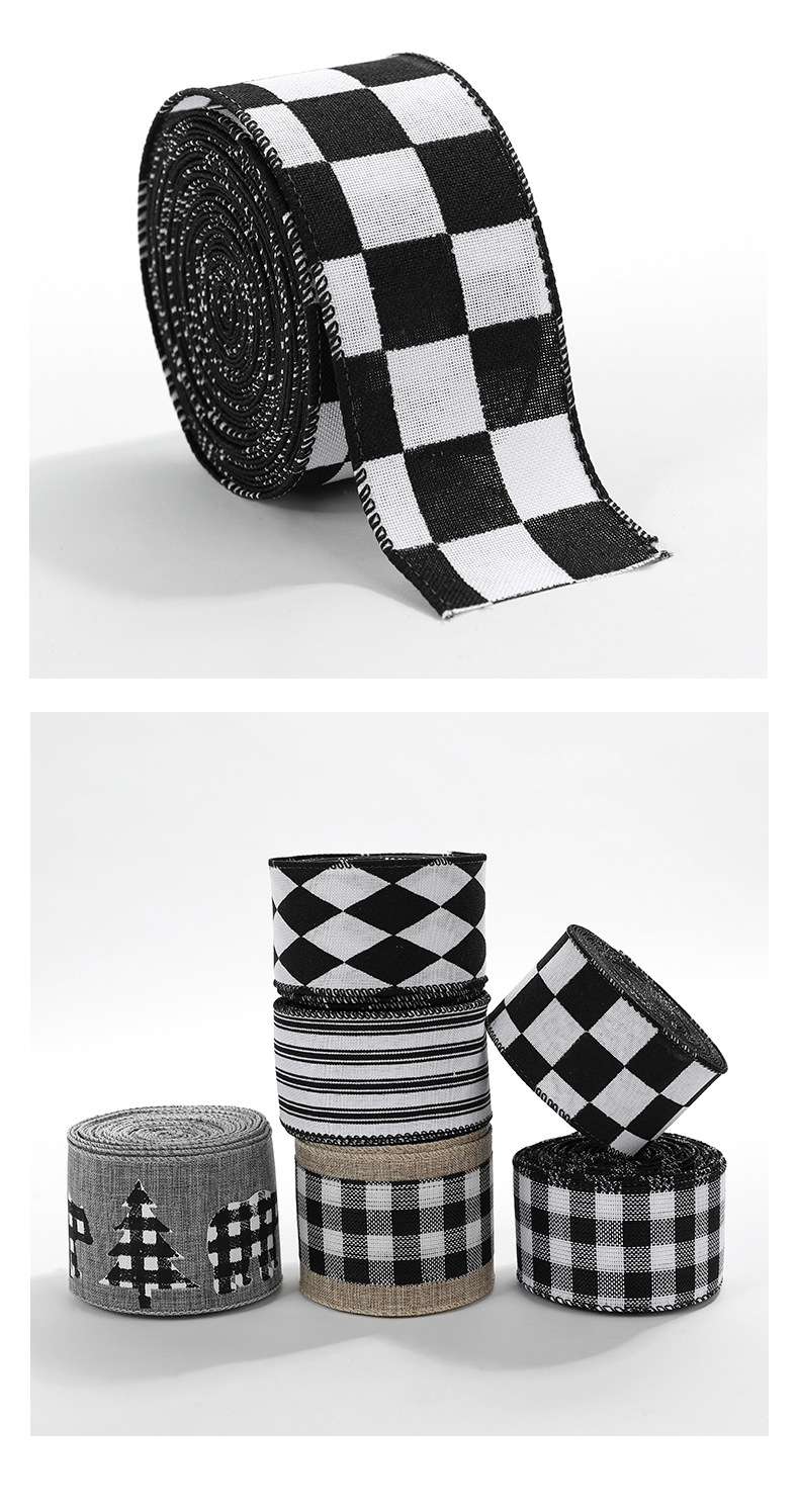 Imitation Hemp Christmas Black and White Plaid Ribbon Gift Wrapping Christmas Garland Bow Ornament Strap Wholesale