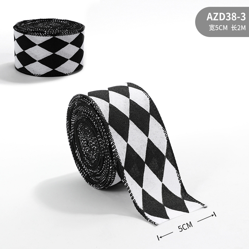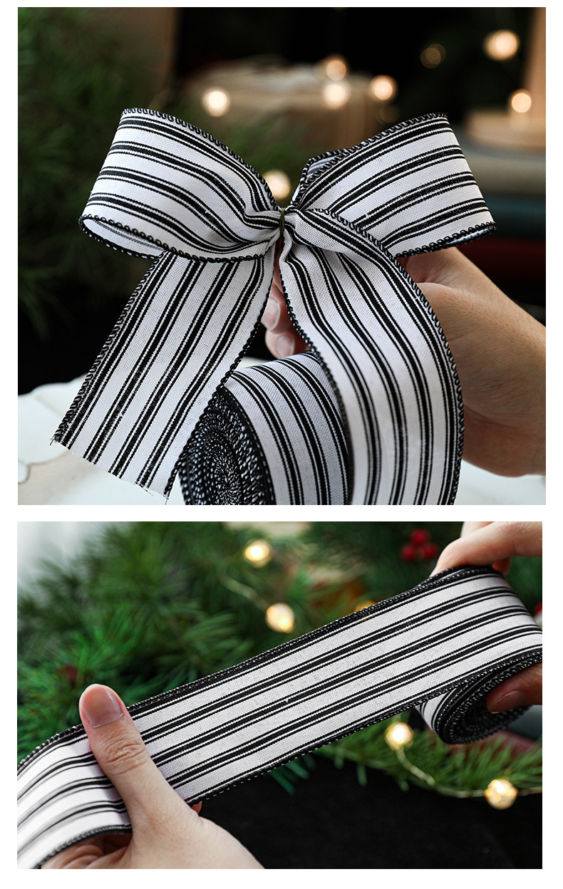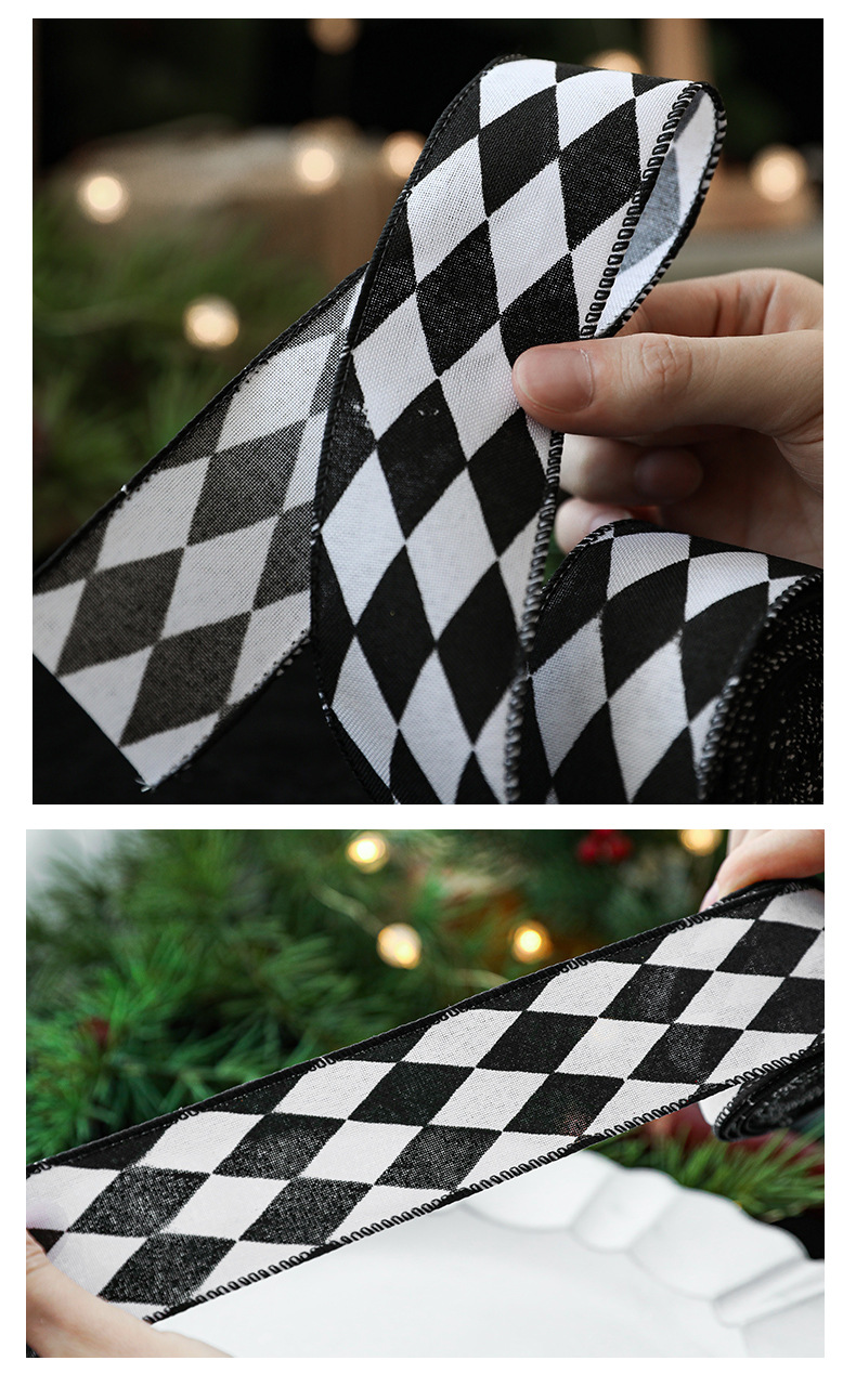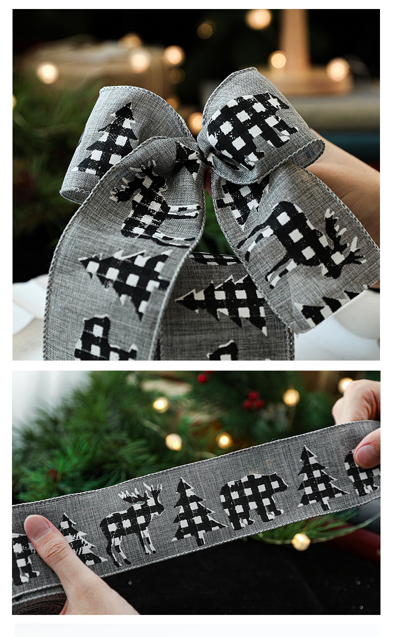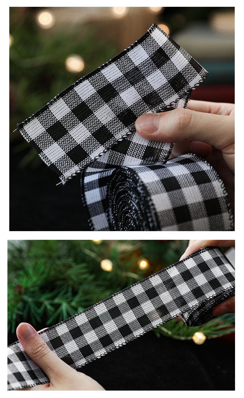 Imitation Hemp Christmas Black and White Plaid Ribbon Gift Wrapping Christmas Garland Bow Ornament Strap Wholesale