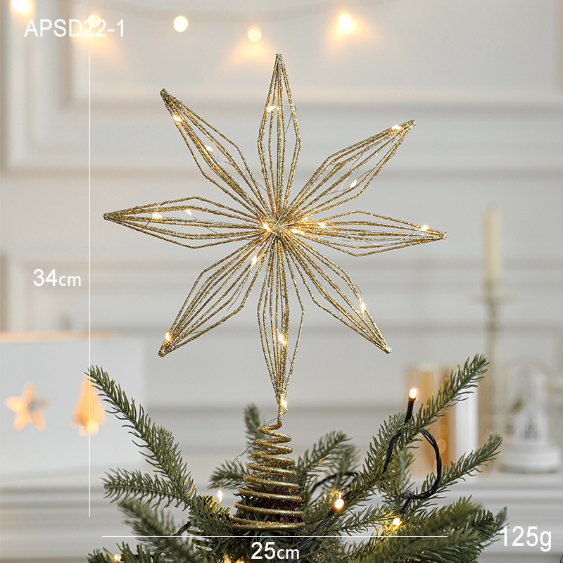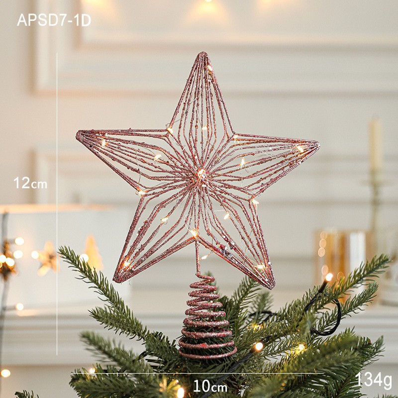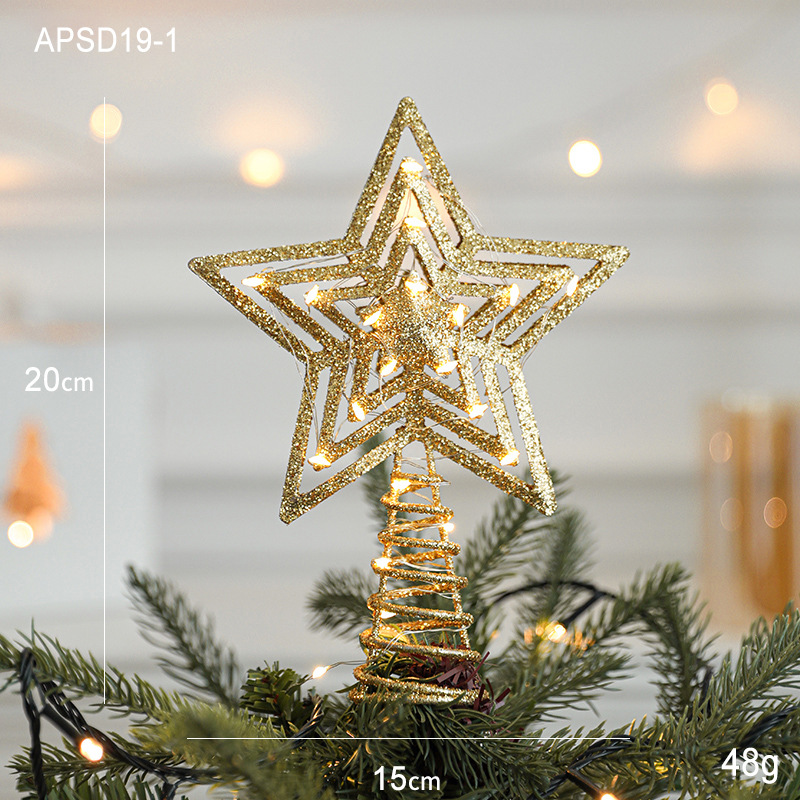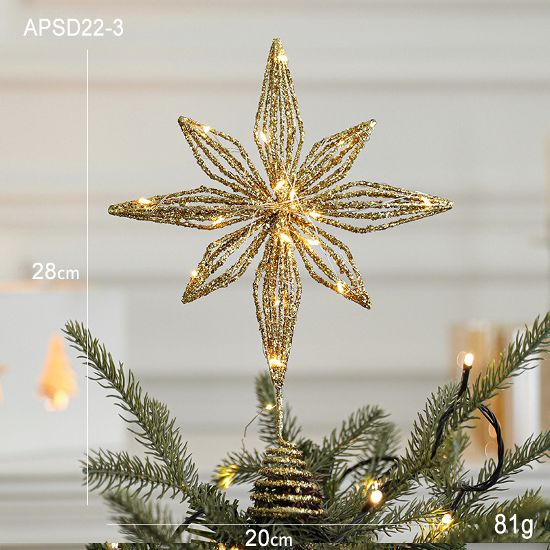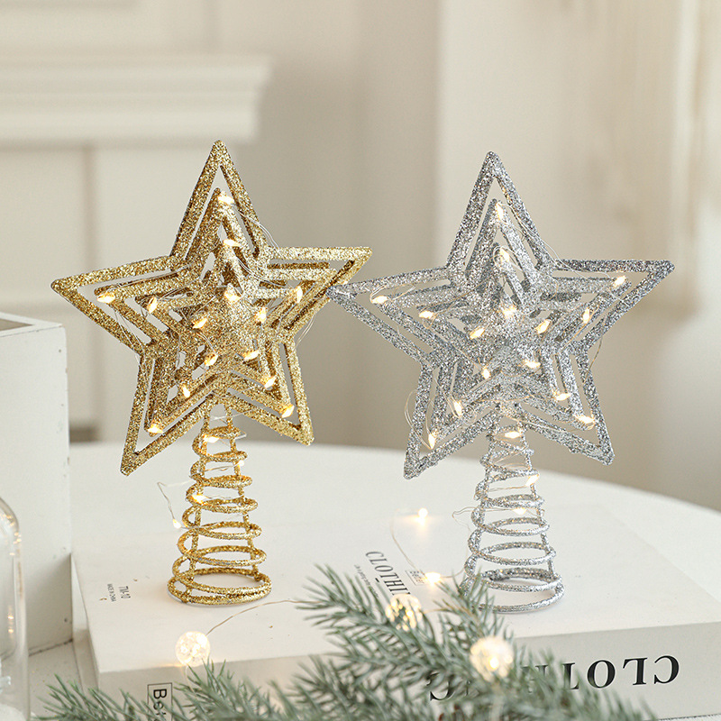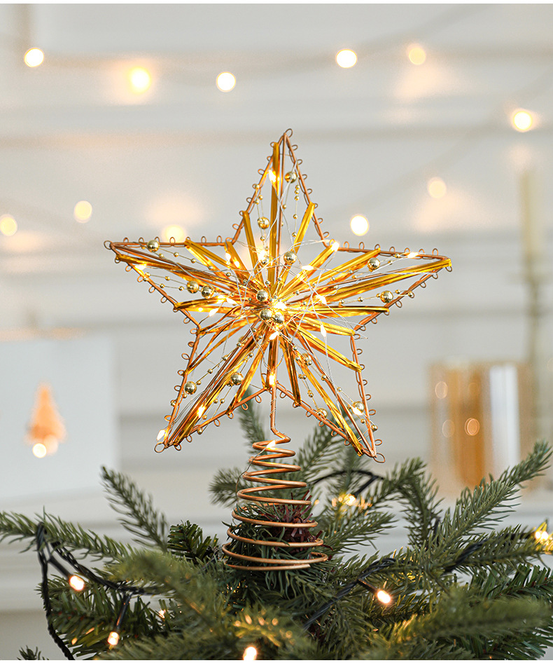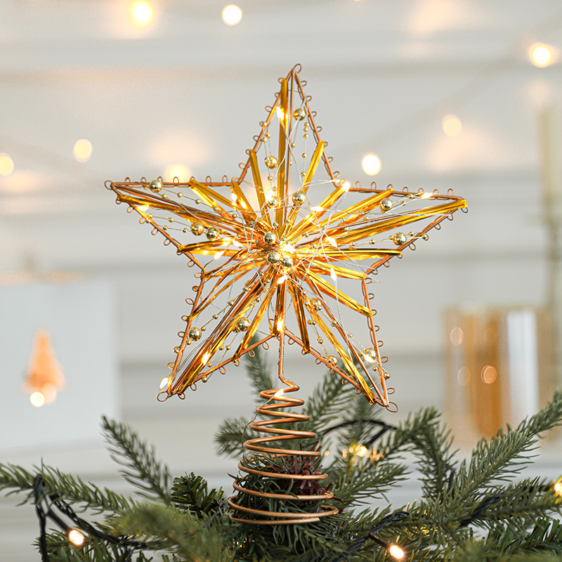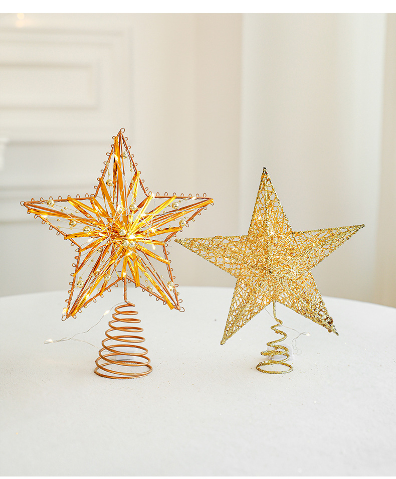 Christmas New Christmas Tree Wrought Iron Sticky Tree Top Star Accessories Gold Three-Dimensional Openwork Pentagram Ornaments