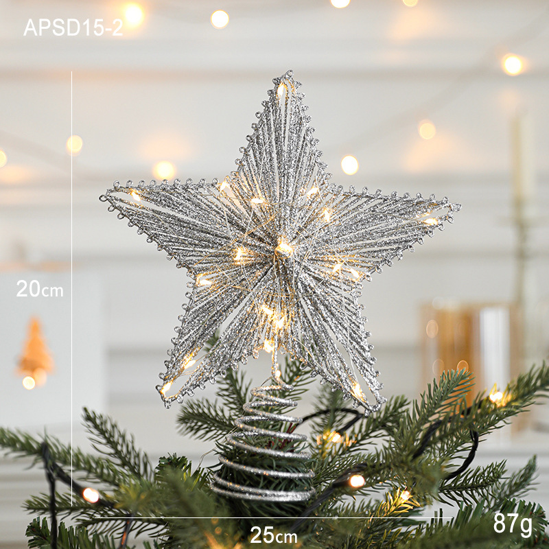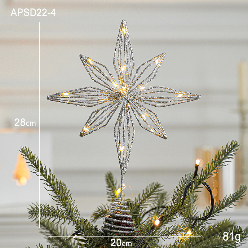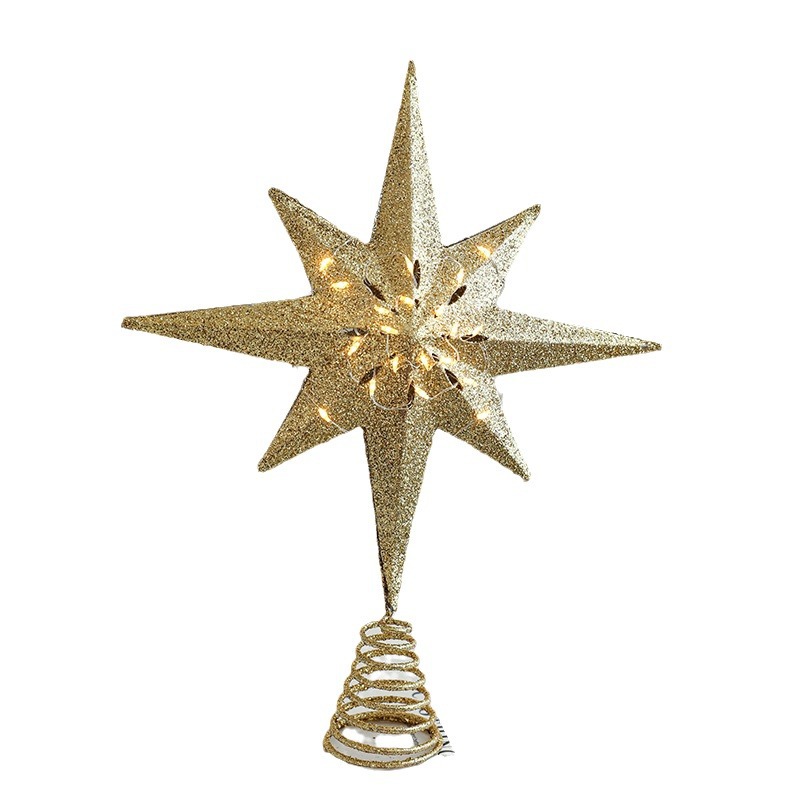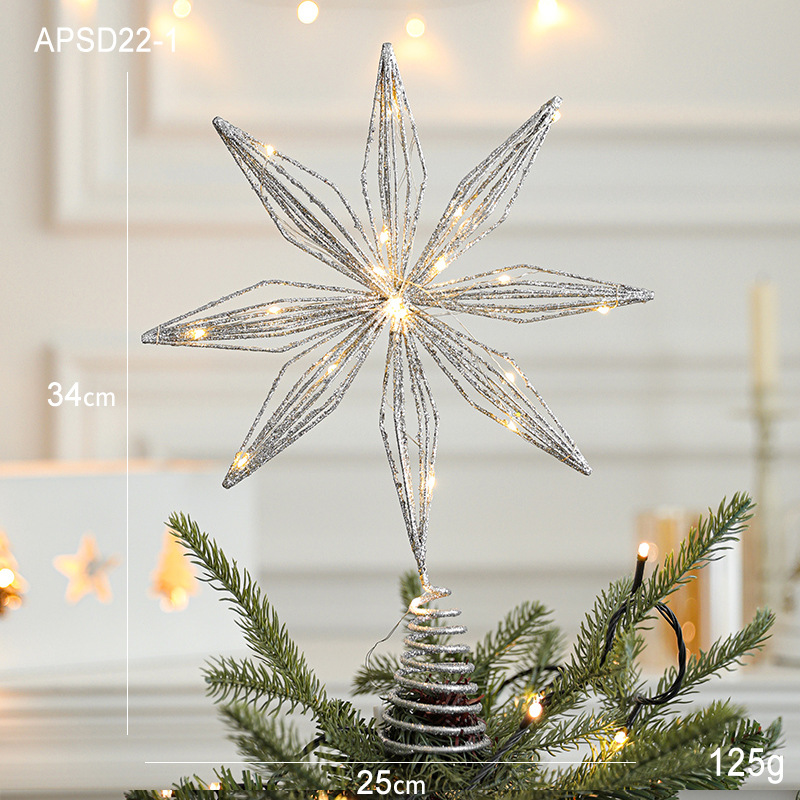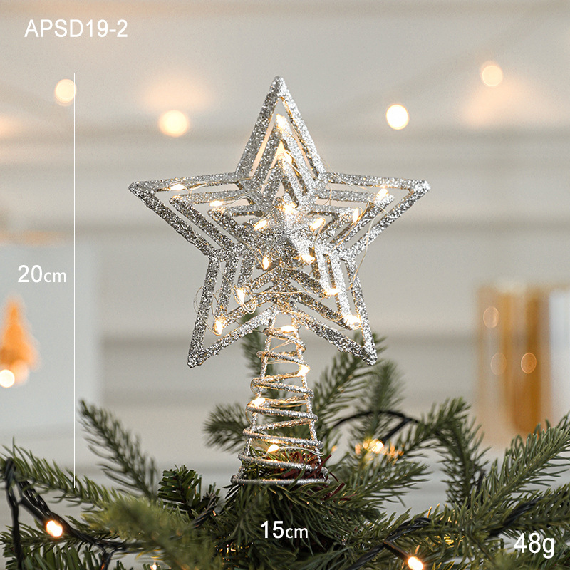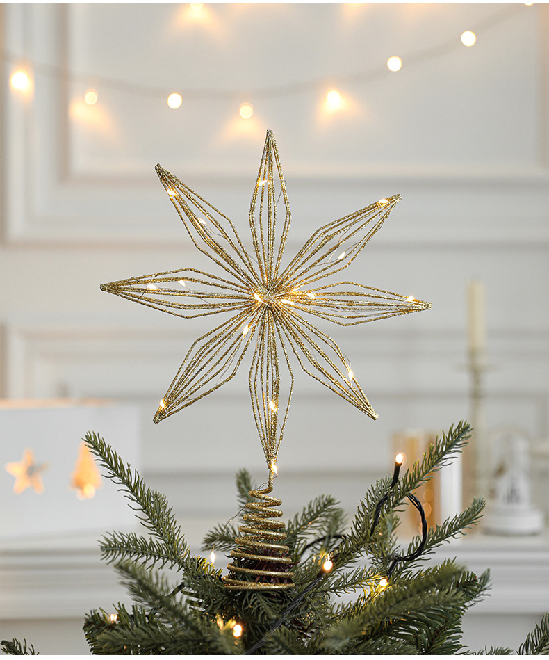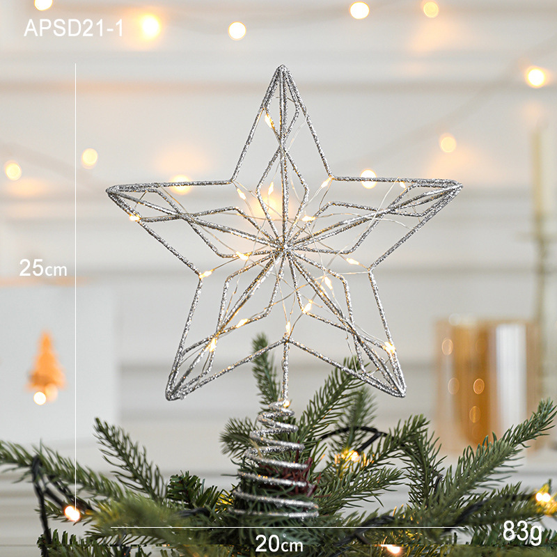 Christmas New Christmas Tree Wrought Iron Sticky Tree Top Star Accessories Gold Three-Dimensional Openwork Pentagram Ornaments