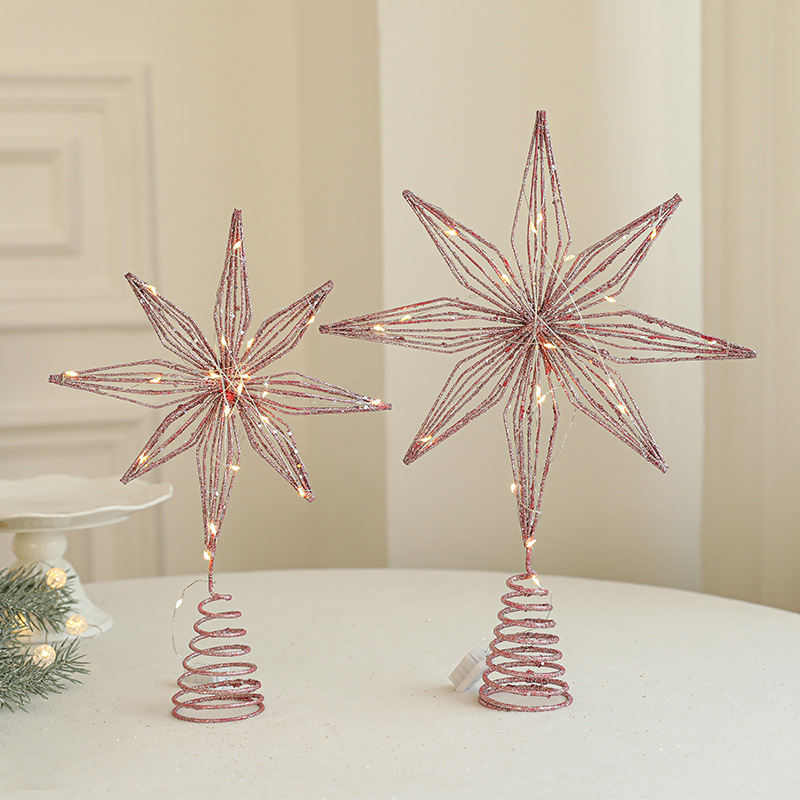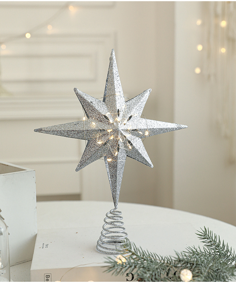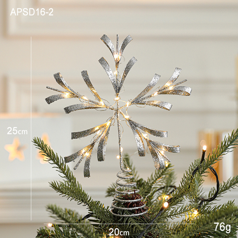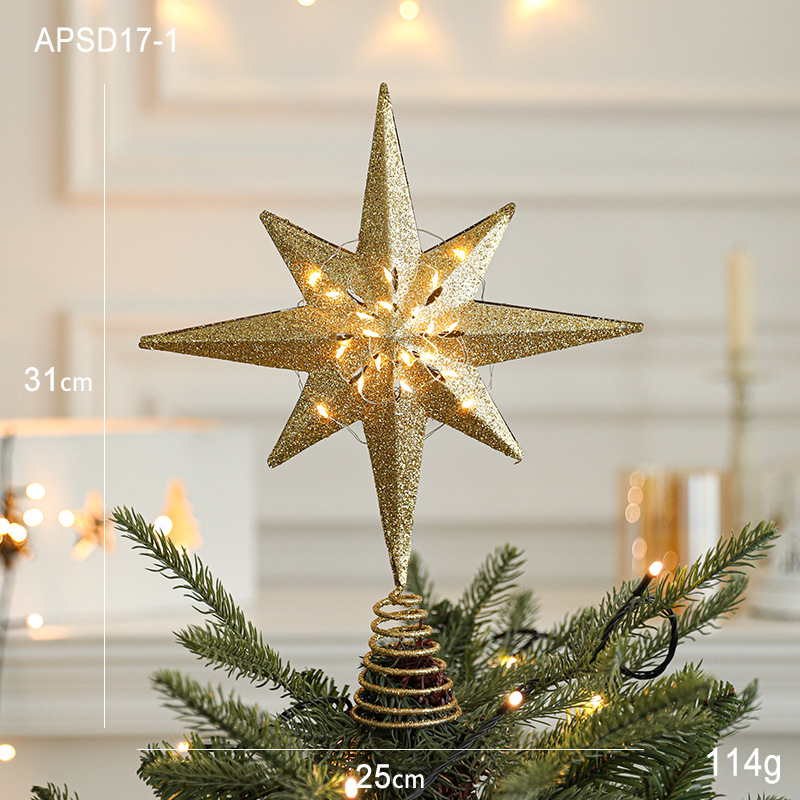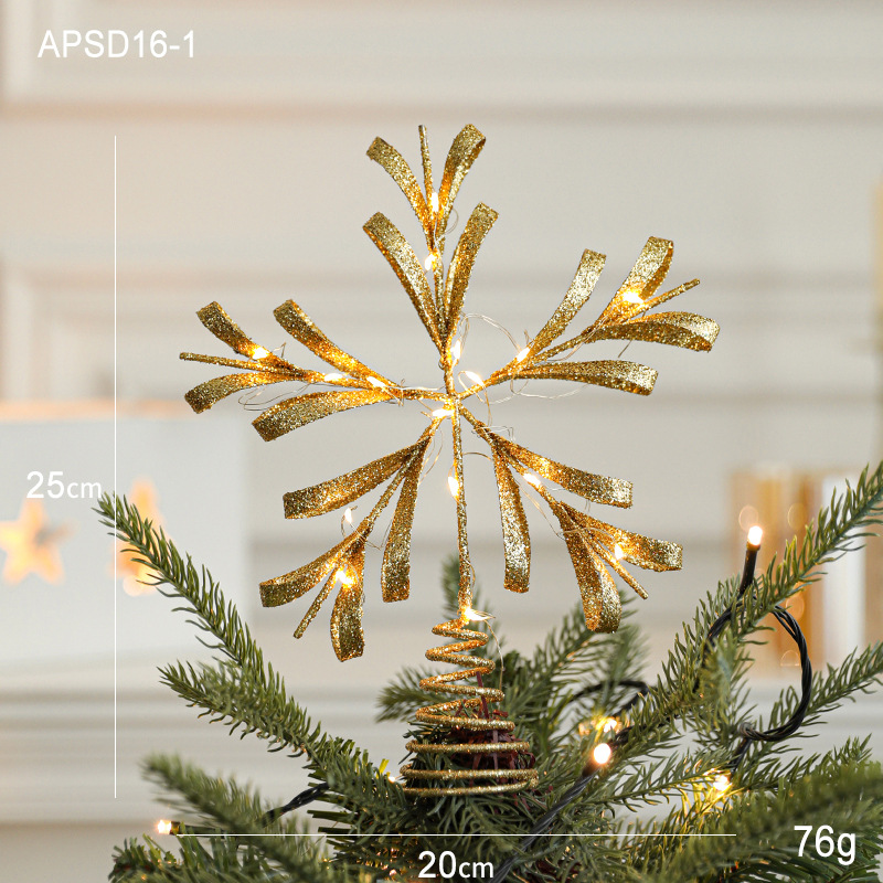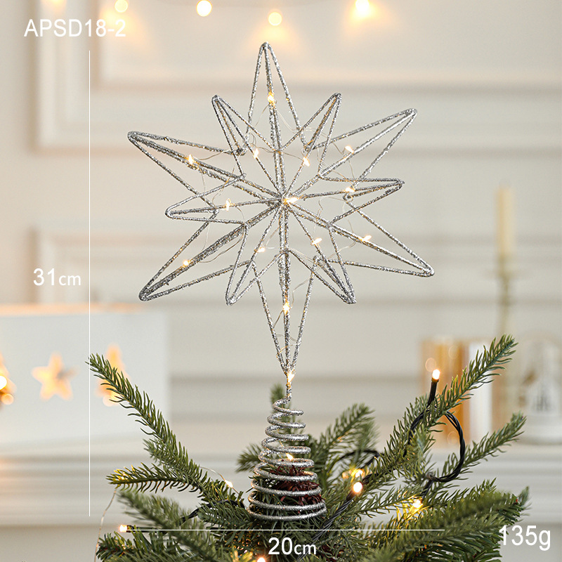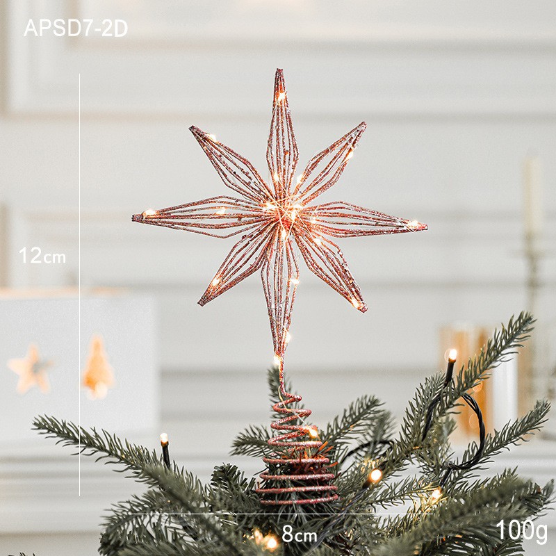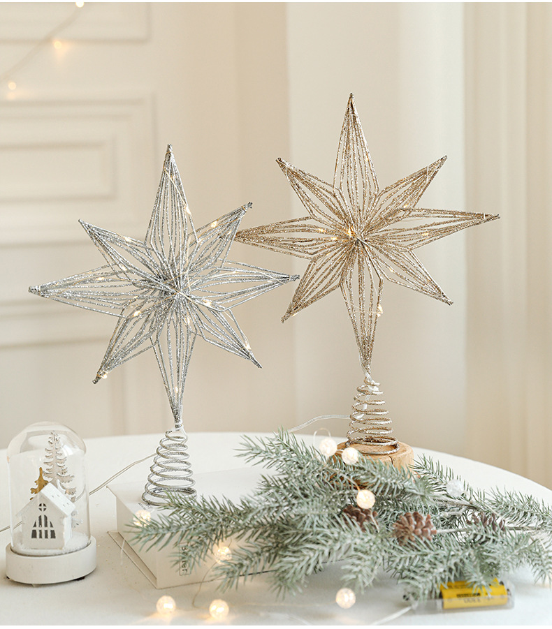 Christmas New Christmas Tree Wrought Iron Sticky Tree Top Star Accessories Gold Three-Dimensional Openwork Pentagram Ornaments